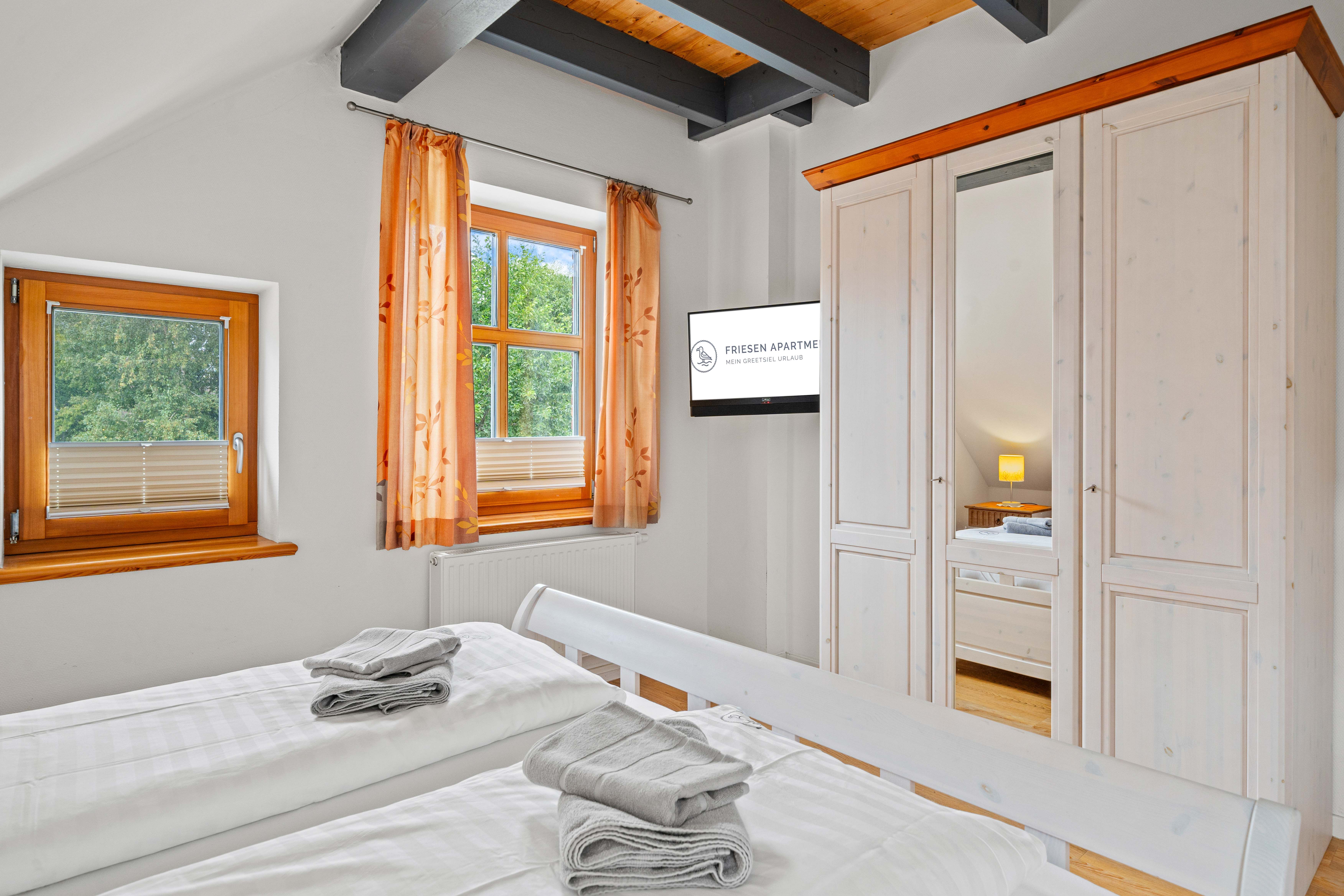 Mitten im historischen Hafen, direkt am Alten Deich 25, liegt die stilvolle Ferienwohnung „Bummert am Hafen Nr. 3“ eine gemütliche Unterkunft im charmanten Dreigiebelhaus mit nur drei Wohneinheiten. Auf großzügigen 90qm erwartet Sie ein Ort zum Ankommen und Wohlfühlen, ideal für bis zu vier Personen. Die Wohnung besticht durch ihren hellen, offenen Wohnbereich, der mit einem gemütlichen Kamin, einer großen Wohnlandschaft, einem Esstisch und einer modernen Einbauküche ausgestattet und somit das Herzstück der Wohnung ist. Weiterhin bietet die Wohnung im Obergeschoss zwei liebevoll eingerichtete Schlafzimmer mit Doppelbetten. Besonders komfortabel für den gemeinsamen Urlaub mit der Familie oder Freunden sind die beiden Badezimmer, wovon eines mit ebenerdiger Dusche und das andere mit einer Badewanne und einer zusätzlichen Dusche ausgestattet ist. Zur Wohnung gehören außerdem eine überdachte Terrasse, die auch bei norddeutschem Wetter ein geschützter Ort zum Verweilen ist sowie ein PKW-Stellplatz direkt am Haus. Auch ein gemeinschaftlich nutzbarer Waschraum mit Waschmaschine und Trockner ist vorhanden. Somit ist die Wohnung „Bummert am Hafen Nr. 3“ die perfekte Adresse für alle, die Ruhe, Komfort und die Nähe zum Wasser schätzen.