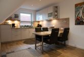 Das gemütliche Wohn/Esszimmer ist mit einer - voll ausgestatteten- integrierten Einbauküche, einer gemütlichen Couch und zwei Relaxsessel, einem Fernseher und einer Essgruppe ausgestattet. Von hier aus gelangen Sie auf den möblierten Balkon, der zum Sonnenbaden einlädt.