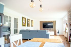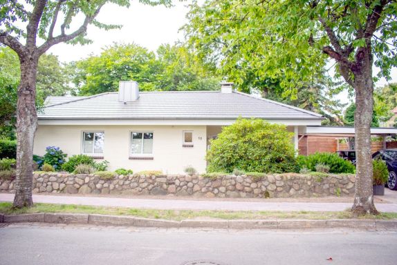 Herzlich Willkommen Wyk auf Föhr. Der freistehende Bungalow auf 750 qm Grundstück, mit Terrasse und großem Garten liegt nahe am Südstrand in der Waldstraße. Die Südterrasse lädt zum Grillen und Verweilen ein. Über 125 qm erstrecken sich die hellen Zimmer in diesem Nichtraucher-Haus. Großzügig und gemütlich eingerichtet hat man hier die Möglichkeit einen entspannten und ruhigen Urlaub zu verbringen. Im WOHN-/ESSBEREICH relaxen Sie auf einer sehr gemütlichen Sitzecke, SMART-TV, Soundbar und HiFi-Anlage lassen keine Wünsche offen. Der Essbereich verfügt über einen großzügigen Tisch mit 4 Stühlen. Für gemütliche Stunden in der kalten Jahreszeit steht ein Kaminofen bereit. Die offene Küche ist komplett ausgestattet, ein zusätzlicher Vorrats-/Abstellraum mit Waschmaschine, Trockner und Mini-Gefrierschrank steht zur Verfügung. Das SCHLAFZIMMER 1 ist mit einem Doppelbett (1,80 X 2 m), einer Kommode und einem 4-türigen Kleiderschrank eingerichtet. Das BADEZIMMER ist gut ausgestattet mit bodenebener Dusche, Eck-Badewanne, WC und genügend Stauraum. Das SCHLAFZIMMER 2 ist mit einem Doppelbett (160 x 2,00 m), einem Schrank (2 Türen, 2 Schubladen) und SMART-TV mit 55 Zoll eingerichtet. Zusätzlich verfügt die Wohnung über ein Gäste-WC.