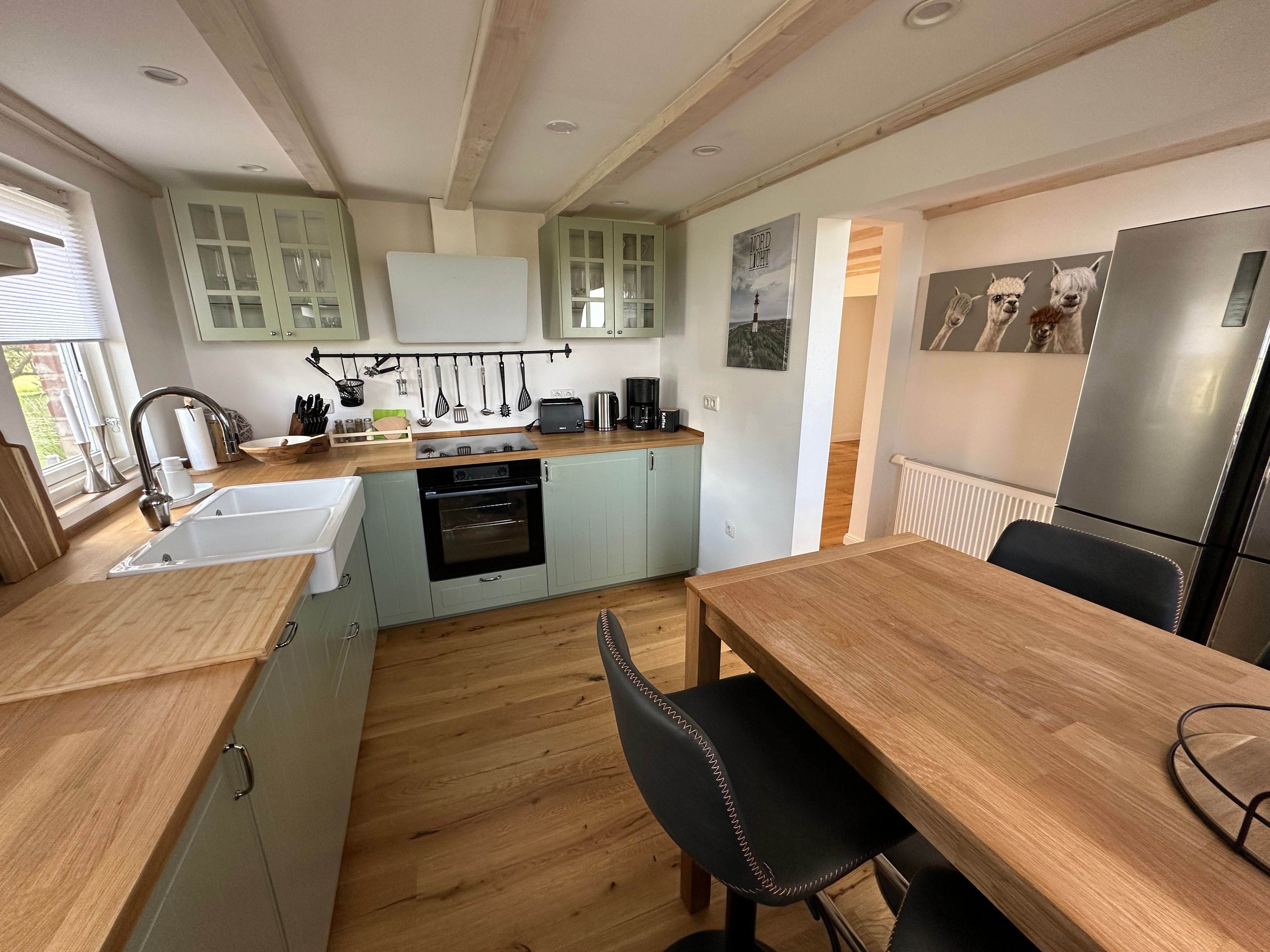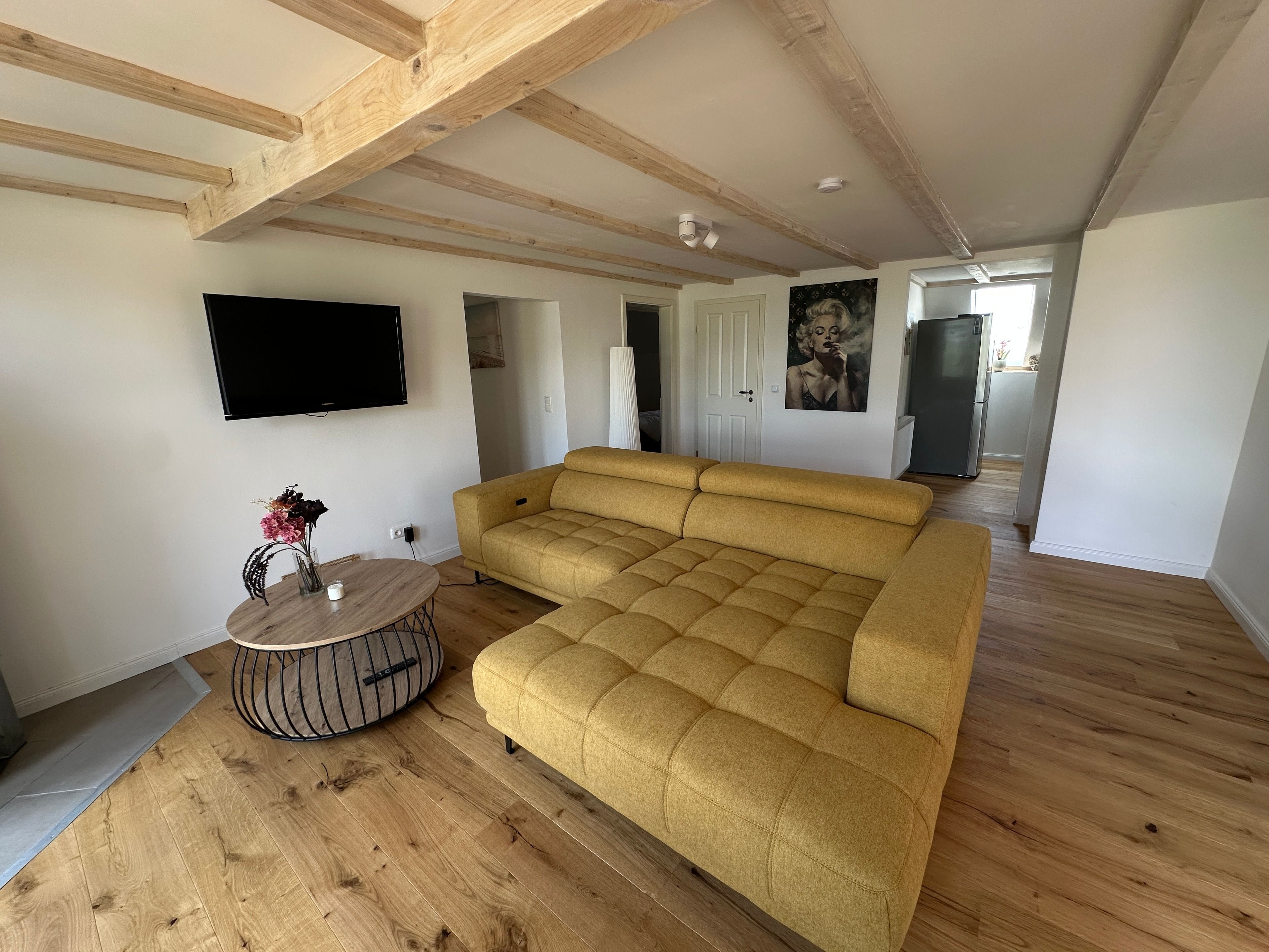 Im Inneren der Wohnung erwartet Sie eine helle, moderne und hochwertige Einrichtung, die über die letzten zwei Jahre hinweg komplett saniert wurde. Jeder Raum wurde liebevoll gestaltet und mit neuen Böden, Wänden, Bädern, Decken, Fenstern, Türen, der Elektrik und Möbeln ausgestattet, um Ihnen ein unvergleichliches Wohngefühl zu bieten. Die Küche beeindruckt mit einem Induktionskochfeld, großem Side-by-Side-Kühlschrank, Spülmaschine, Backofen und Waschmaschine. Für gemütliche Stunden sorgt der schöne Kaminofen, der vom 01.10. bis zum 30.04. eines jeden Jahres mit einem Korb Feuerholz bestückt wird, während Echtholz Eiche-Parkett Landhausdielen und ein smart TV im Wohnzimmer den Komfort abrunden.