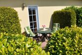 Außerdem gibt es eine kleine Abstellkammer. In der Küchenzeile befindet sich alles, was man benötigt – von Töpfen, Pfannen und Geschirr über den Toaster bis hin zur Mikrowelle. Die Terrasse lädt zum Verweilen ein und bietet mit ihrer Südlage den perfekten Sonnenmagneten.