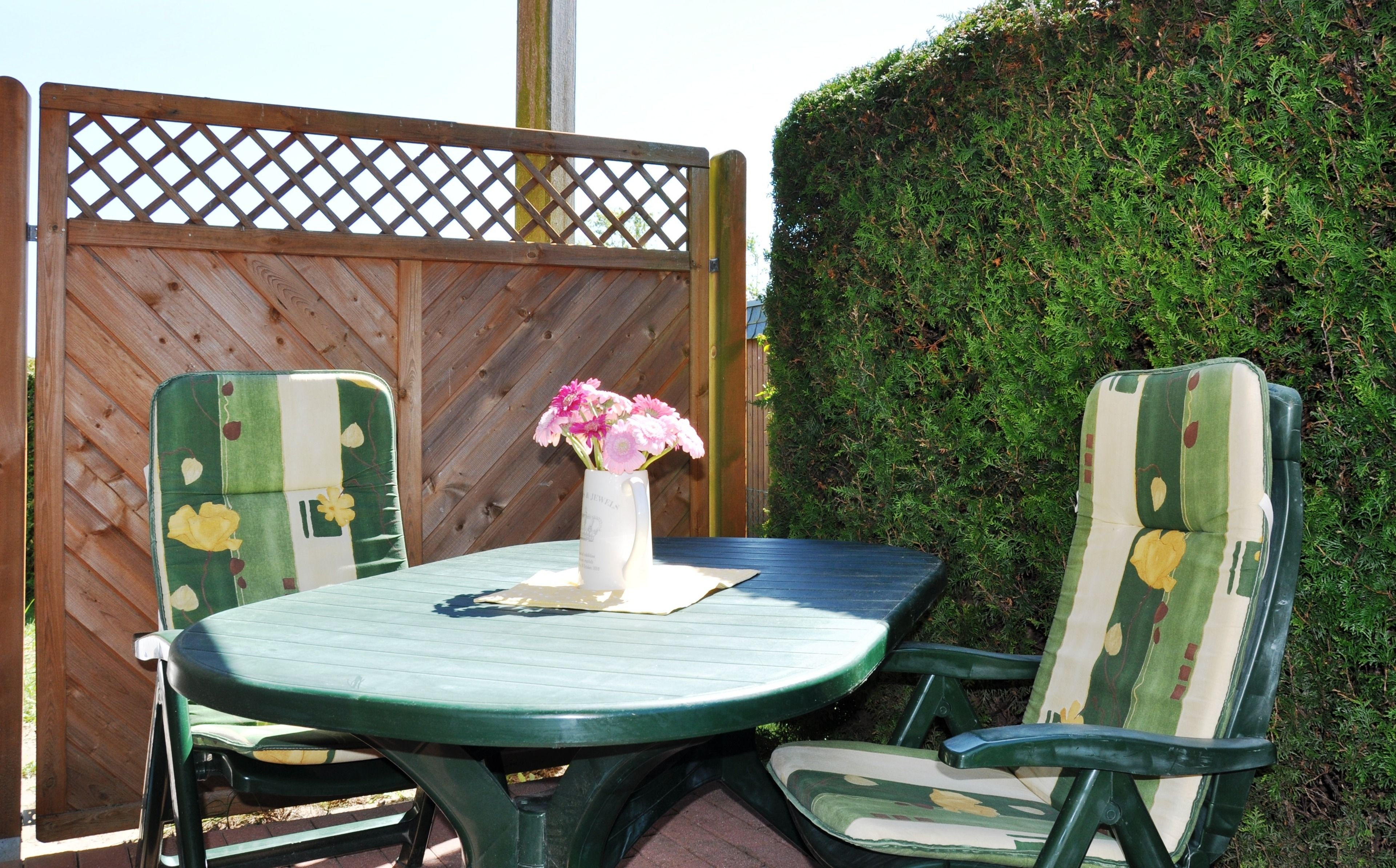 Im Wohnbereich lädt ein Fernseher zu gemütlichen Abenden ein. An warmen Tagen genießen Sie Ihre Auszeit auf der eigenen Terrasse – perfekt für ein Frühstück im Freien oder ein Glas Wein am Abend.