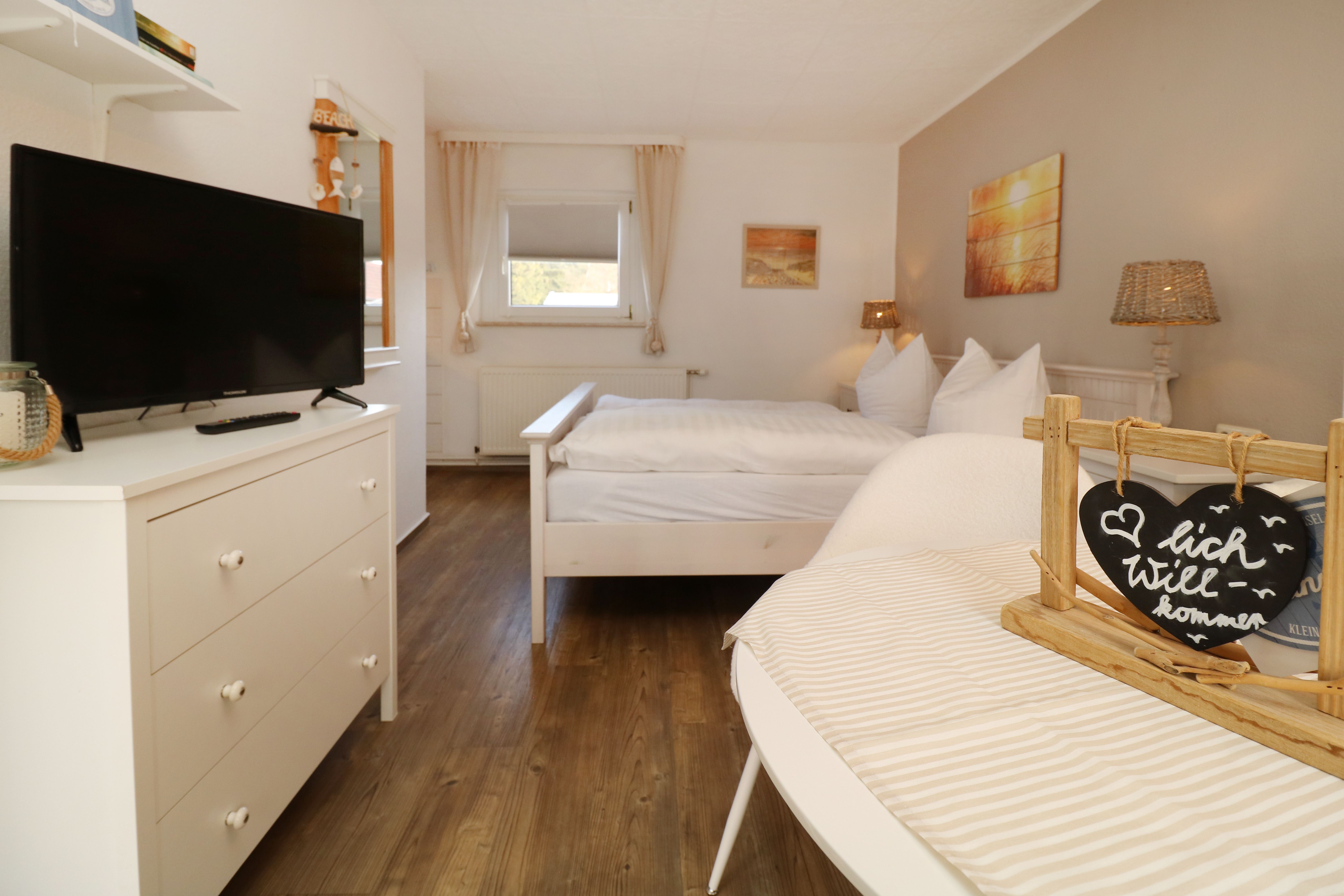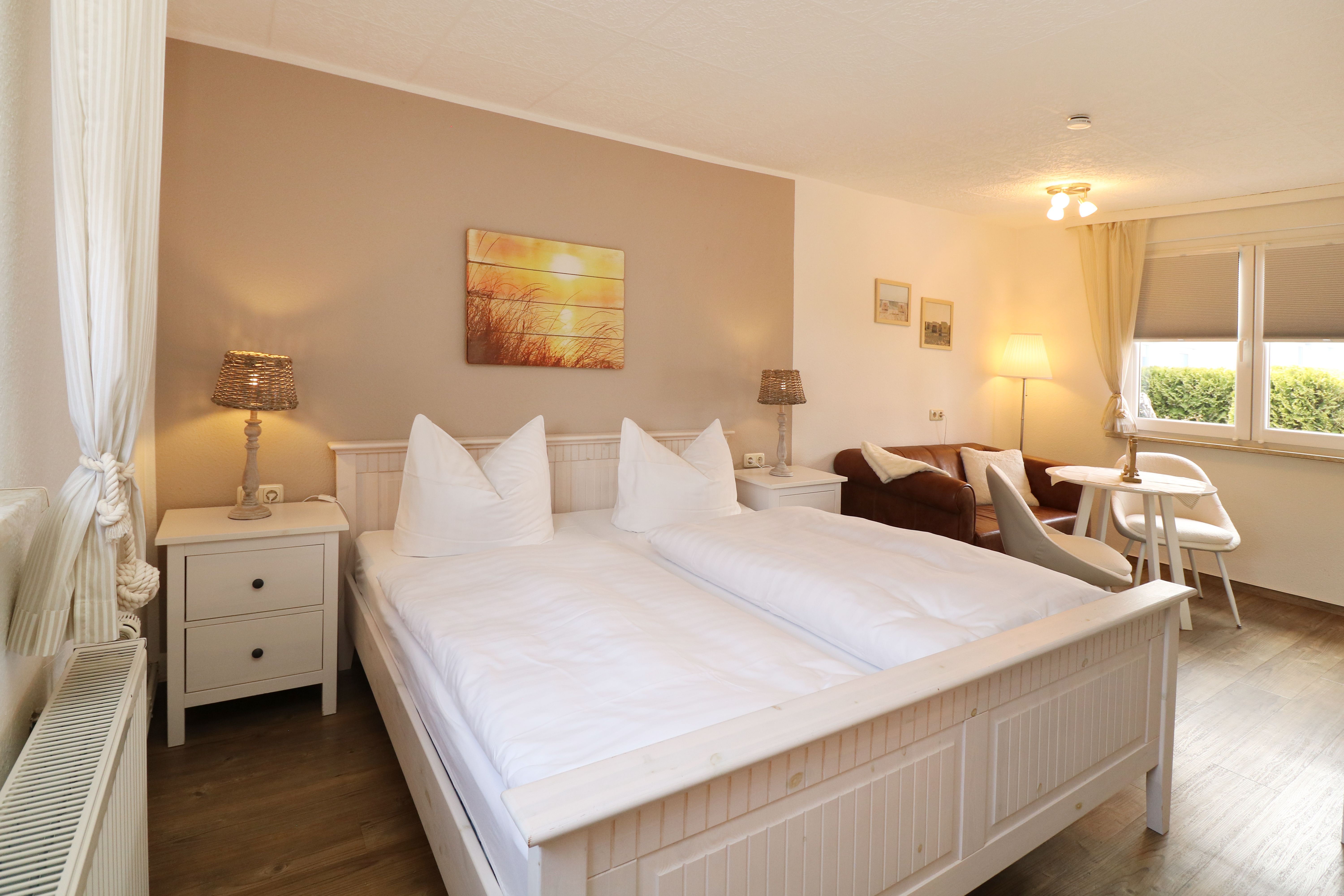 Unsere maritim und liebevoll ausgestatteten 1 Raum Ferienwohnungen sind die idealen Unterkünfte für Paare, gute Freunde oder Alleinreisende für 1-2 Personen. Sie vereinen Wohn- und Schlafbereich zu einem Raum und sind ausgestattet mit einem Doppelbett und einem Sofa oder Sesseln.
