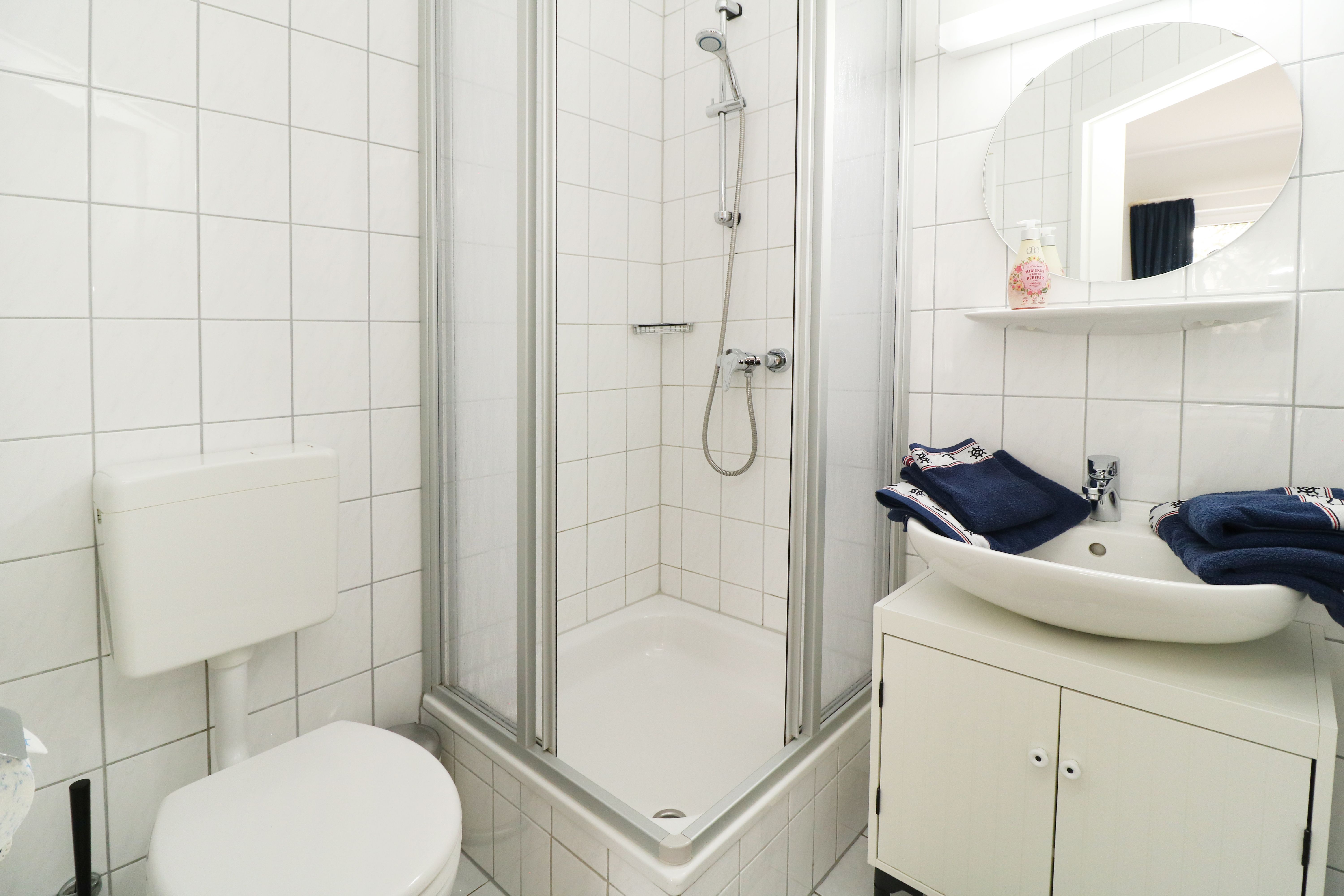 Das Bad befindet sich separat und beinhaltet Dusche und WC.