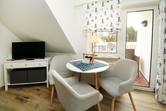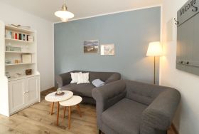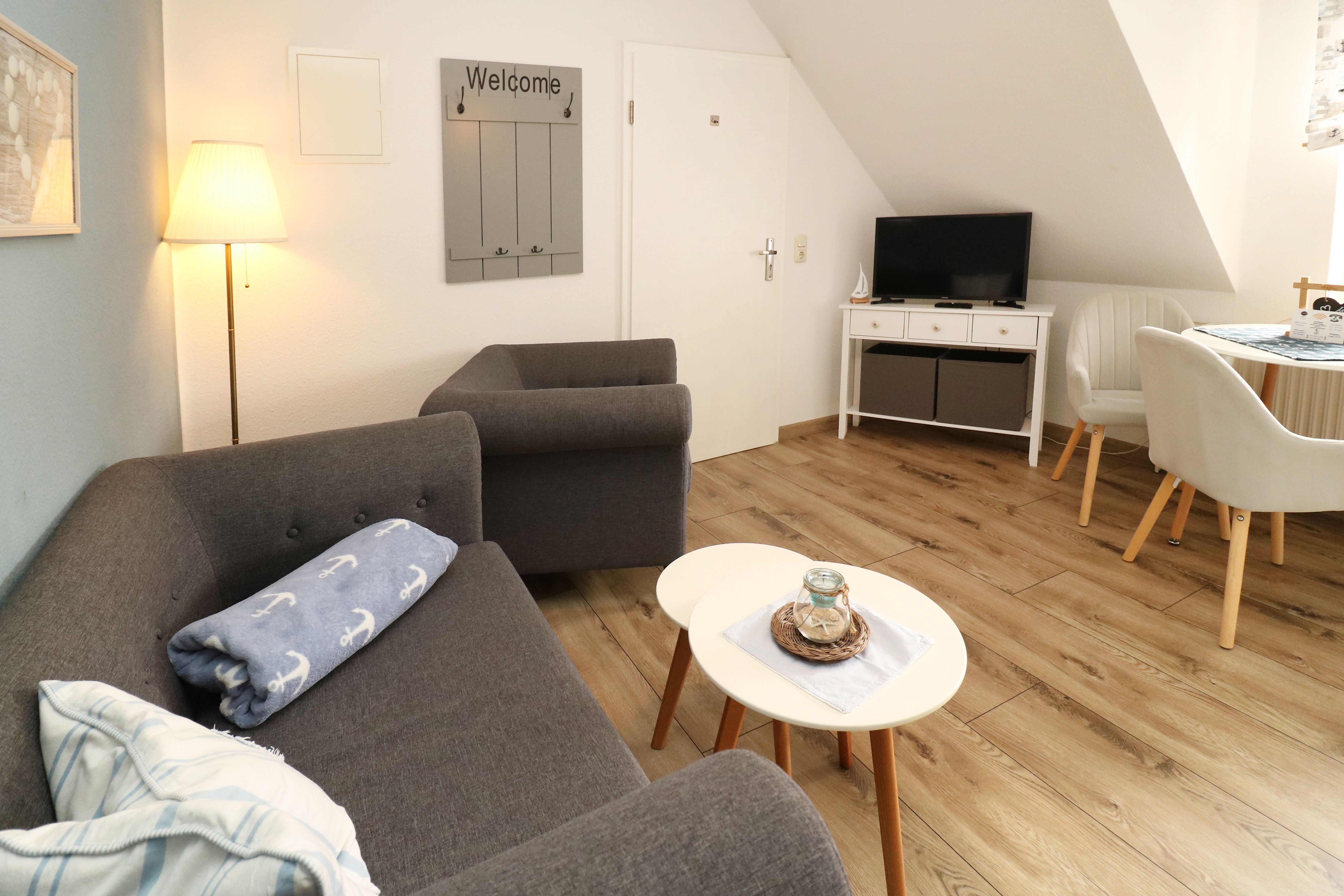 Diese maritim eingerichtete 2 Raum Ferienwohnung im erstem Obergeschoss bietet ein einladendes Zuhause für