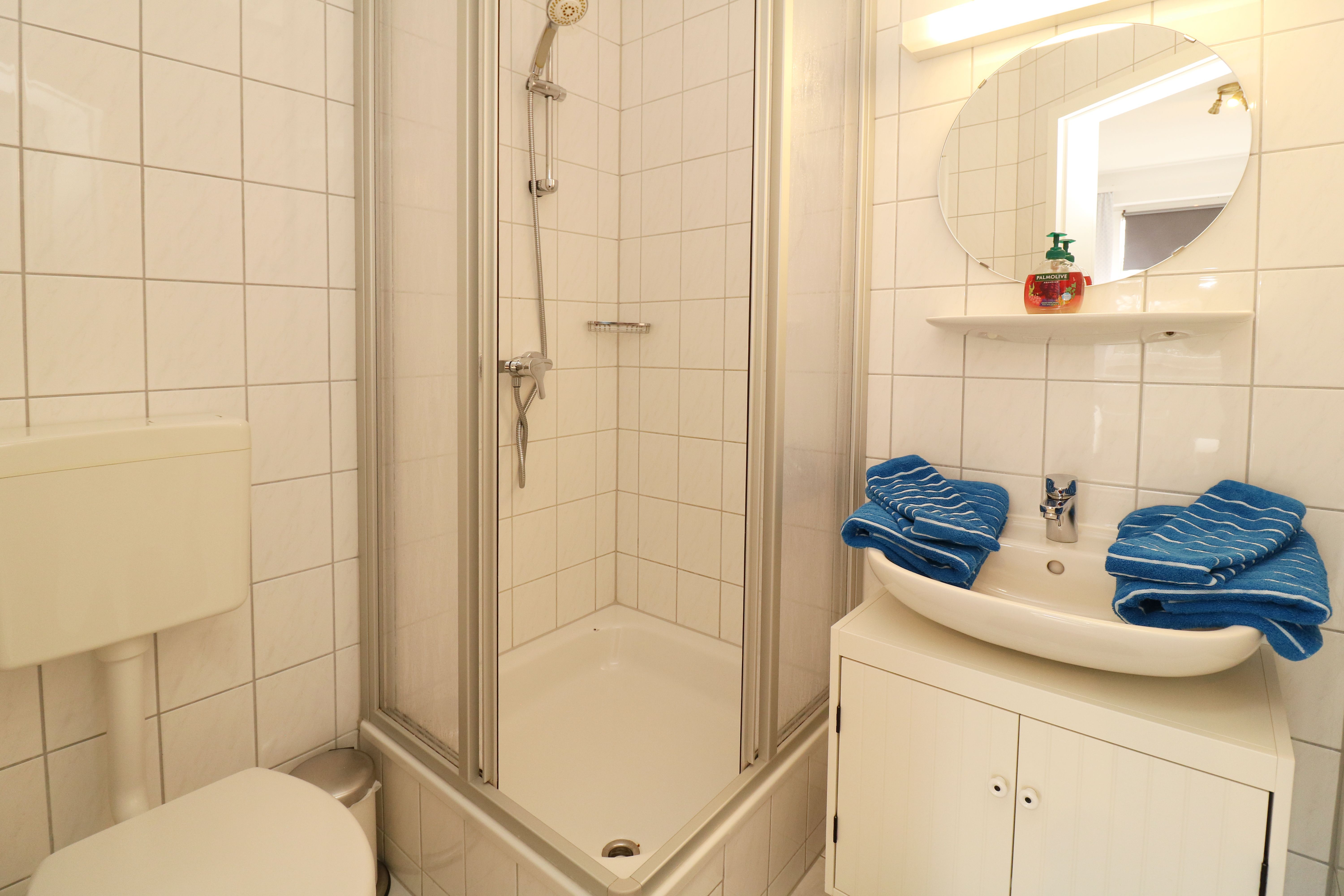 Das Bad befindet sich separat und beinhaltet Dusche und WC.