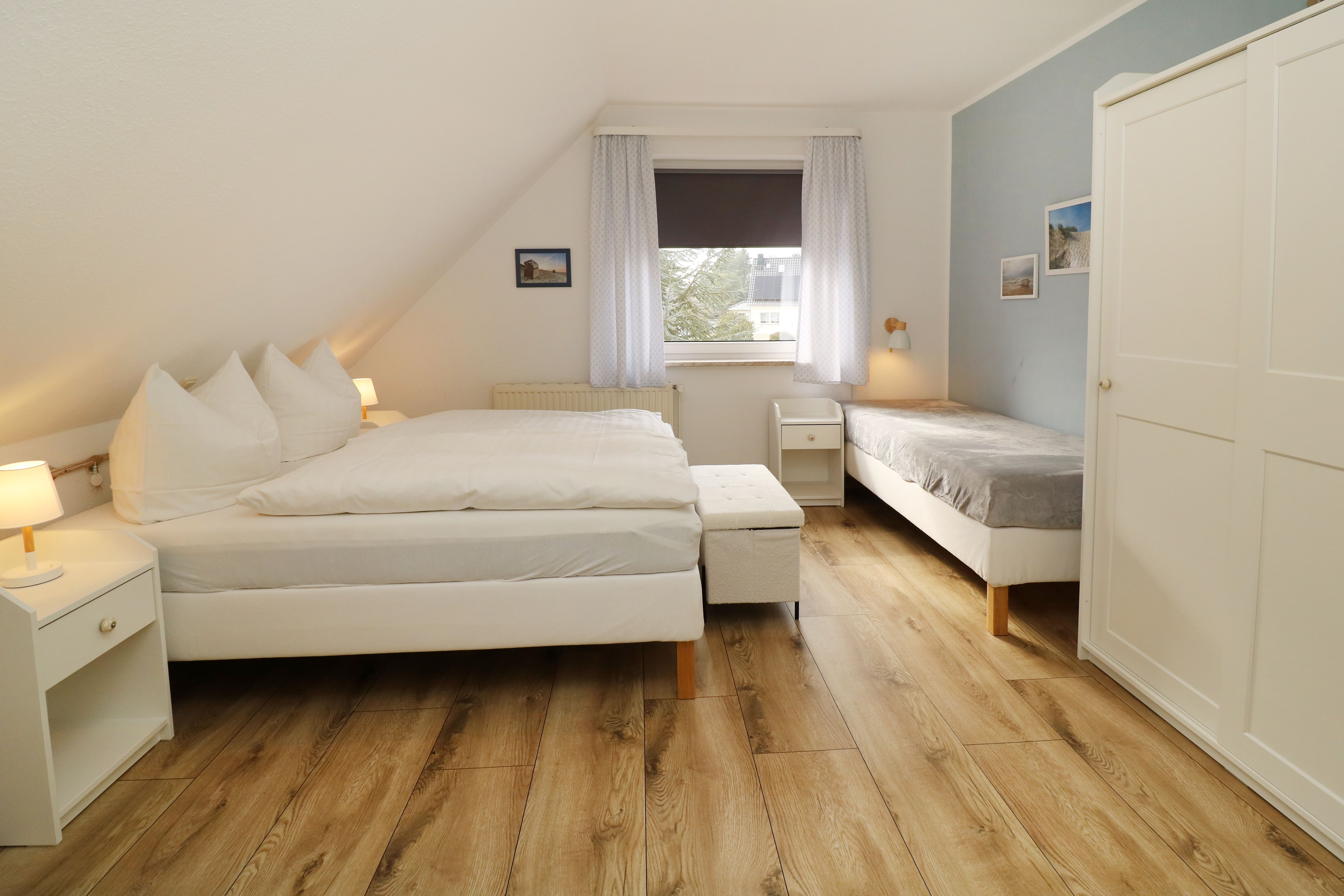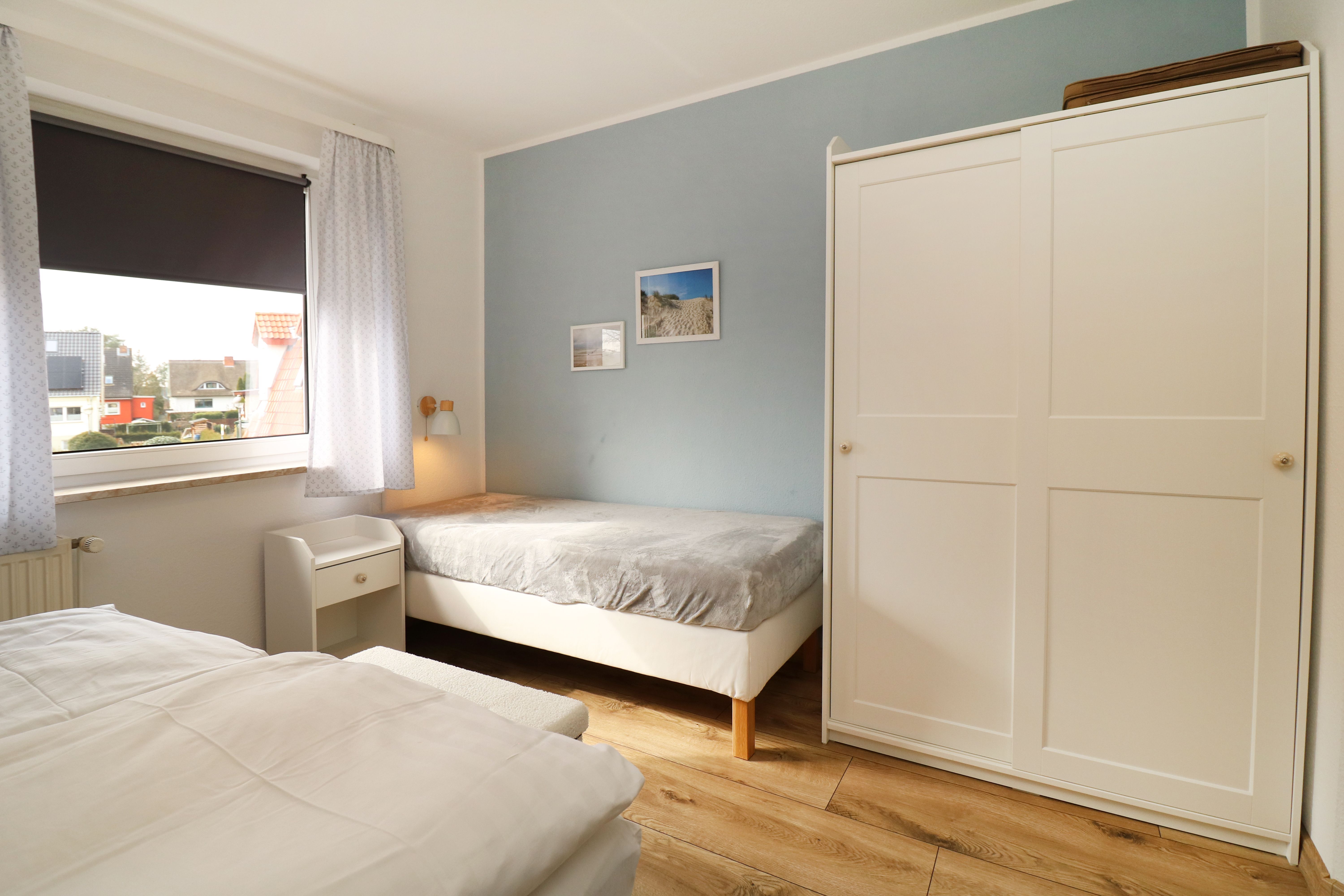 Das Schlafzimmer verfügt über ein Doppelbett (160x200cm) sowie über ein Einzelbett (90x200cm) -