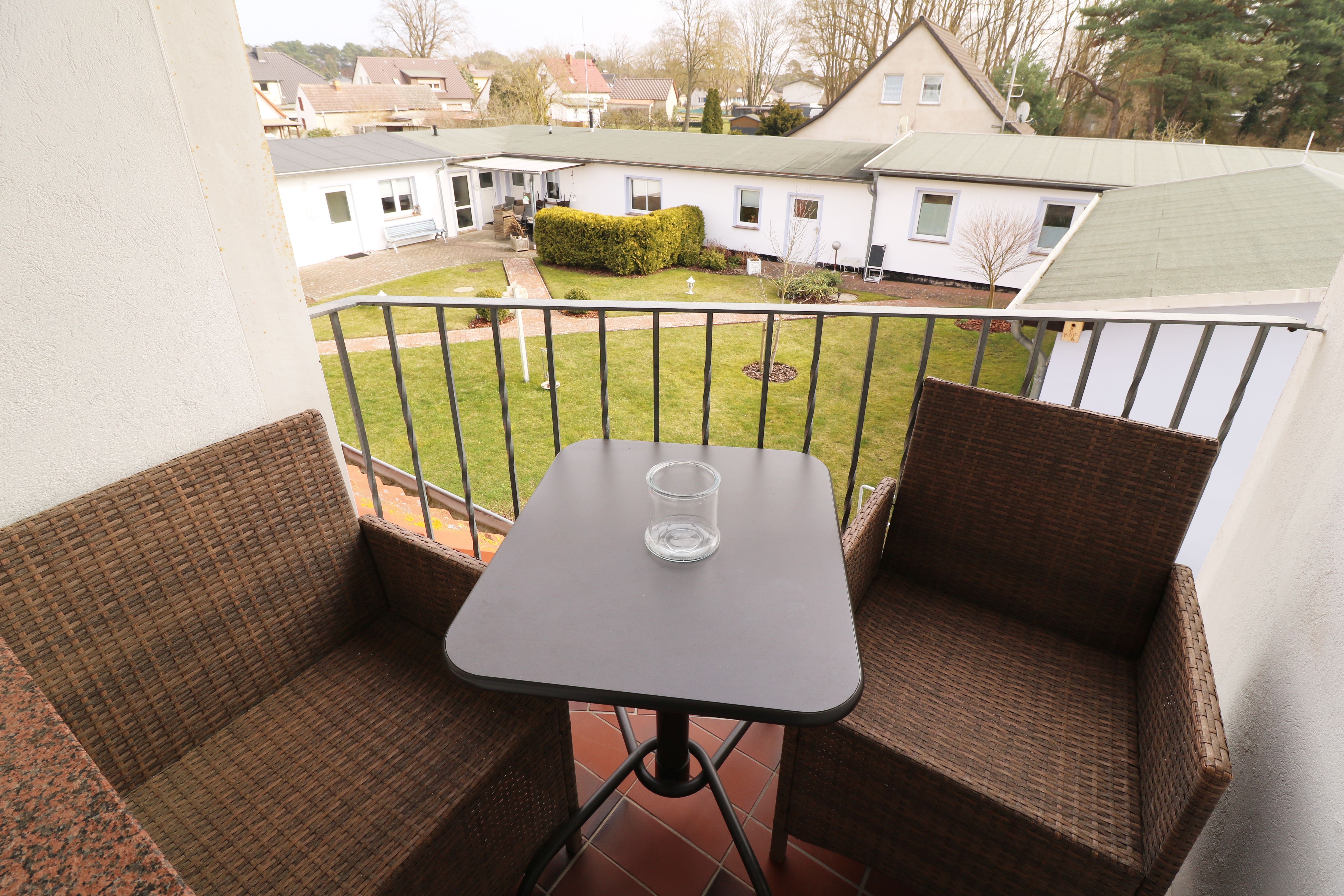 Genießen Sie entspannte Stunden auf Ihrer eigenen Terrasse oder Ihrem kleinen Balkon, während Sie den Blick auf den schön angelegten Garten schweifen lassen. Lassen Sie den Tag bei einem Glas Wein ausklingen, während die Sonne untergeht.