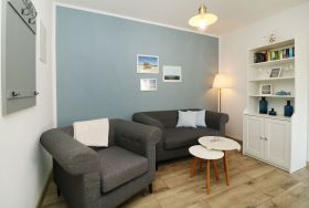 Diese maritim eingerichtete 2 Raum Ferienwohnung im erstem Obergeschoss bietet ein einladendes Zuhause für