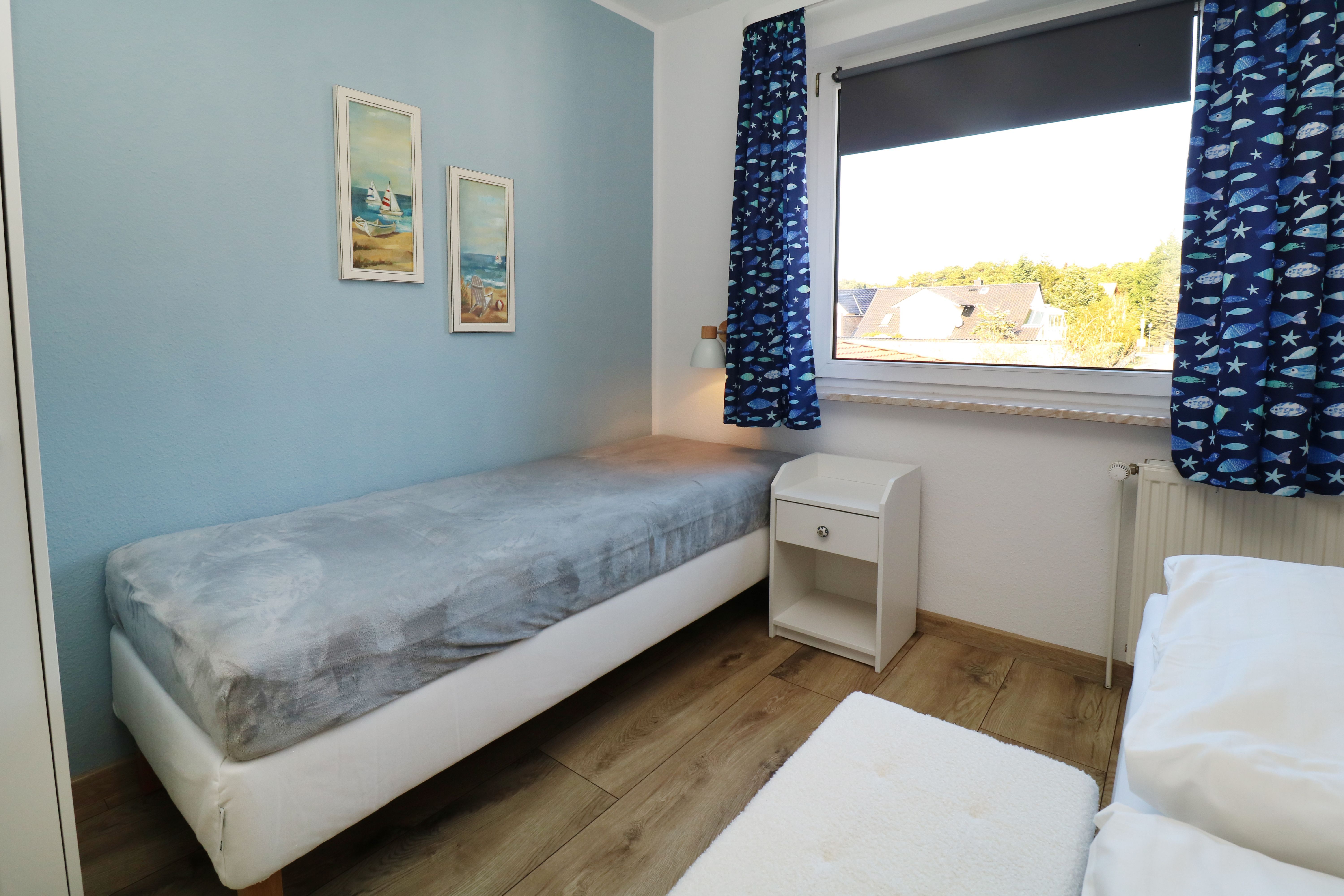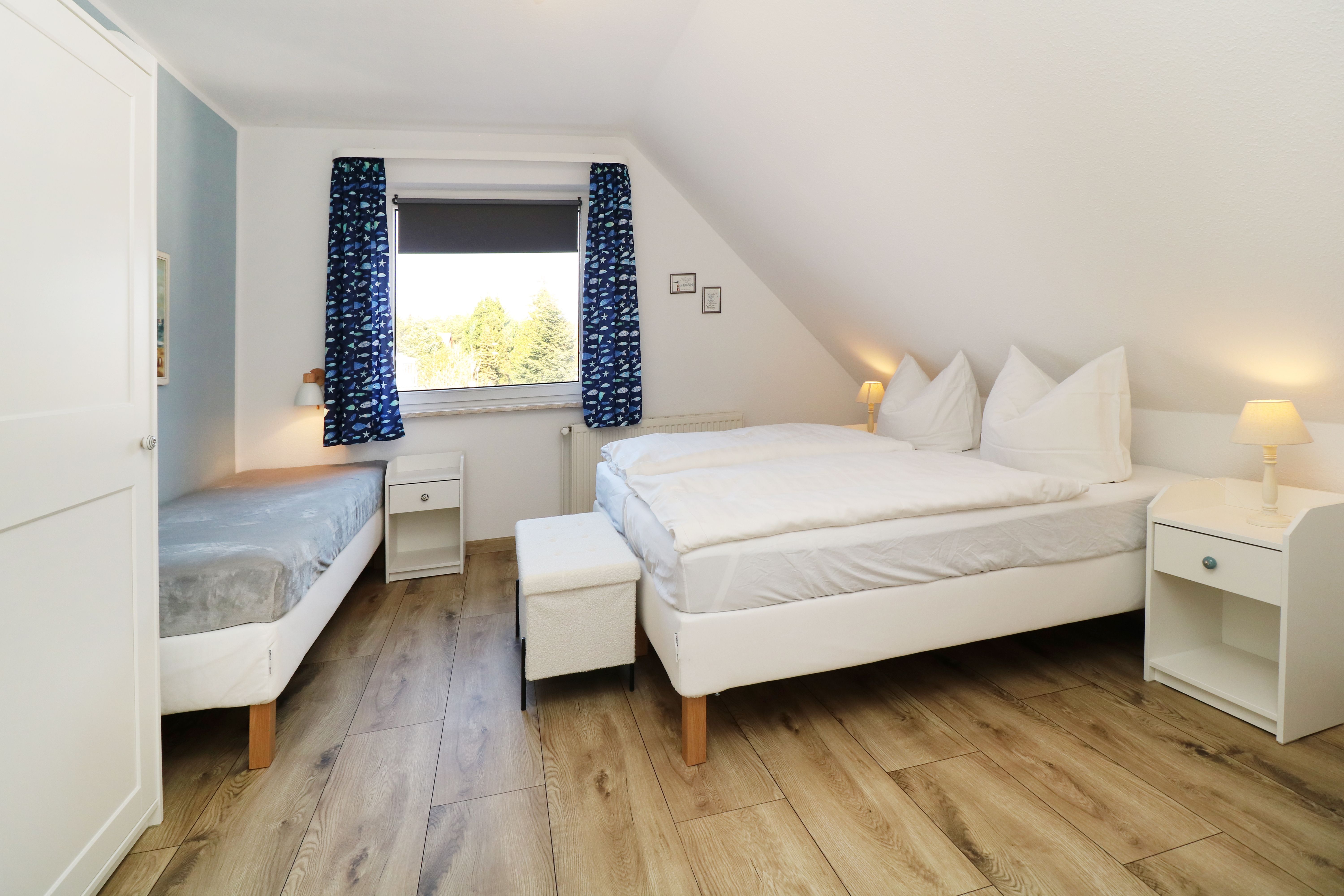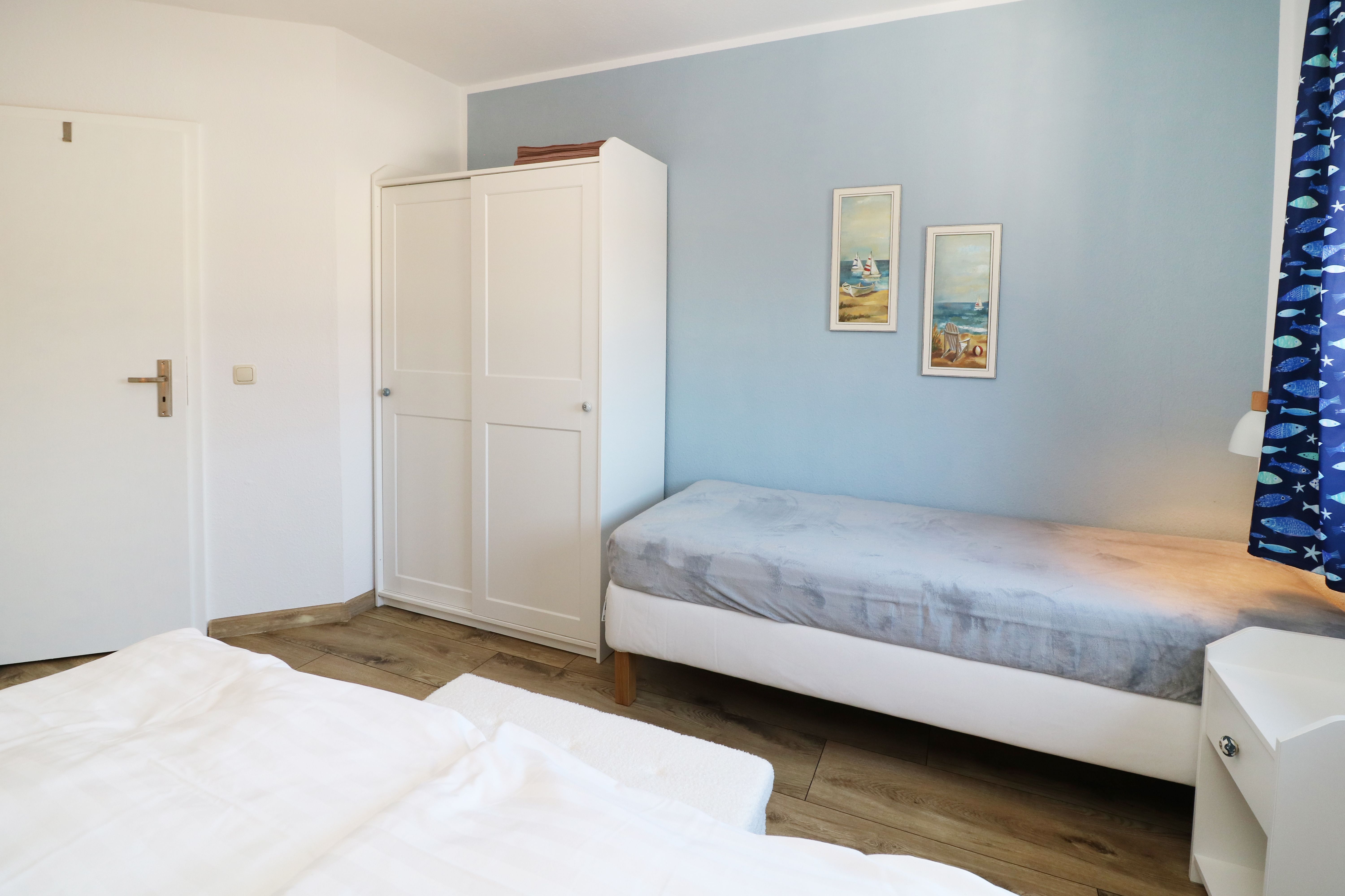 Das Schlafzimmer verfügt über ein Doppelbett (160x200cm) sowie über ein Einzelbett (90x200cm) -