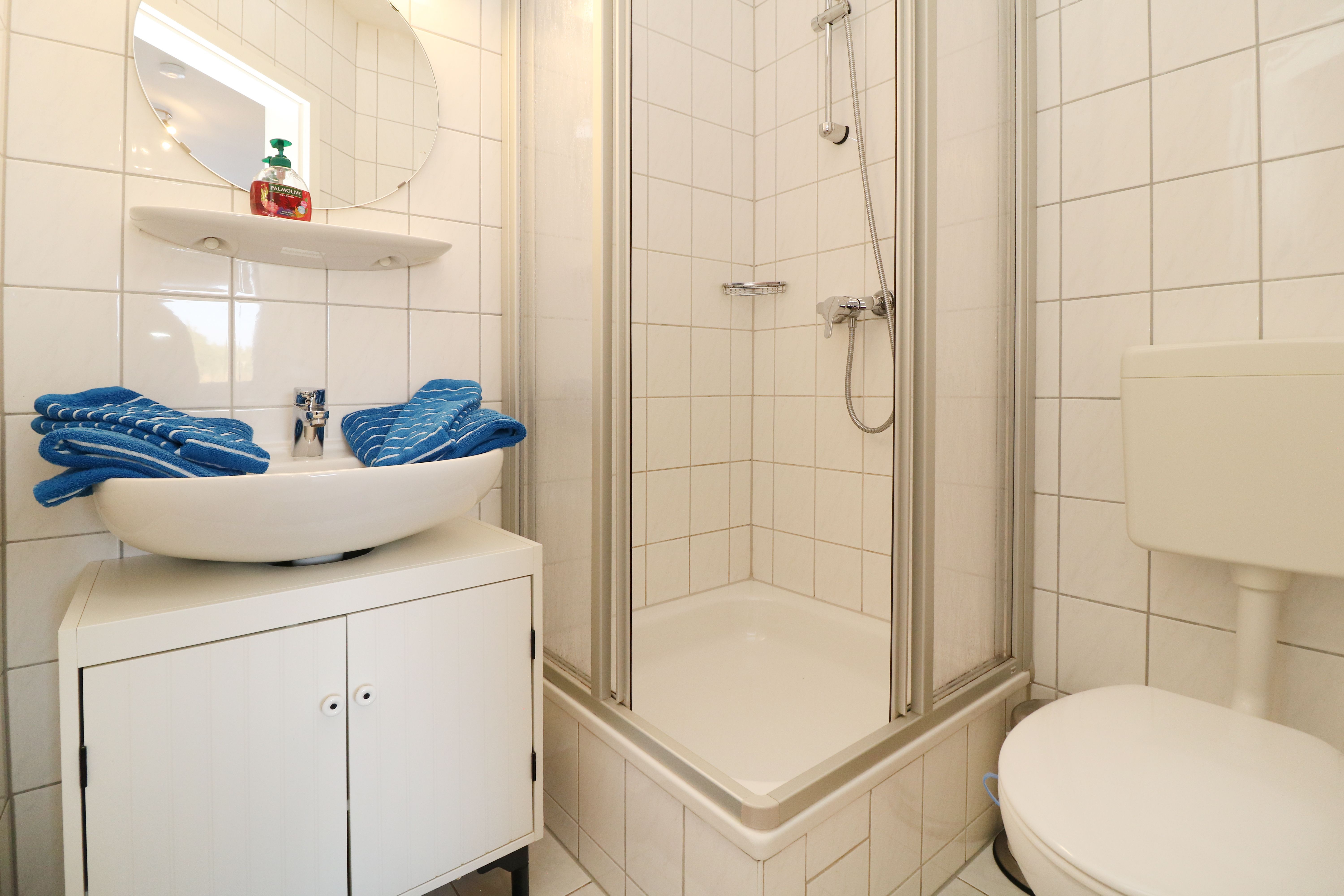 Das Bad befindet sich separat und beinhaltet Dusche und WC.