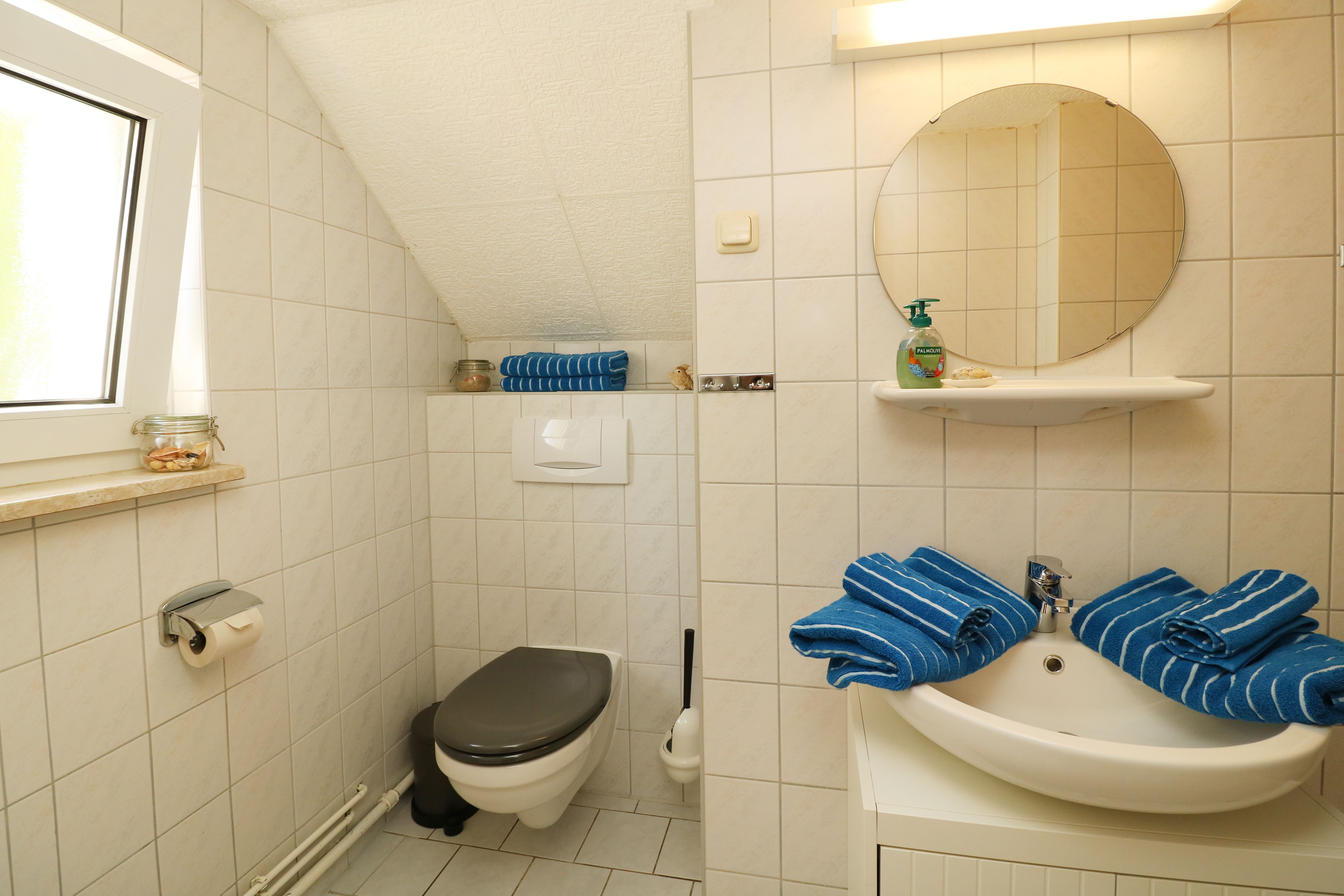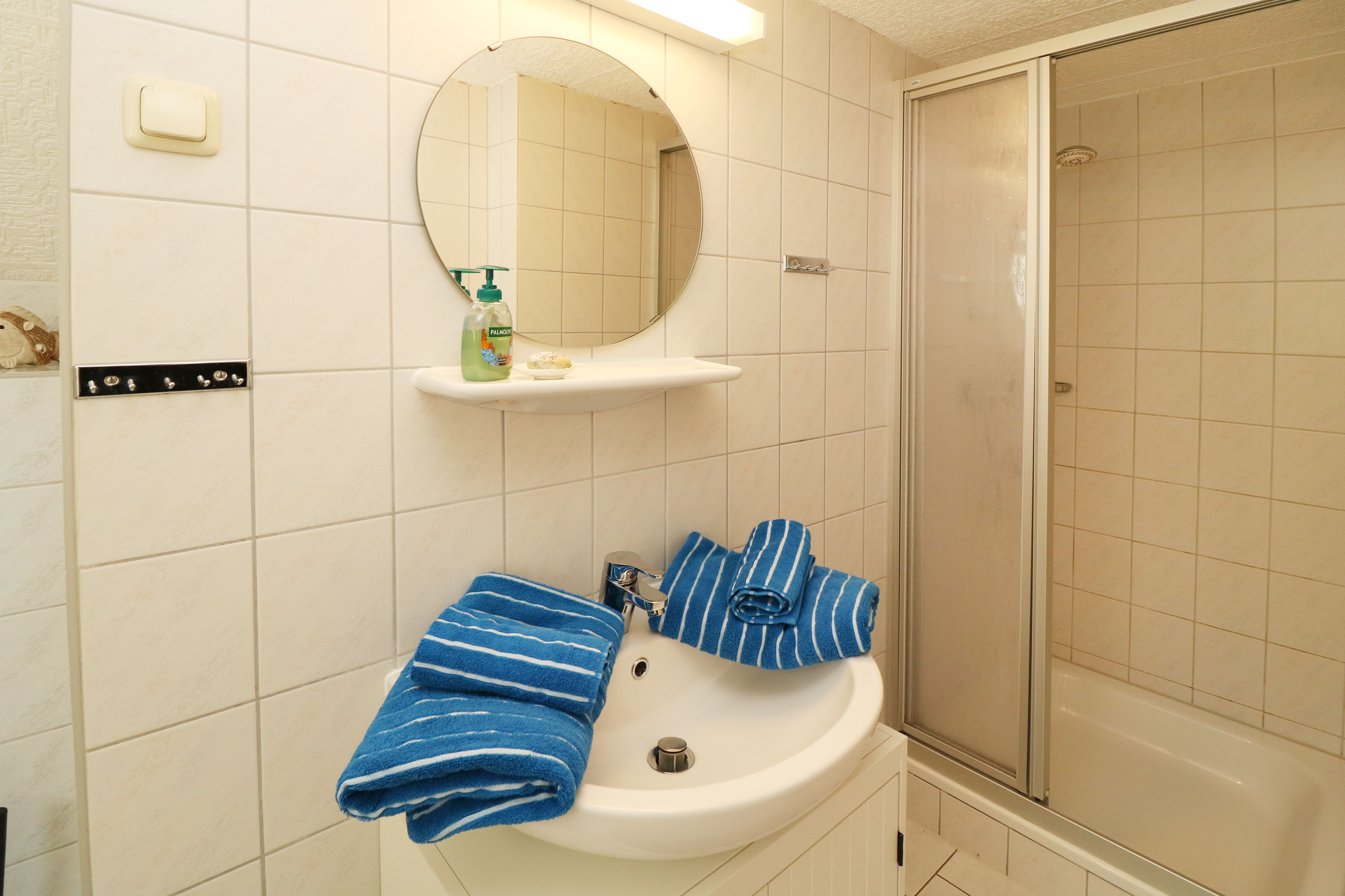 Das Bad befindet sich separat und beinhaltet Dusche und WC.