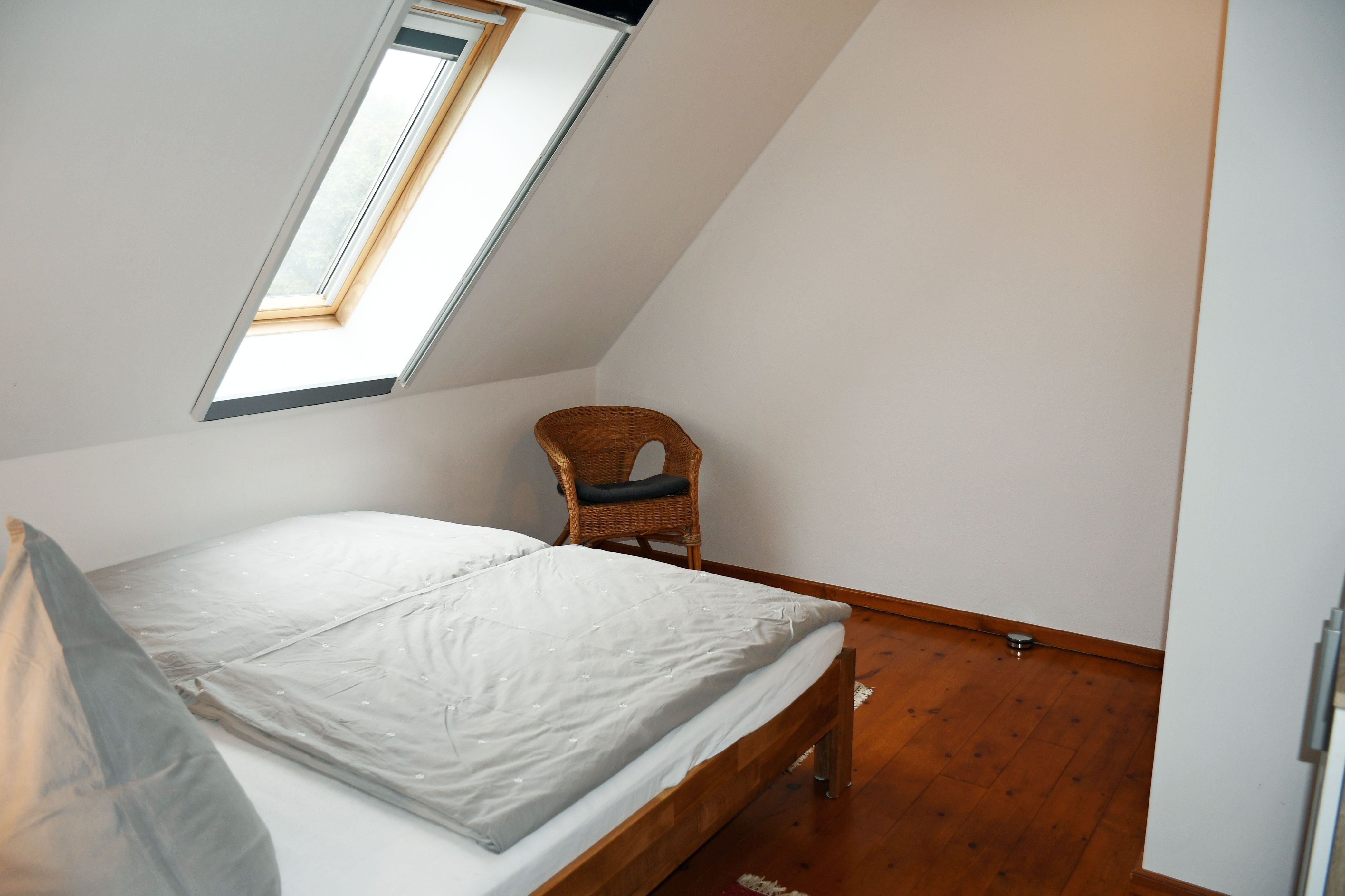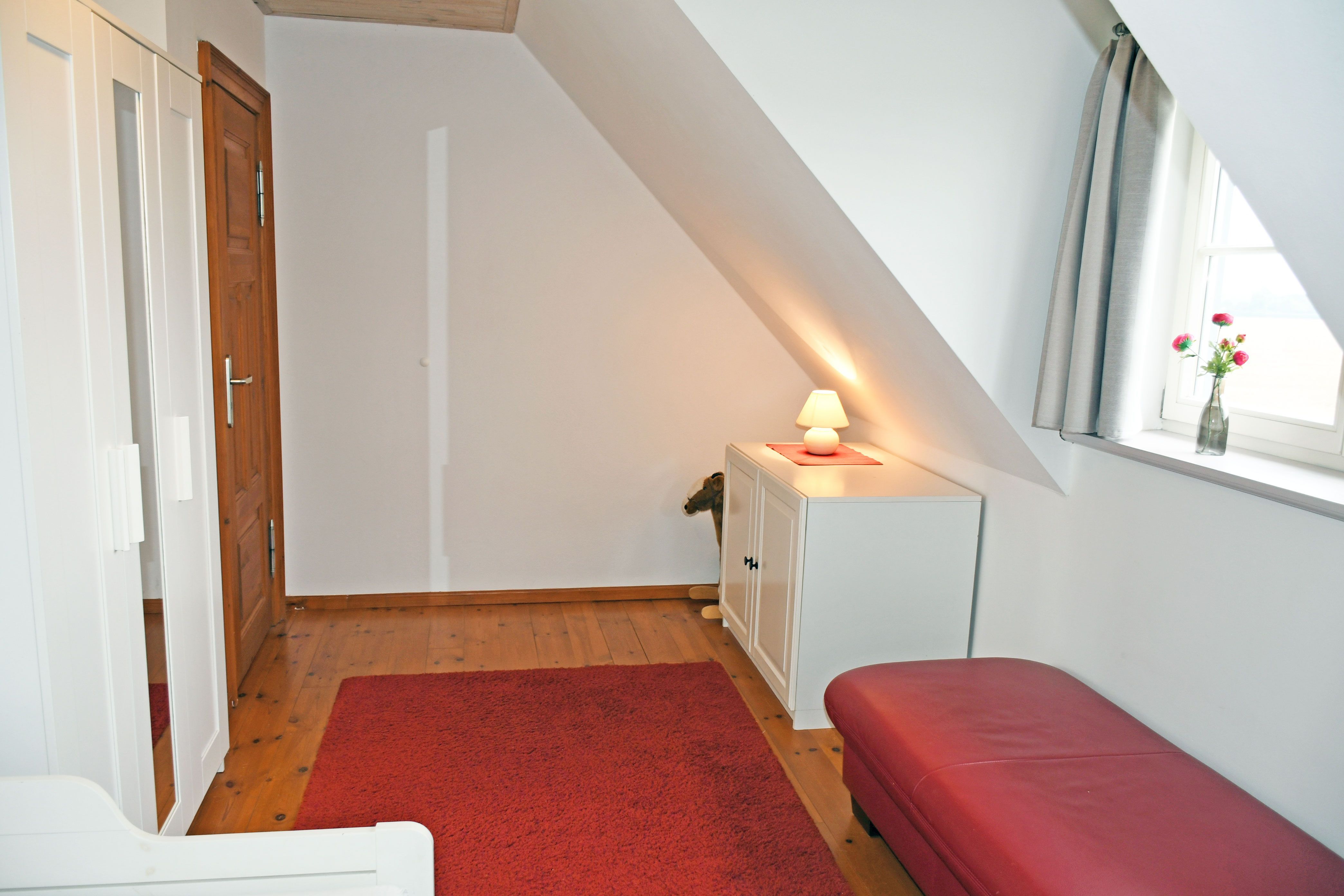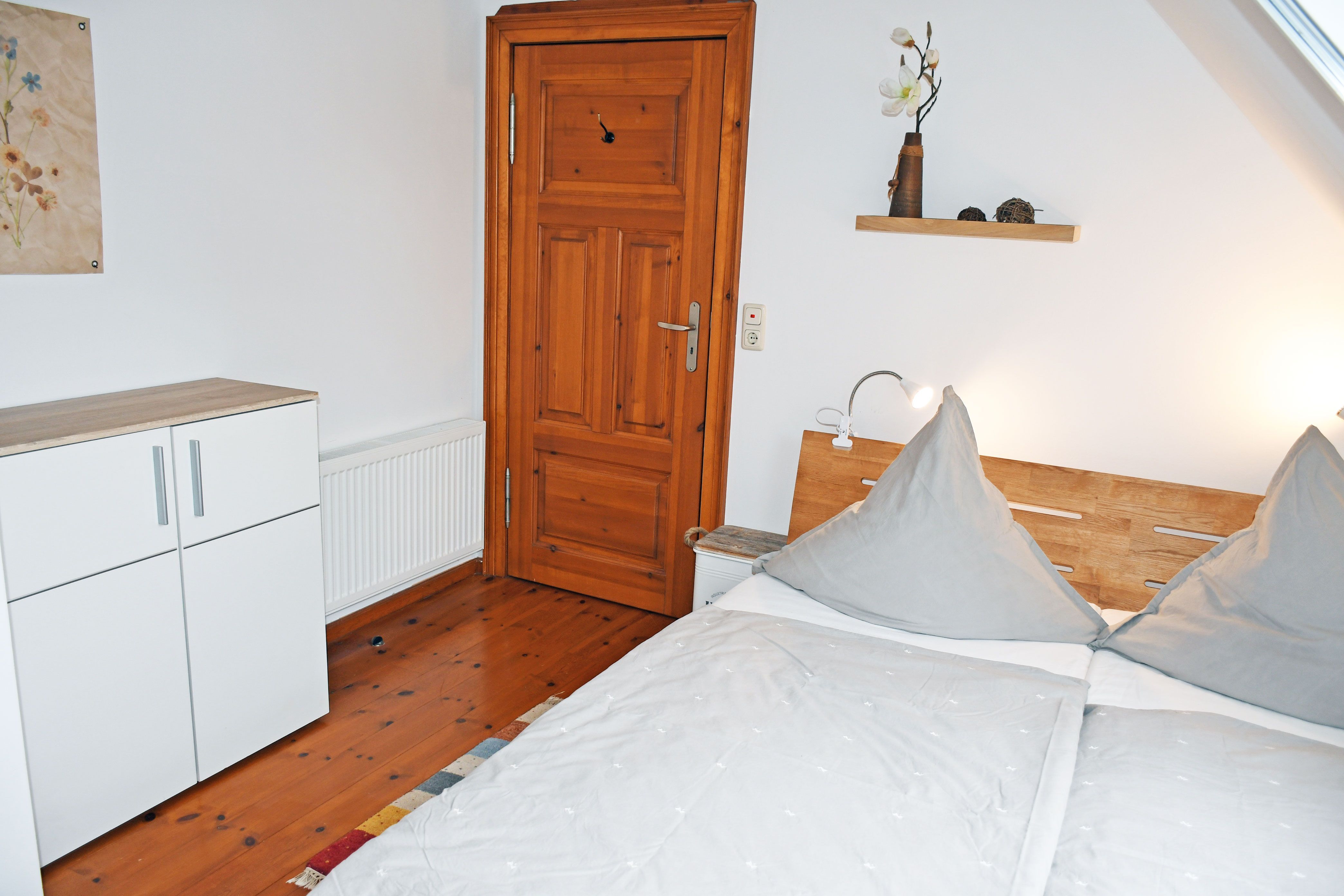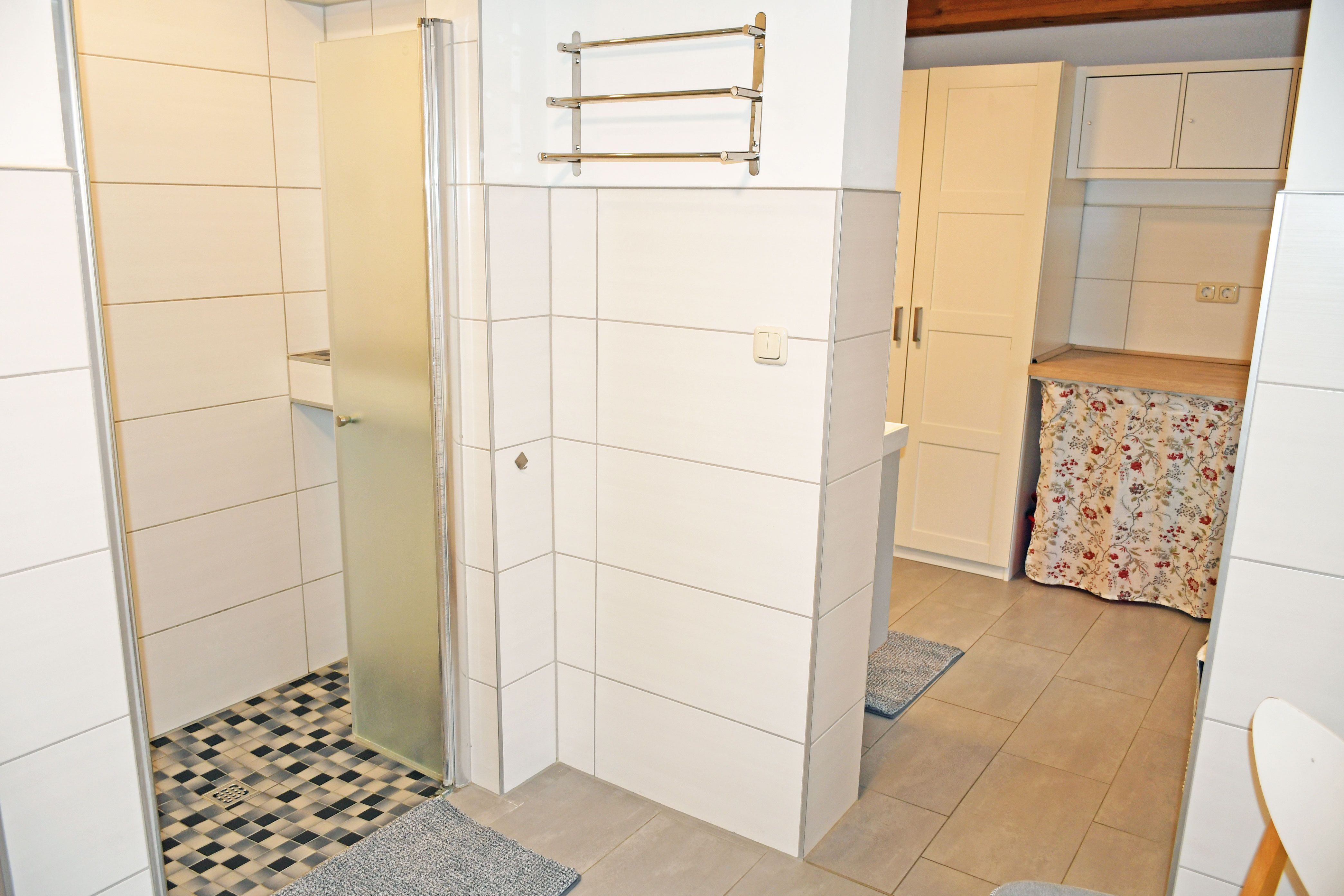 Im unteren Bereich finden sie den Eingangsbereich mit der Treppe, eine große Wohnküche mit dem Familienzimmer und das große Duschbad. Alles ist ebenerdig und mit einer Fußbodenheizung ausgestattet. Einen Kamin können sie in den Wintermonaten natürlich auch nutzen. Das Dachgeschoß verfügt über 3 Schlafräume. Zwei sind mit Doppelbetten (1,80 m und 1,60m breit) ausgestattet und eins mit einem Bett (90 x 200 cm), welches auch zu einem Doppelbett ausgezogen werden kann. Ein Kinderbett und ein Hochstuhl stehen kostenfrei zur Verfügung. Im Obergeschoß gibt es außerdem ein Bad mit Wanne.