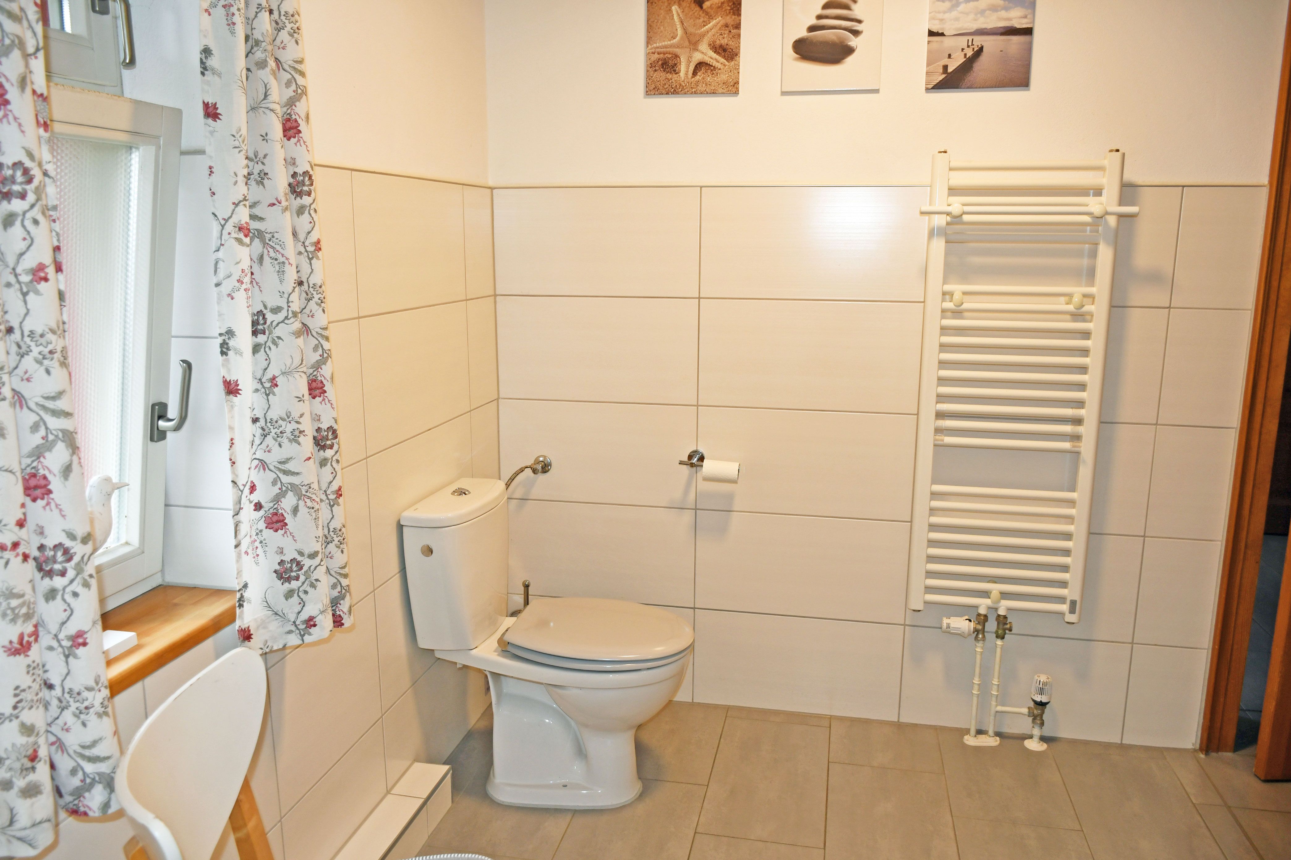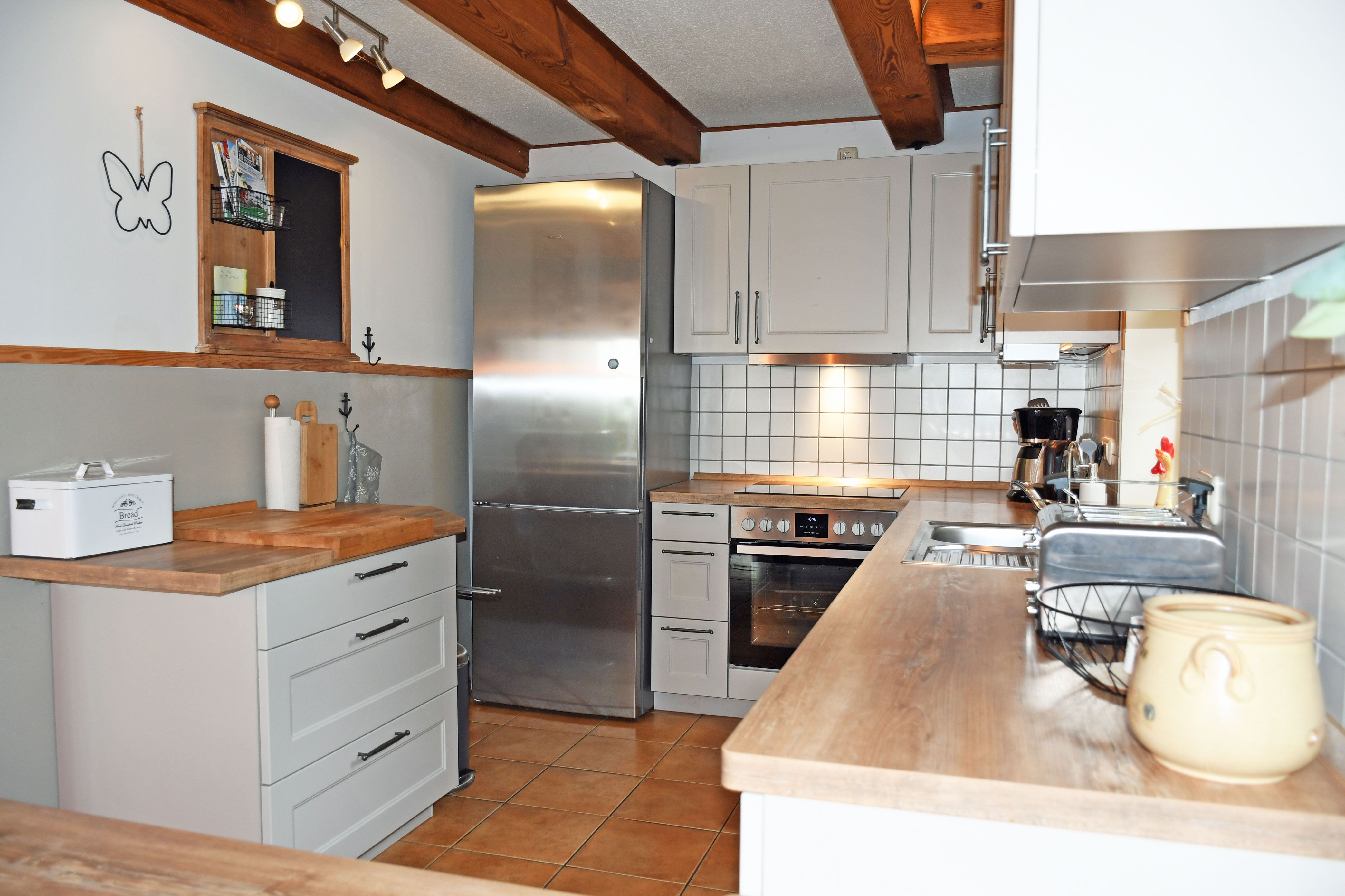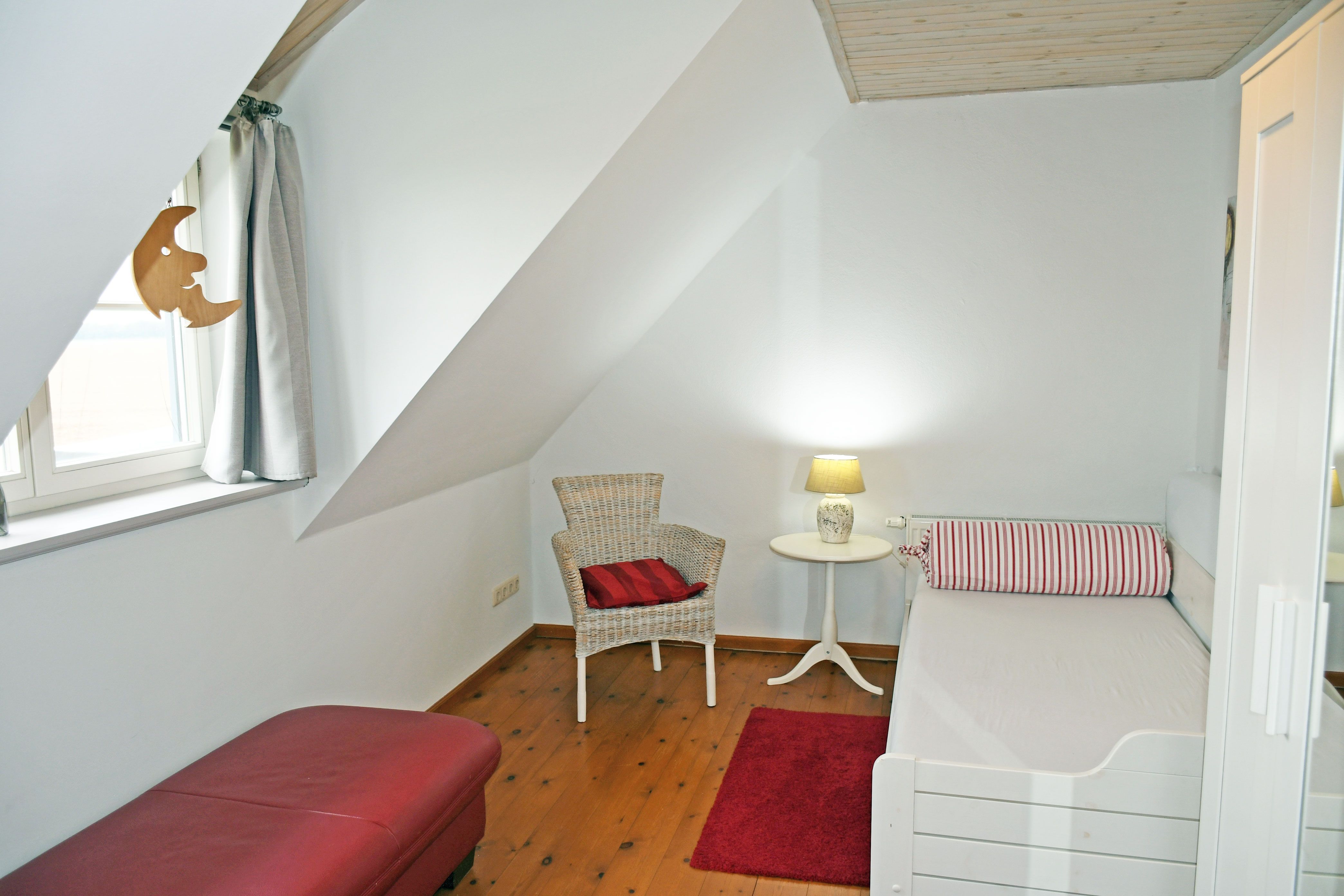 Im unteren Bereich finden sie den Eingangsbereich mit der Treppe, eine große Wohnküche mit dem Familienzimmer und das große Duschbad. Alles ist ebenerdig und mit einer Fußbodenheizung ausgestattet. Einen Kamin können sie in den Wintermonaten natürlich auch nutzen. Das Dachgeschoß verfügt über 3 Schlafräume. Zwei sind mit Doppelbetten (1,80 m und 1,60m breit) ausgestattet und eins mit einem Bett (90 x 200 cm), welches auch zu einem Doppelbett ausgezogen werden kann. Ein Kinderbett und ein Hochstuhl stehen kostenfrei zur Verfügung. Im Obergeschoß gibt es außerdem ein Bad mit Wanne.
