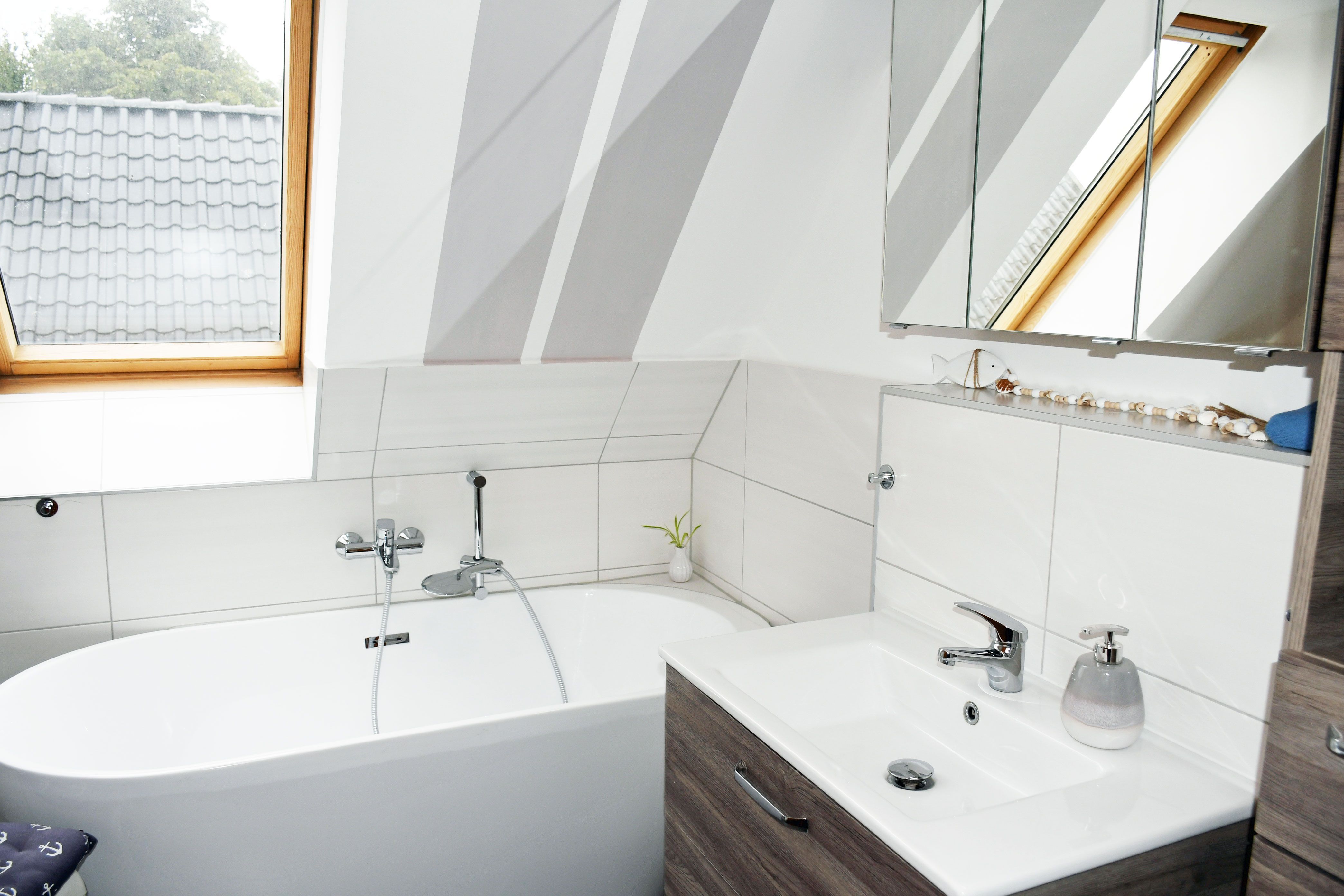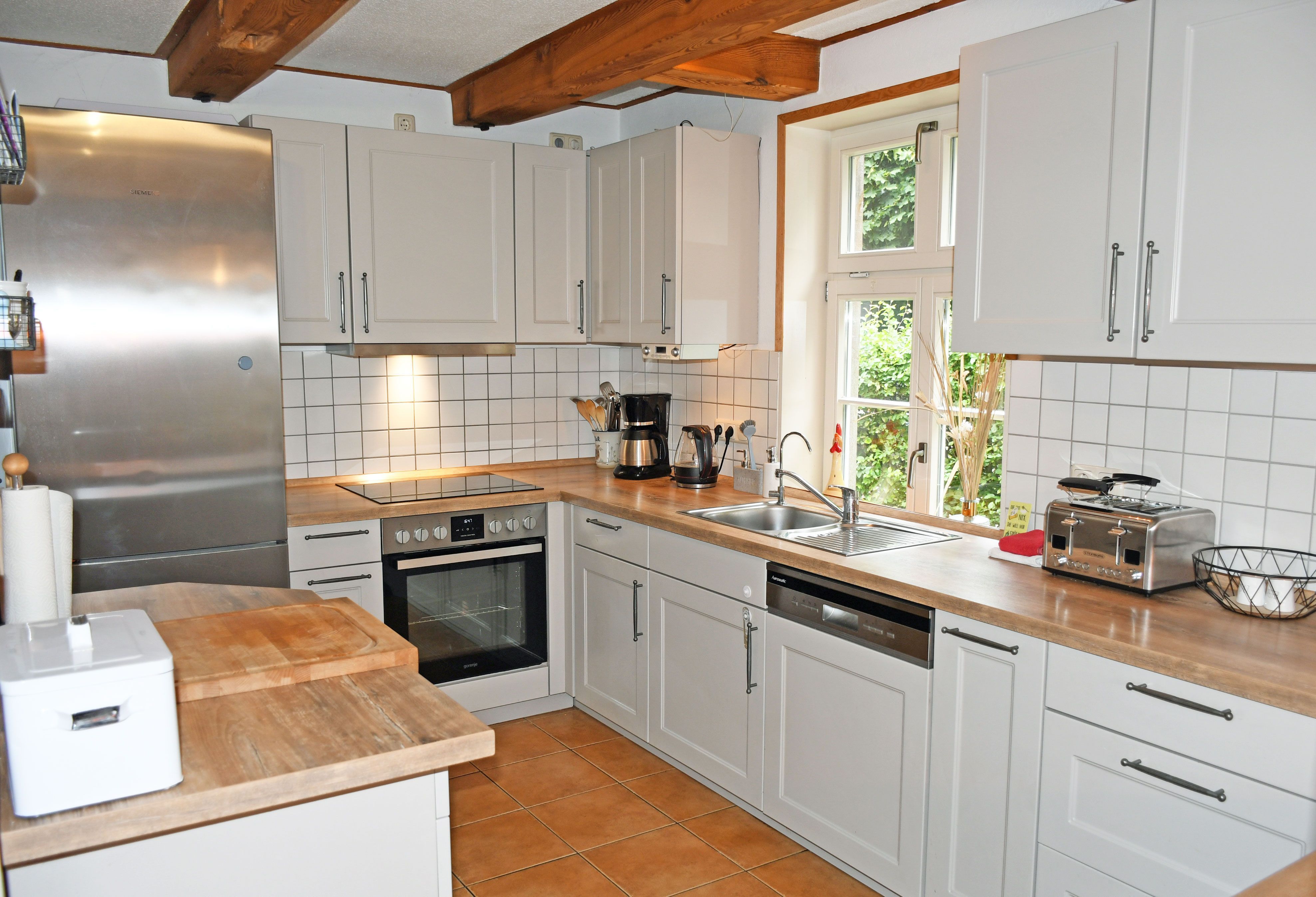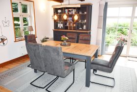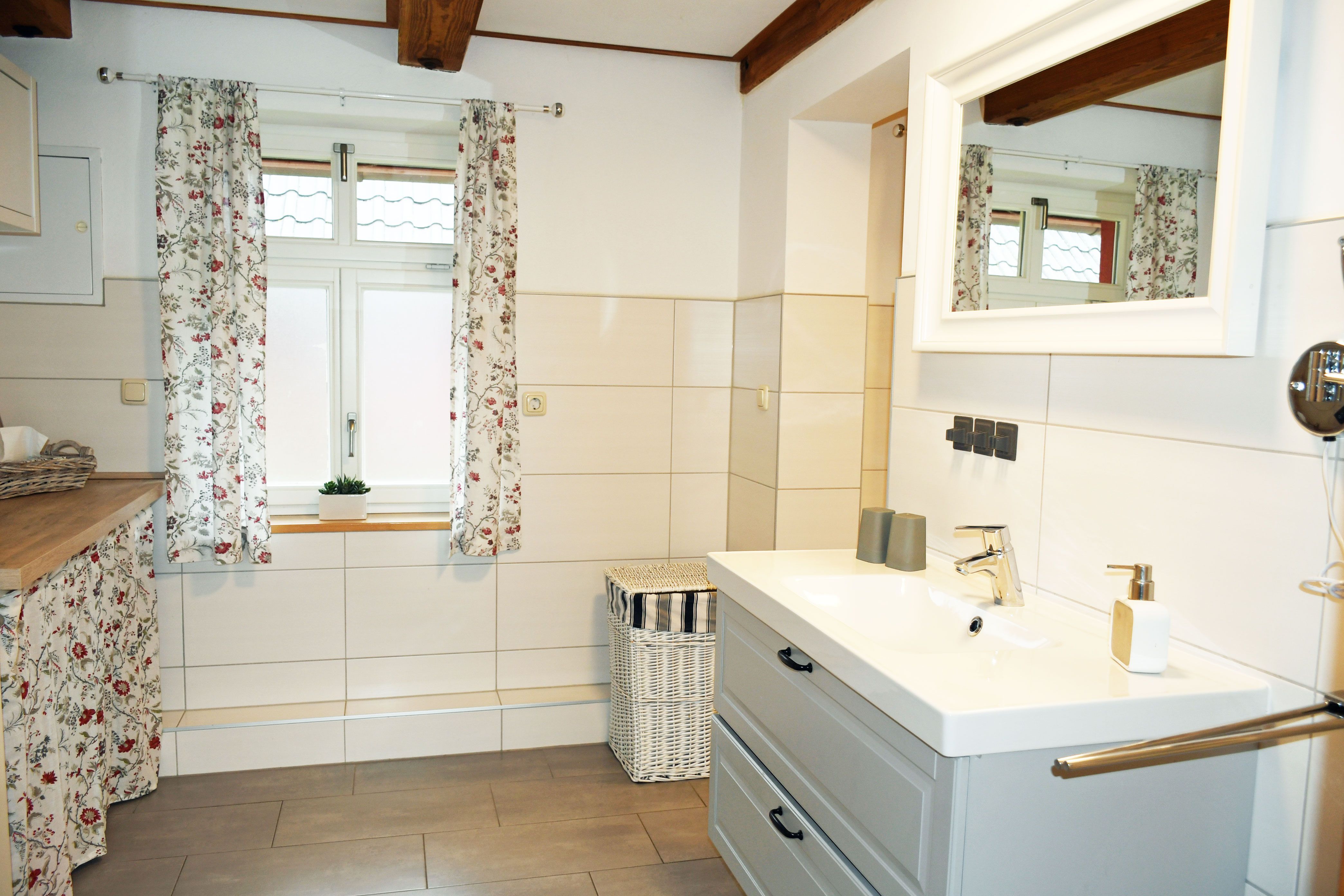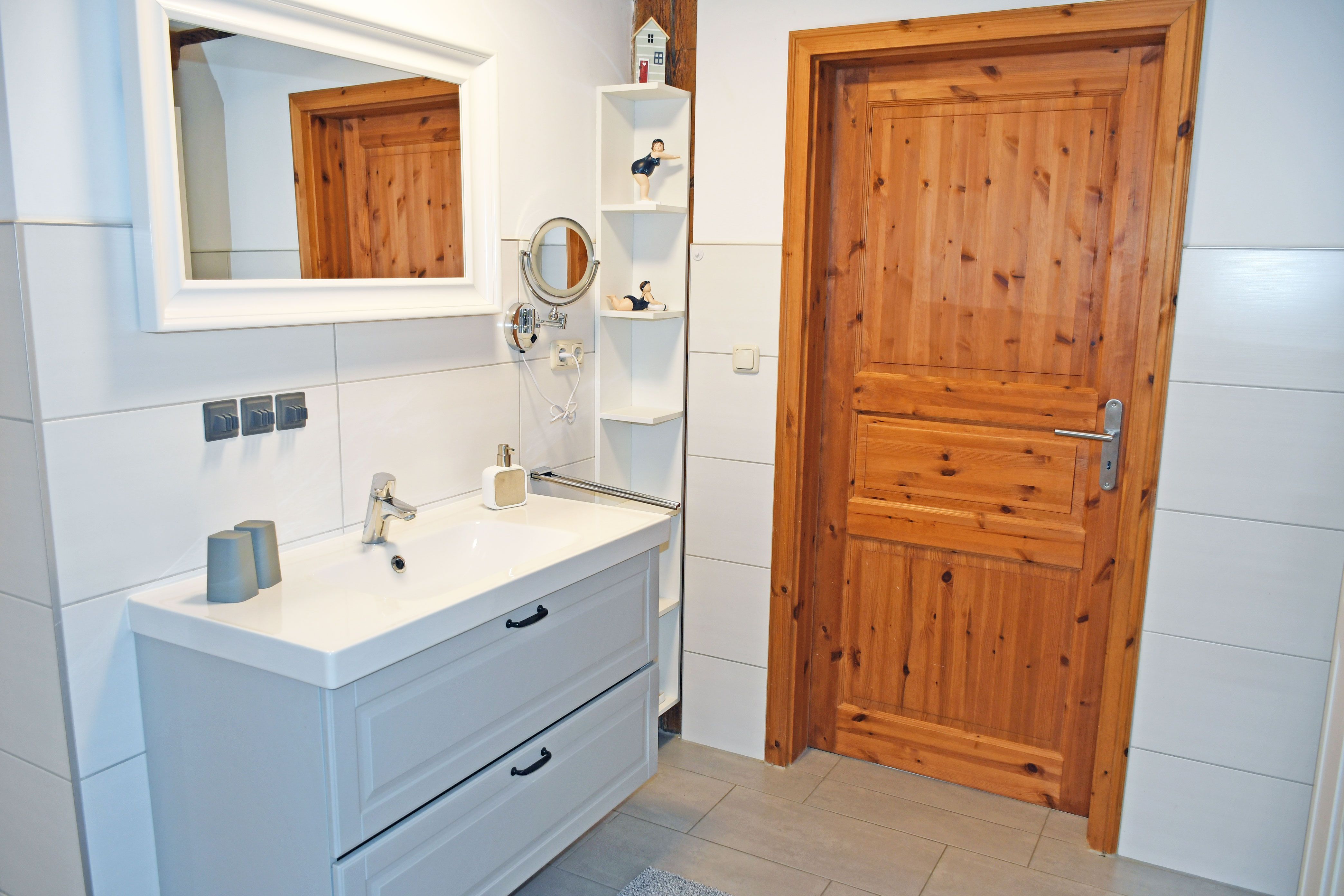 Im unteren Bereich finden sie den Eingangsbereich mit der Treppe, eine große Wohnküche mit dem Familienzimmer und das große Duschbad. Alles ist ebenerdig und mit einer Fußbodenheizung ausgestattet. Einen Kamin können sie in den Wintermonaten natürlich auch nutzen. Das Dachgeschoß verfügt über 3 Schlafräume. Zwei sind mit Doppelbetten (1,80 m und 1,60m breit) ausgestattet und eins mit einem Bett (90 x 200 cm), welches auch zu einem Doppelbett ausgezogen werden kann. Ein Kinderbett und ein Hochstuhl stehen kostenfrei zur Verfügung. Im Obergeschoß gibt es außerdem ein Bad mit Wanne.
