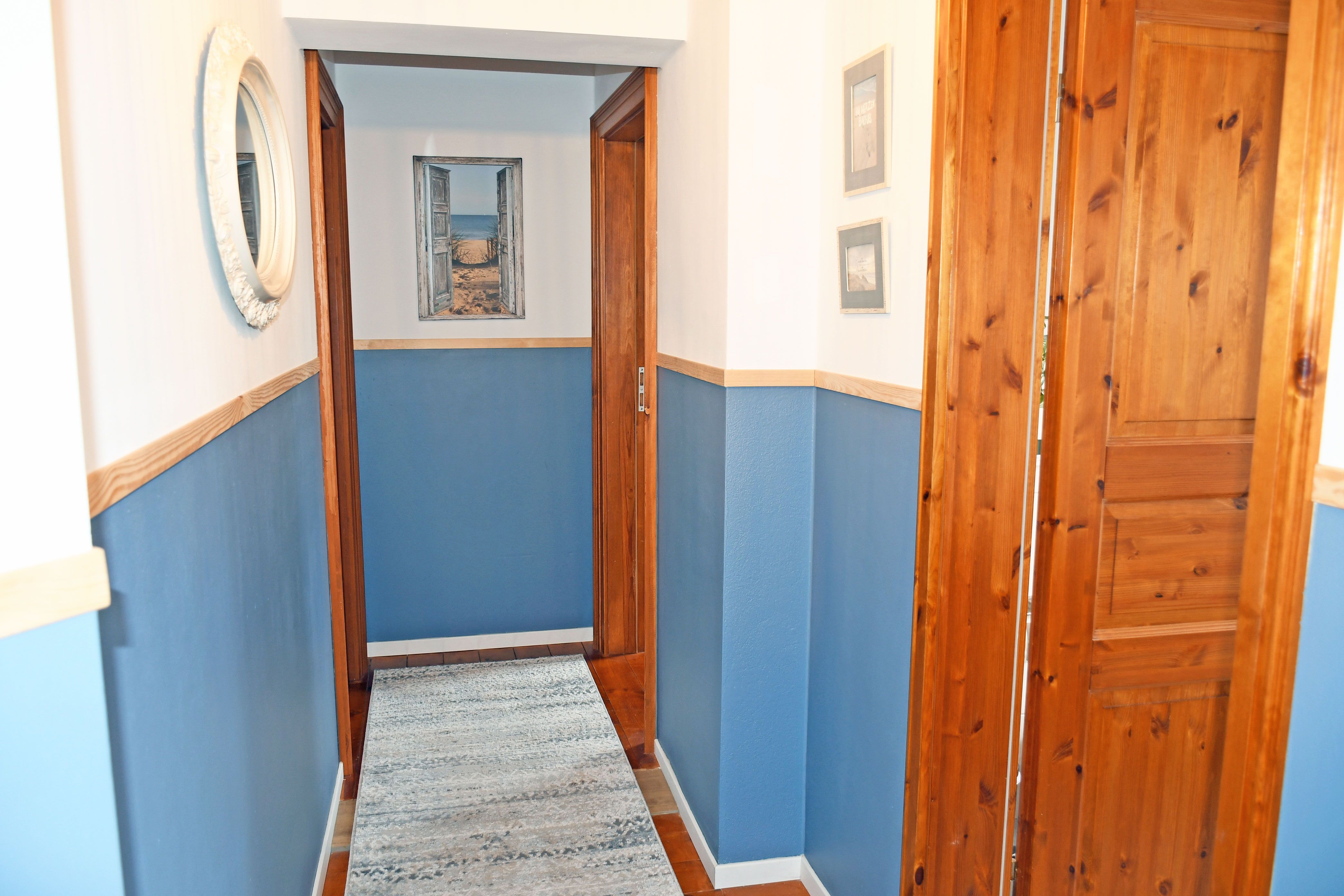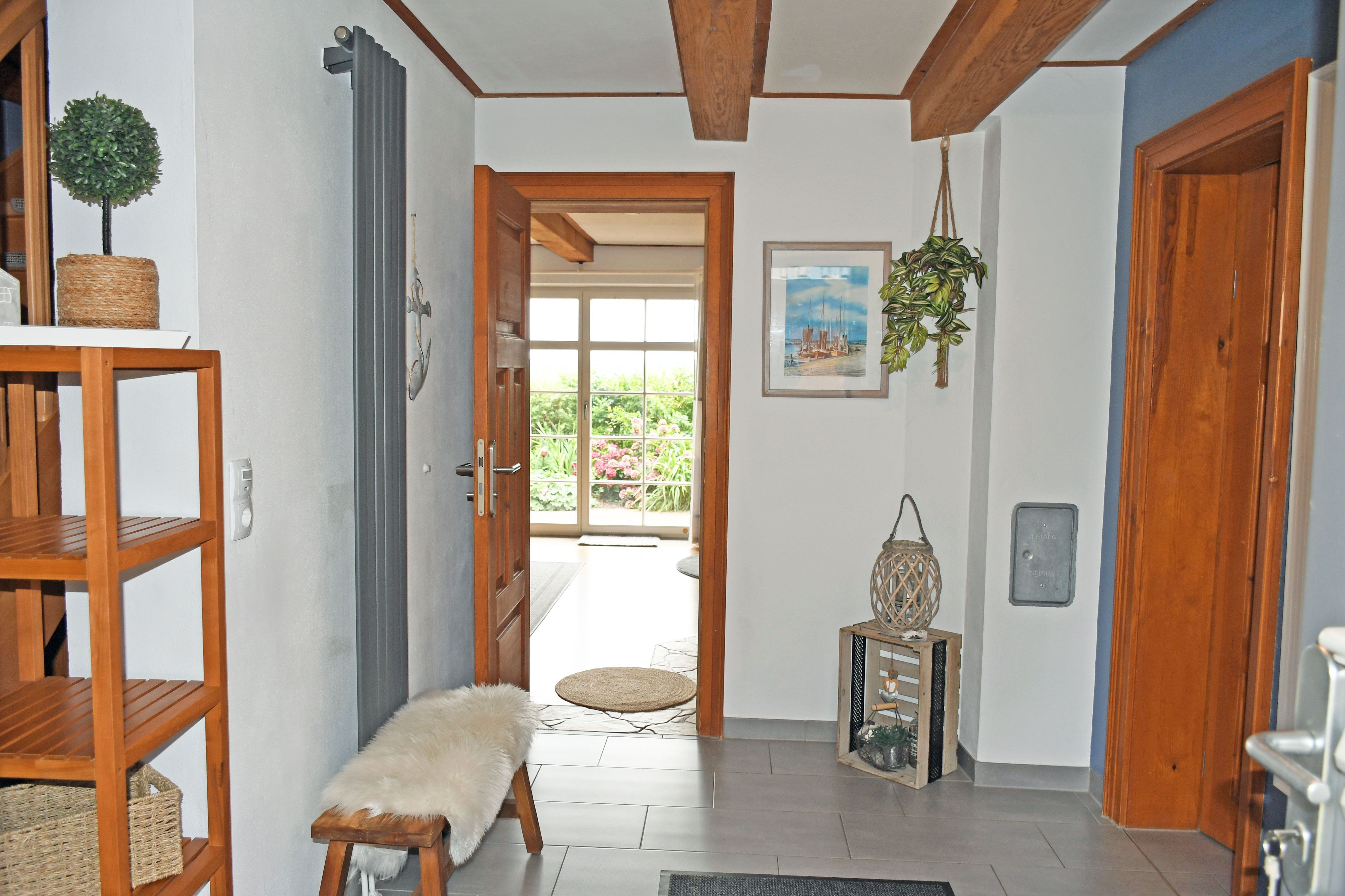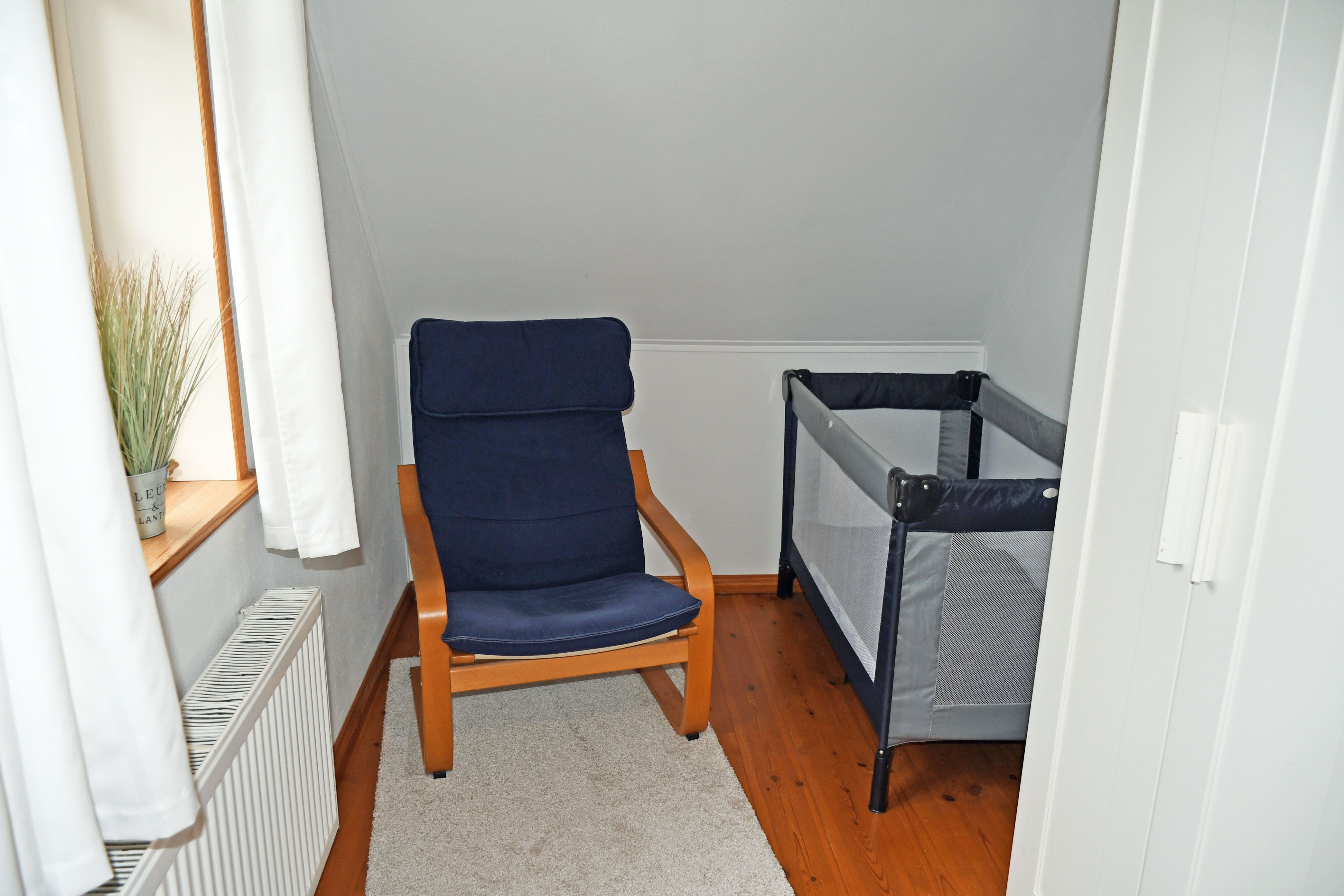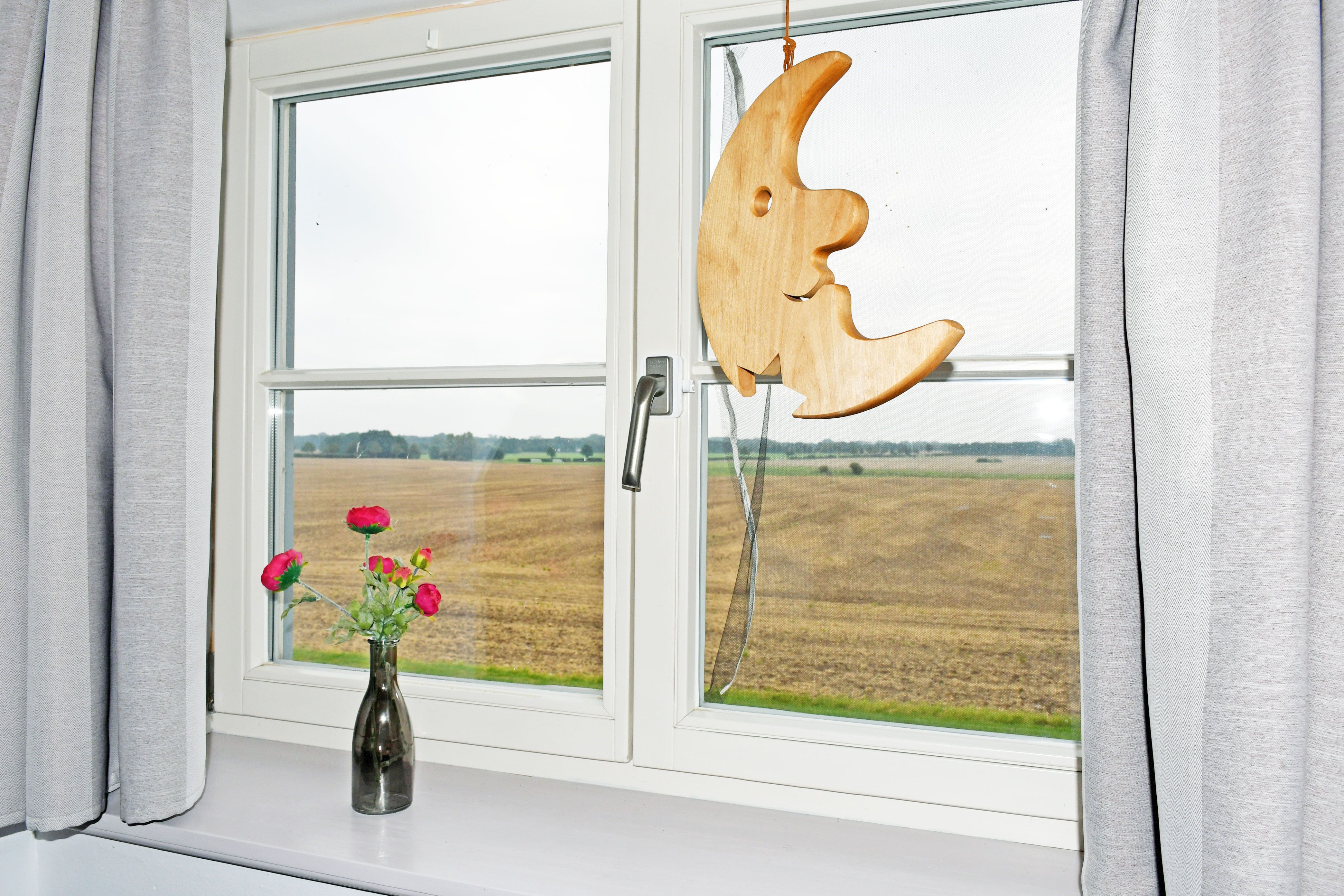Die Treppe zum Obergeschoss hat eine Kindersicherung und die Fenster verfügen über Insektenschutz.