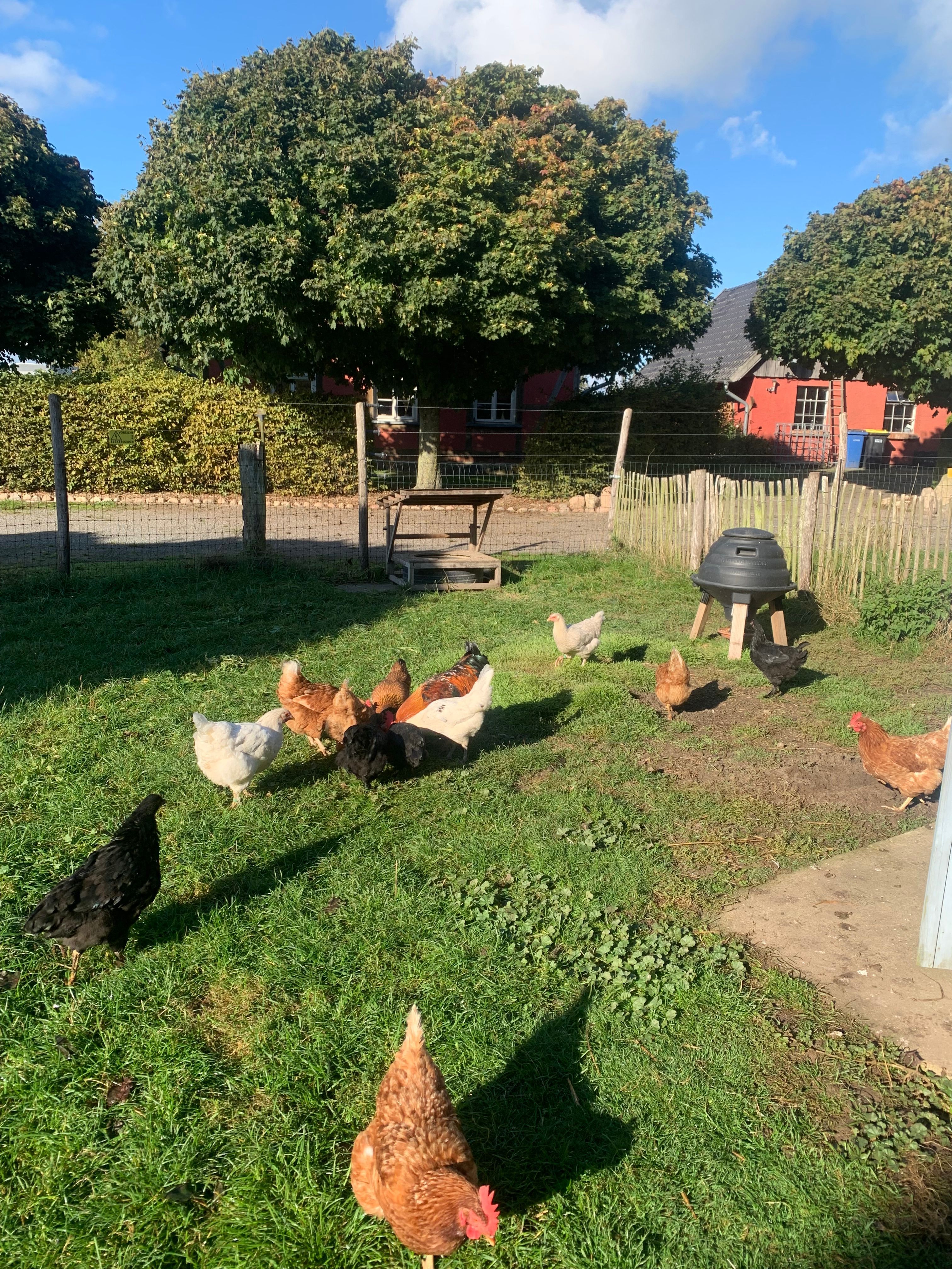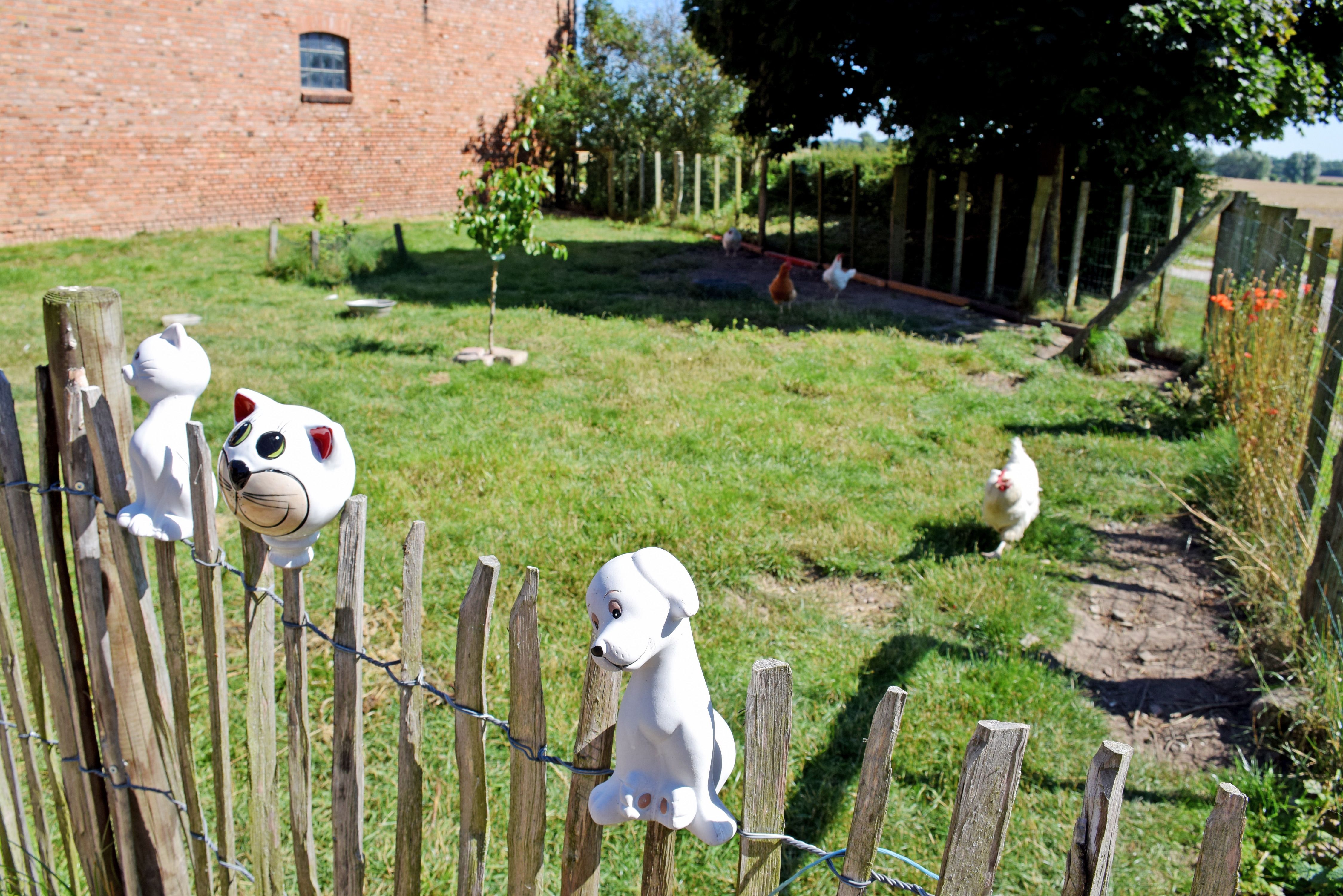 Im hinteren Bereich des Gartens gibt es eine kleine Spielecke, wir haben auch einen kleinen Streichelzoo mit Hühnern, niedlichen Kaninchen und dem Dackel Paule. Gern können wir Ihnen, je nach Vorrat, frische Eier zum Frühstück verkaufen.
