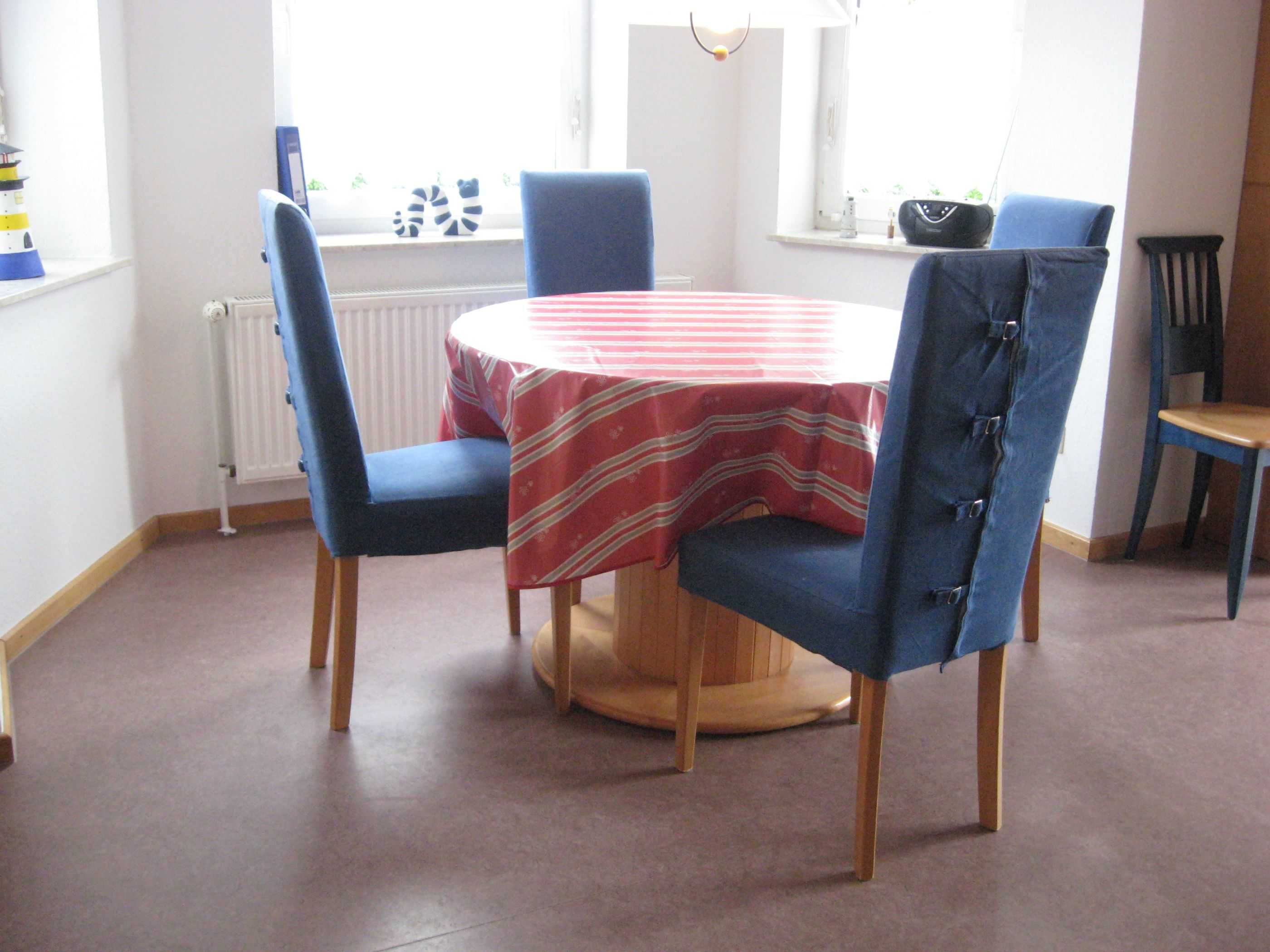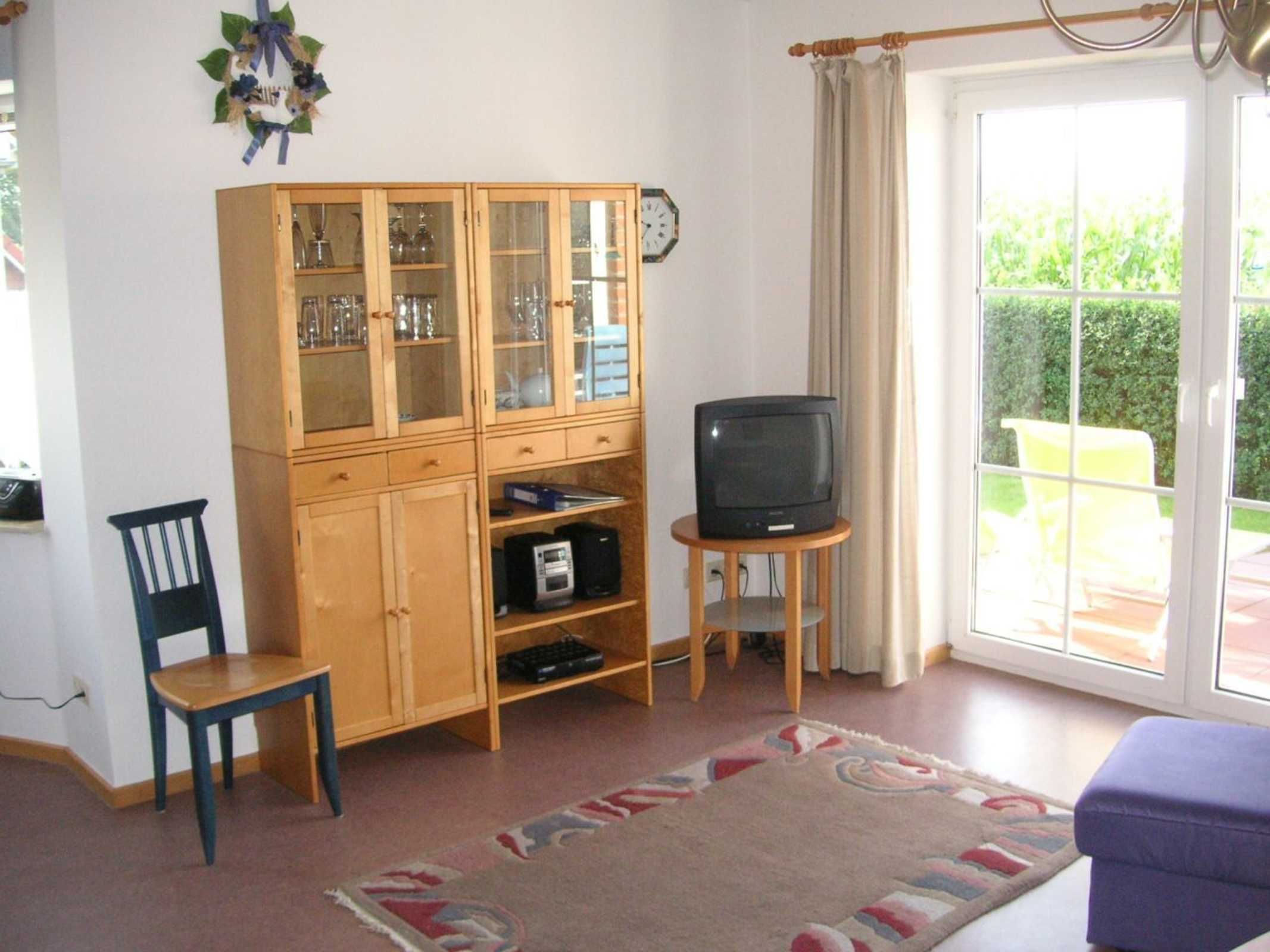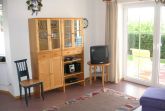 Wohnbereich im Erdgeschoss mit gemütlicher Rundpolstersitzecke, Fernseher mit Sat-Empfang, Radio, CD-Player, Ausgang zur Südterrasse und Garten. Küchen- und Essbereich mit Küchenzeile inkl. Inventar, Herd, Backofen, Geschirrspüler, Kaffeemaschine, Toaster und ausziehbarem Esstisch. Schlafbereich 1: Doppelbett mit großem Schrank, Kinderbett, Wickeltisch; Schlafbereich 2: Doppelbett mit Schrank; Schlafbereich 3 im Dachgeschoss: mit 2 Einzelbetten über eine Raumspartreppe erreichbar. Linolium Fussböden in allen Räumen, außer Bad und WC Bereich und Schlafbereich 3, dort Teppichbelag.