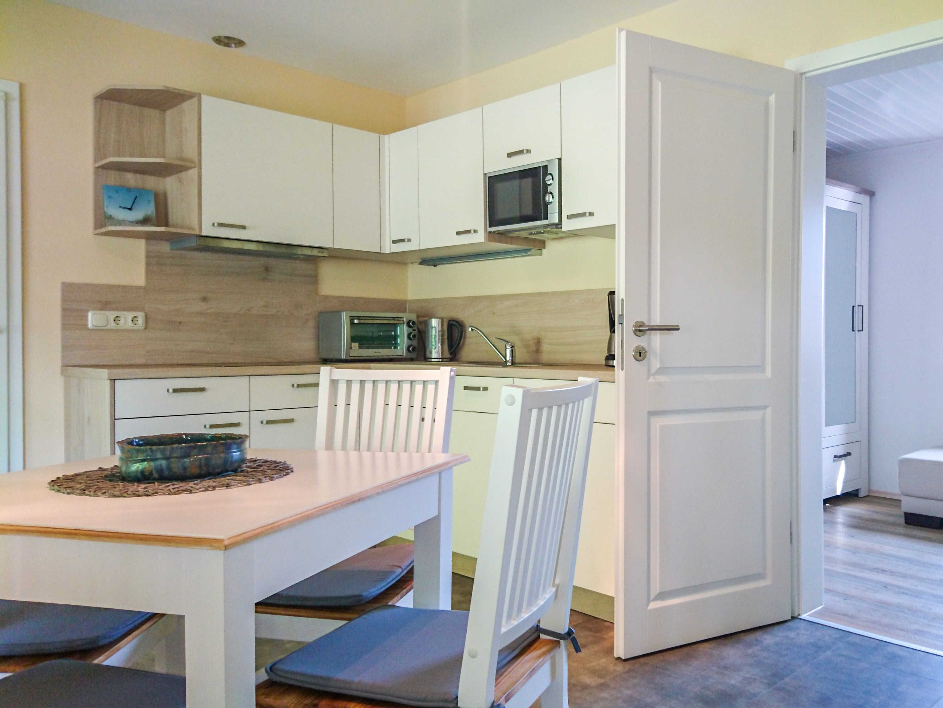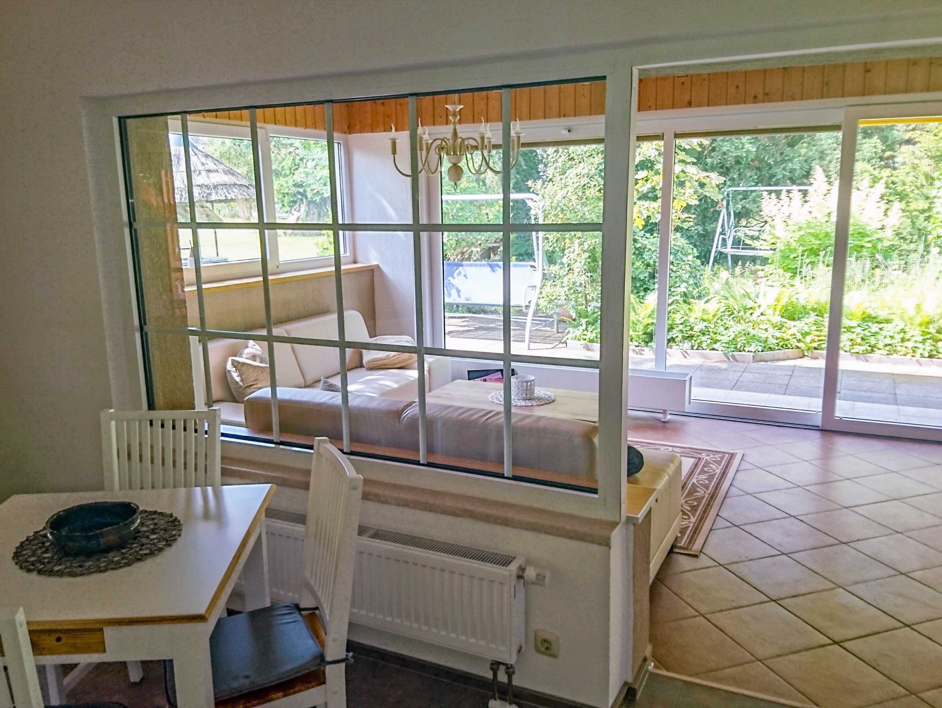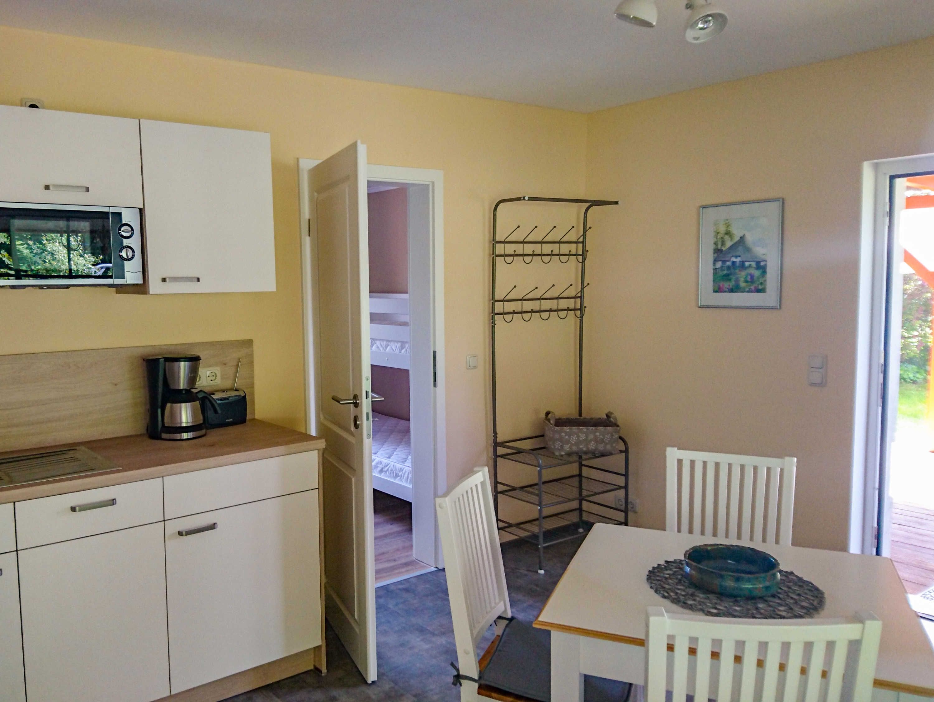 Das ebenerdige Ferienhaus verfügt über ein großes Wohnzimmer mit Deko-Kamin, SAT-TV, zwei separate Schlafzimmer (ein Schlafraum mit 2 Betten (90x200cm) und ein Schlafraum mit Etagenbett (90x200cm)), eine komplett ausgestattete Küche mit Herd, Geschirrspüler, Minibackofen, Mikrowelle, Kühlschrank mit Gefrierfach, Wasserkocher und Toaster sowie ein Bad mit Dusche, WC und Haartrockner.