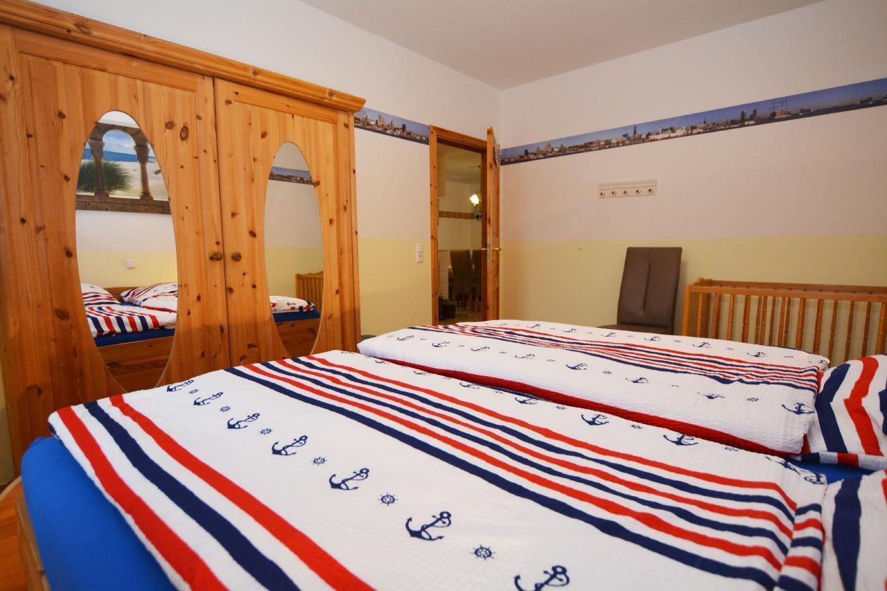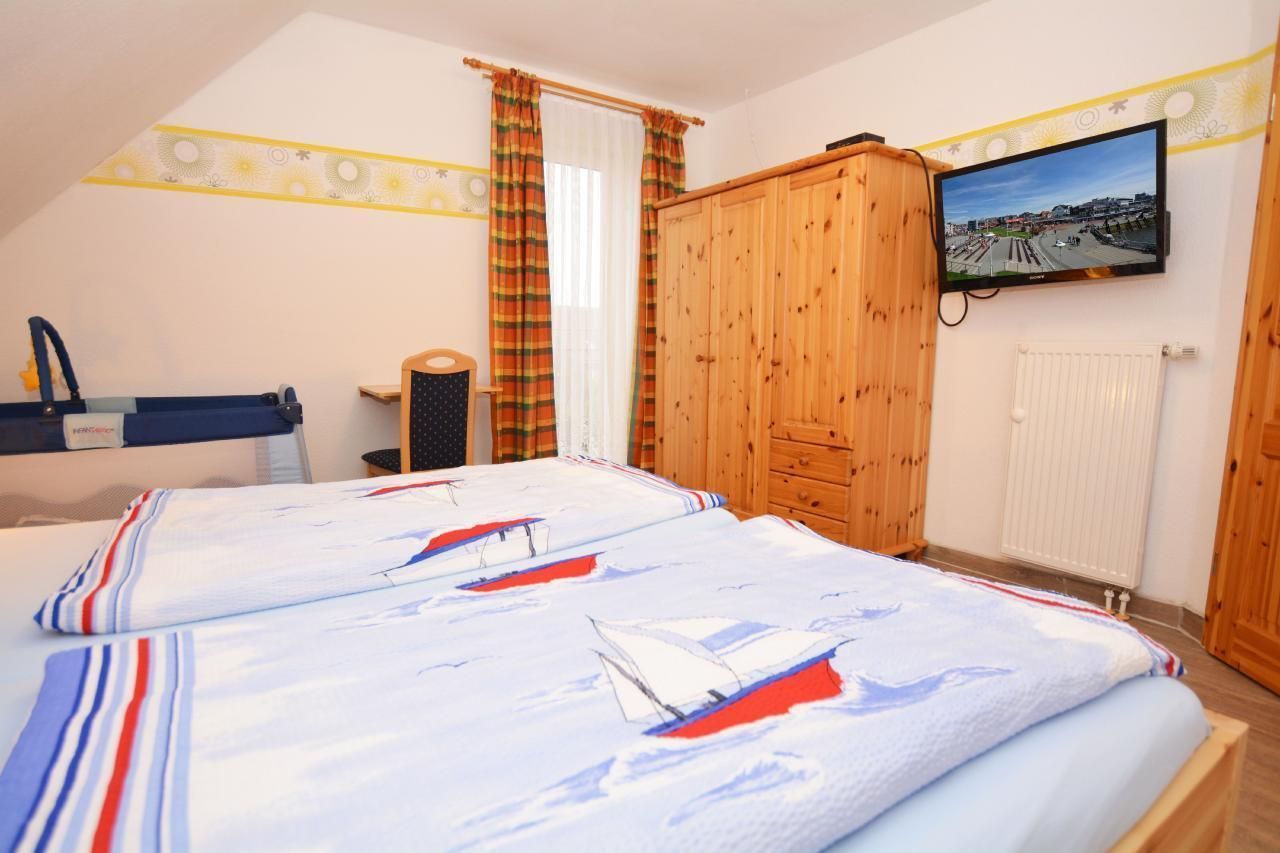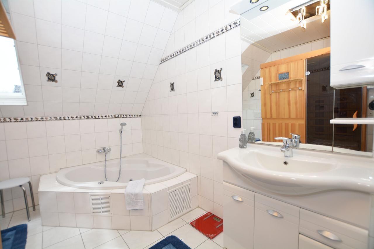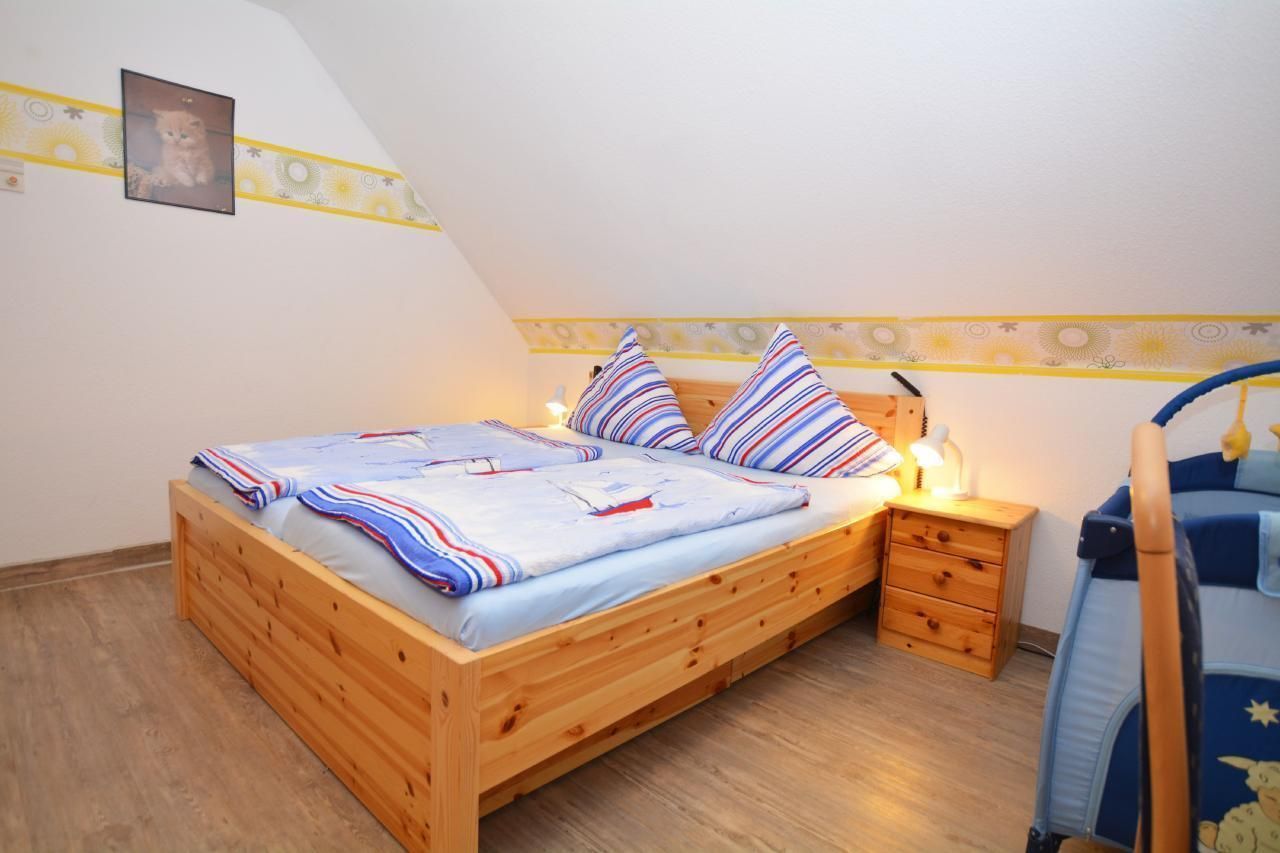Das Haus Lütt Holland liegt in einer ruhigen Wohngegend. Die Doppelhaushälfte ist 110qm groß und übersteckt sich über 2 Etagen. Der Wohnbereich hat Südlage mit Ausgang zur überdachten Terrasse, die mit Gartenmöbeln ausgestattet ist. Das Haus hat 4 Schlafzimmer mit je einem Doppelbett. Die Küche ist mit einem Ceranfeld, Mikrowelle, Wasserkocher, Kaffeemaschine, Toaster, Geschirrspülmaschine, Kühlschrank und einem Gefrierschrank ausgestattet. Im Hauswirtschaftsraum sind eine Waschmaschine, ein Bügelbrett und ein Bügeleisen vorhanden. Im Erdgheschoß befindet sich ein Bad mit WC, einem Waschplatz und einer Dusche.Das Bad im Obergeschoss ist mit einem WC, einem Waschplatz, einer Dusche, einem Whirpool, sowie einer Infrarotwärmekabine ausgestattet. Im Garten befindet sich eine Gartenlaube mit Bollerwagen. Ein Kinderbett und ein Hochstuhl sind vorhanden. Es stehen 3 Parkplätze am Haus zur Verfügung.