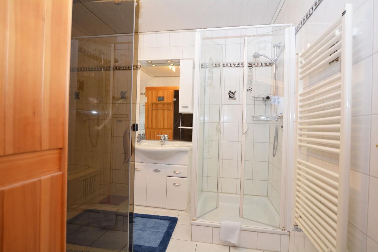 Bad/WC: Dusche; Dusche; Föhn; Föhn; Sauna in der Nähe; Toilette; Toilette; Toilette; Waschbecken; Waschbecken