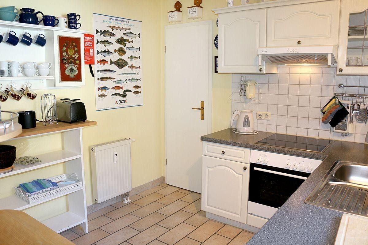 Auf 2 Ebenen bietet die Wohnung insgesamt 80 m² Wohnfläche. Im Obergeschoss finden Sie das gemütliche Wohnzimmer mit SAT-TV, Radio und Couch, sowie die große und eine sehr gut ausgestattete Küchenecke mit Herd, Backofen, Geschirrspüler. In einer kleinen Abstellkammer befindet sich ein zweiter Kühlschrank und eine Mikrowelle. Ebenfalls auf dieser Etage befindet sich ein Schlafzimmer mit Doppelbett und Schrank. Vom Wohnzimmer aus gelangen Sie auf den Balkon (Morgensonne). Im großen Bad gibt es Dusche, WC und eine Waschmaschine.