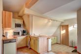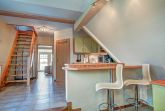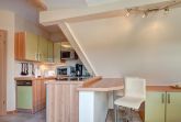 Die Küche ist eingerichtet, mit Backofen und Cerankochfeld, Geschirrspüler, Kühlschrank, Mikrowelle, Kaffeemaschine, Toaster und Wasserkocher. Ein eingebauter Tresen mit 2 Barhockern eröffnet die Möglichkeit eines gemütlichen Drinks.