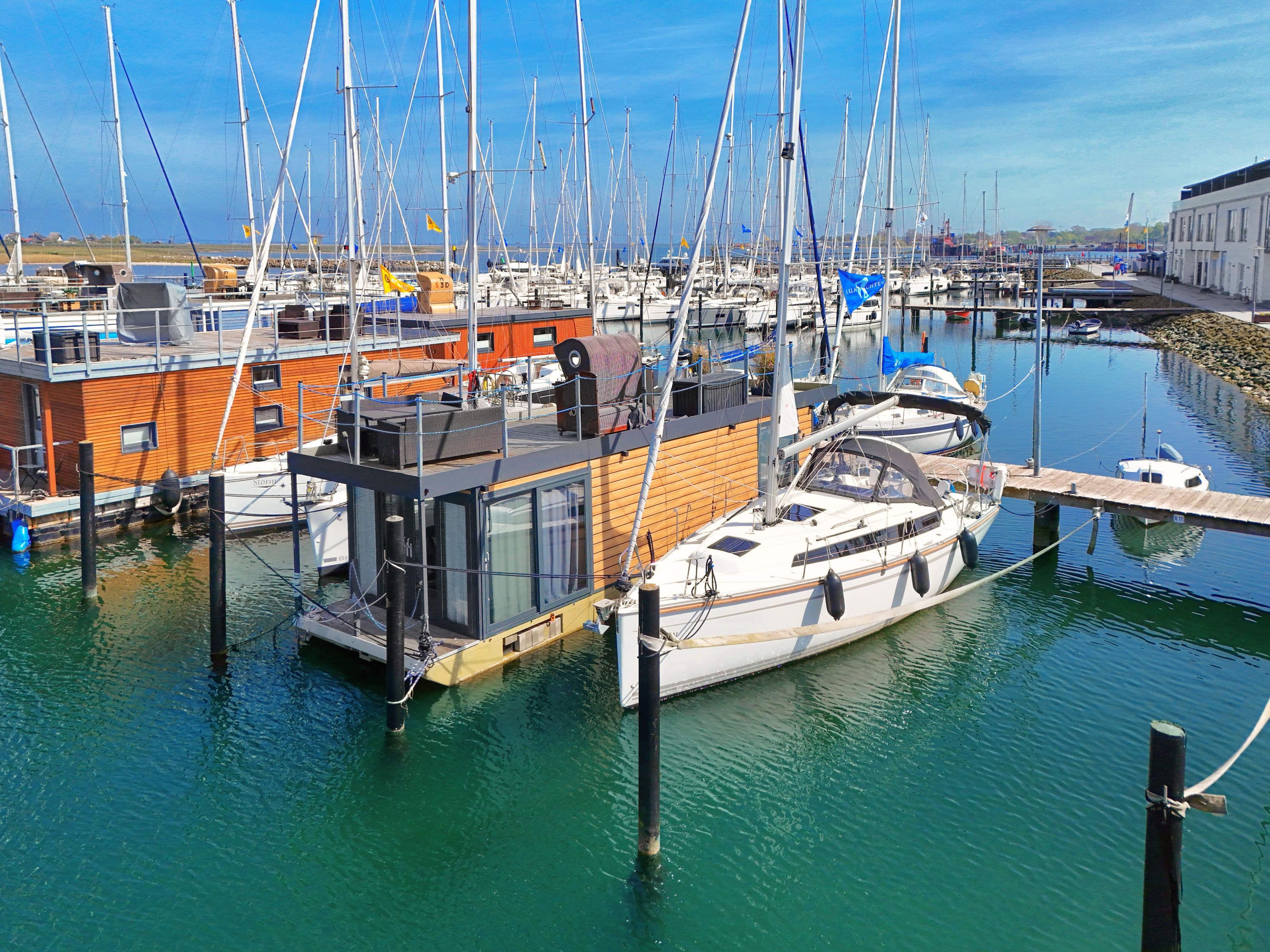 Das Hausboot Meeresbrise...Urlaub direkt im Jachthafen Heiligenhafen und Blick aufs oder ins Wasser!