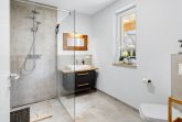 Das Highlight des Hauses liegt ebenfalls hier oben: das wunderschöne Bad mit Sauna. Großzügig, hell, ein Ort zum Entspannen. Während die Hitze wohltut, schweift der Blick über die Reetdächer der Umgebung - ein Gefühl von Luxus und Weite, ohne laut zu sein.