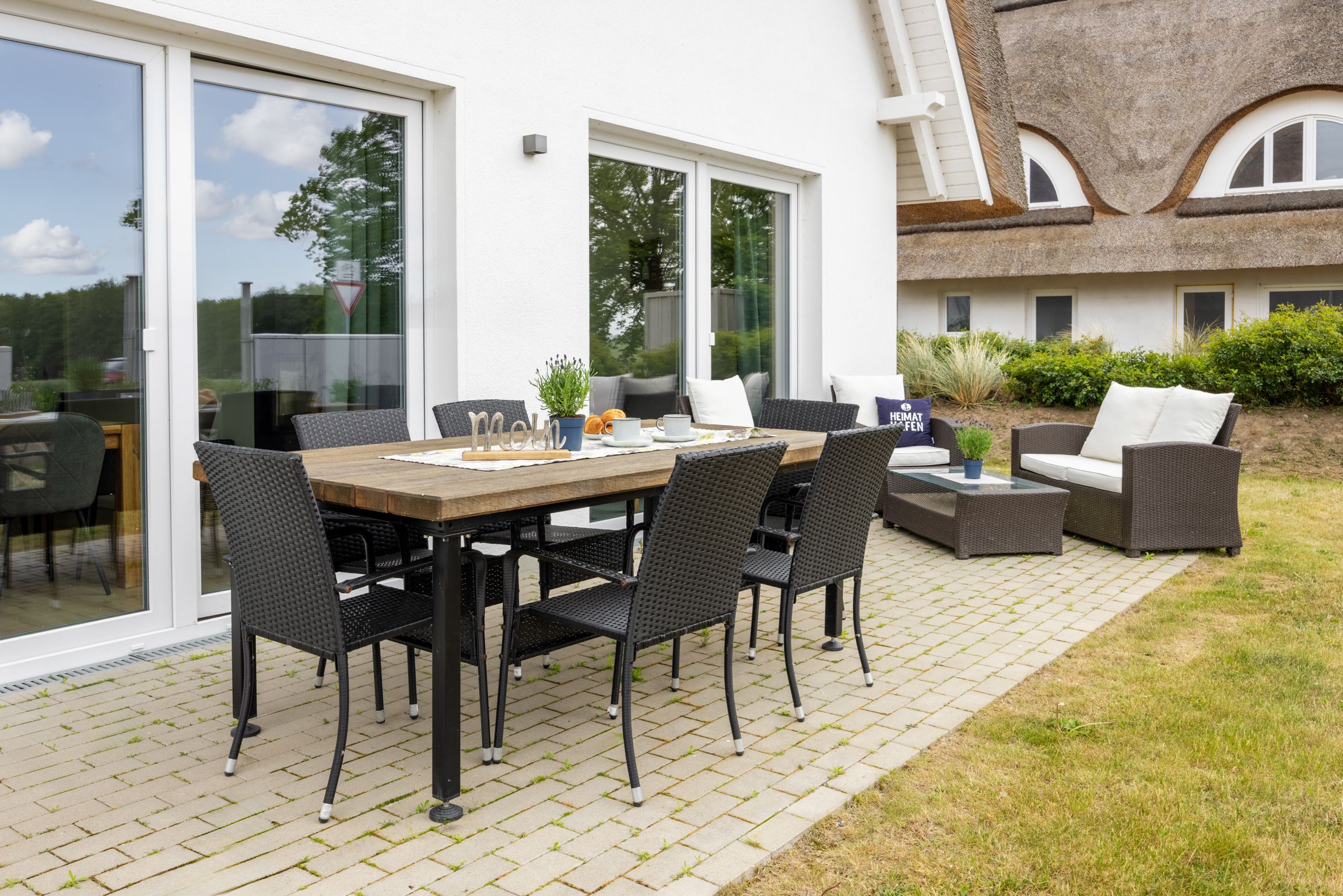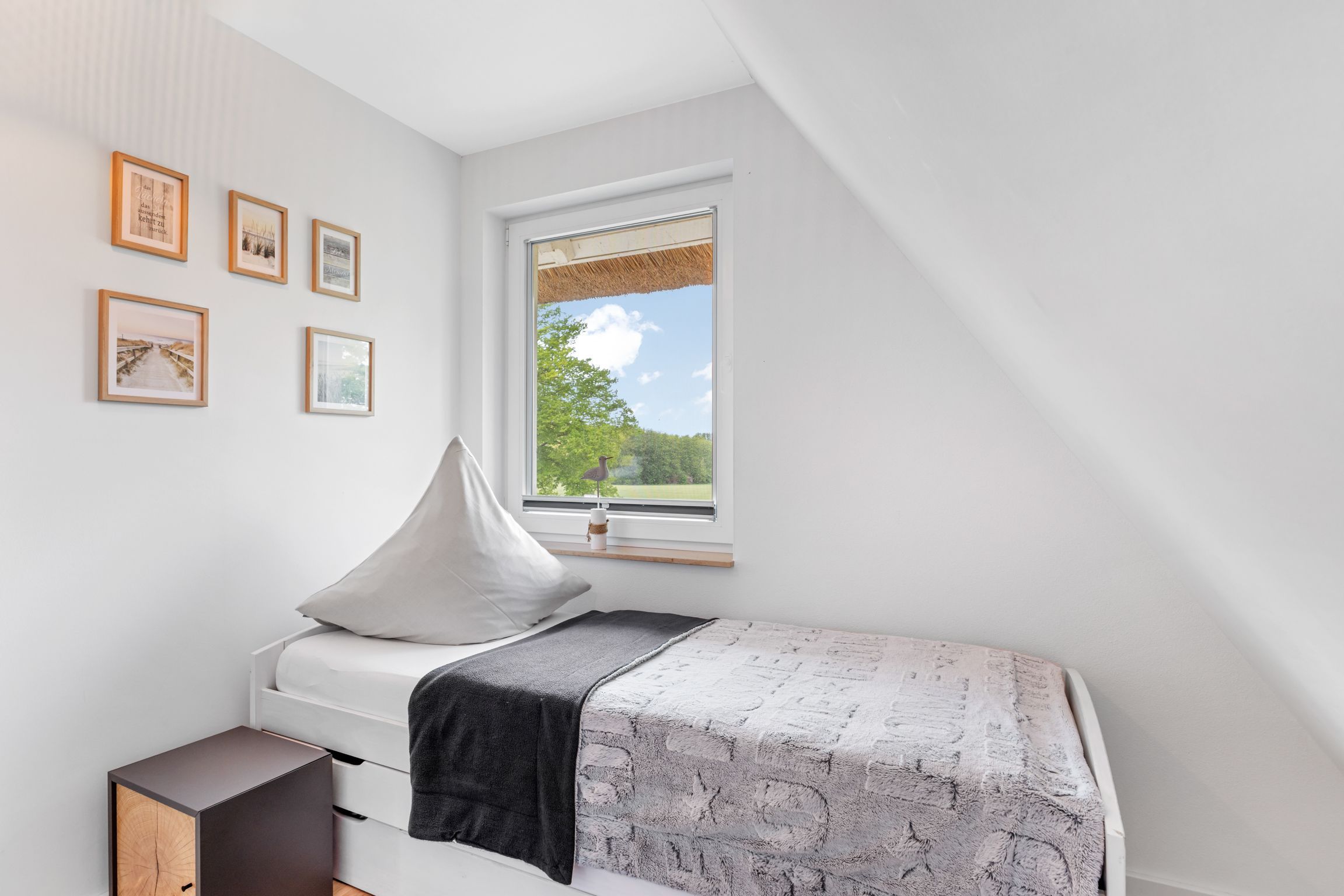 Vier großzügige Schlafzimmer bieten Raum für Familie, Freunde oder beide zugleich. Zwei moderne Bäder sorgen für Komfort, während die hauseigene Sauna mit Blick über die Reetdächer zum Ritual wird - ein Ort, um durchzuatmen und loszulassen.
