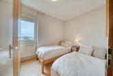 Helles Schlafzimmer mit komfortablem Betten und Fenster mit Ostseeblick