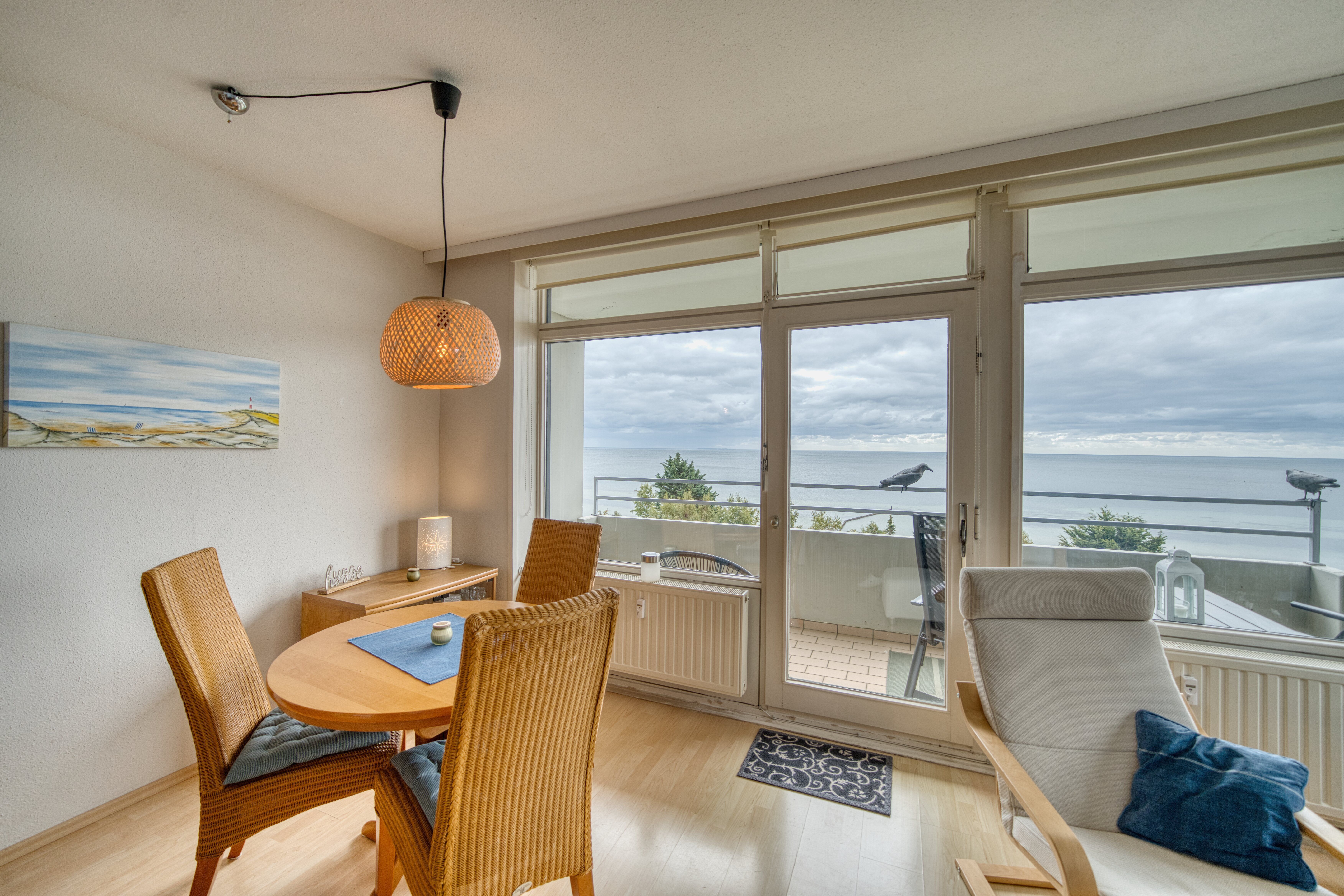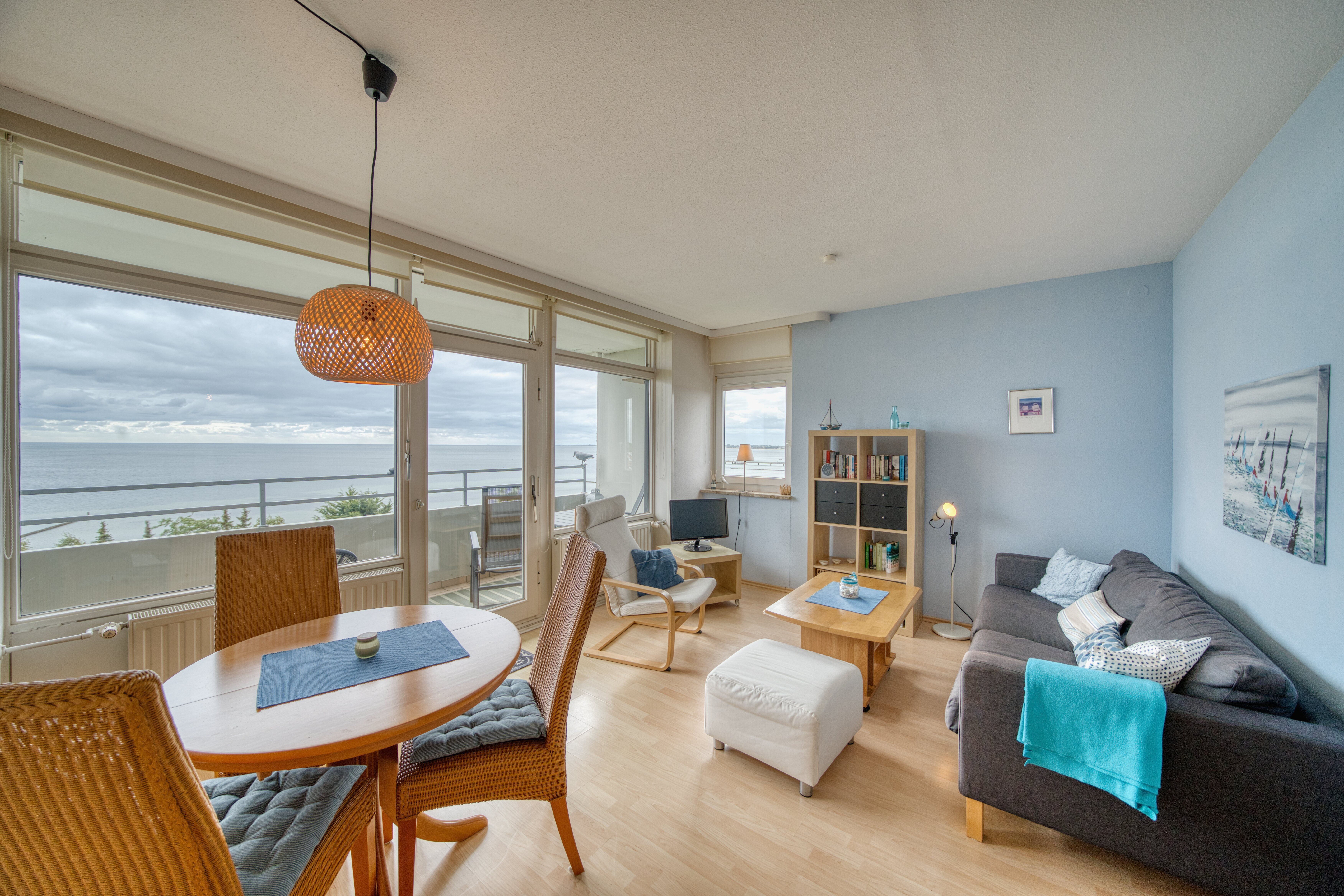 Großzügiger Wohn- und Essbereich mit traumhaftem Südbalkon und Panoramablick auf die Ostsee