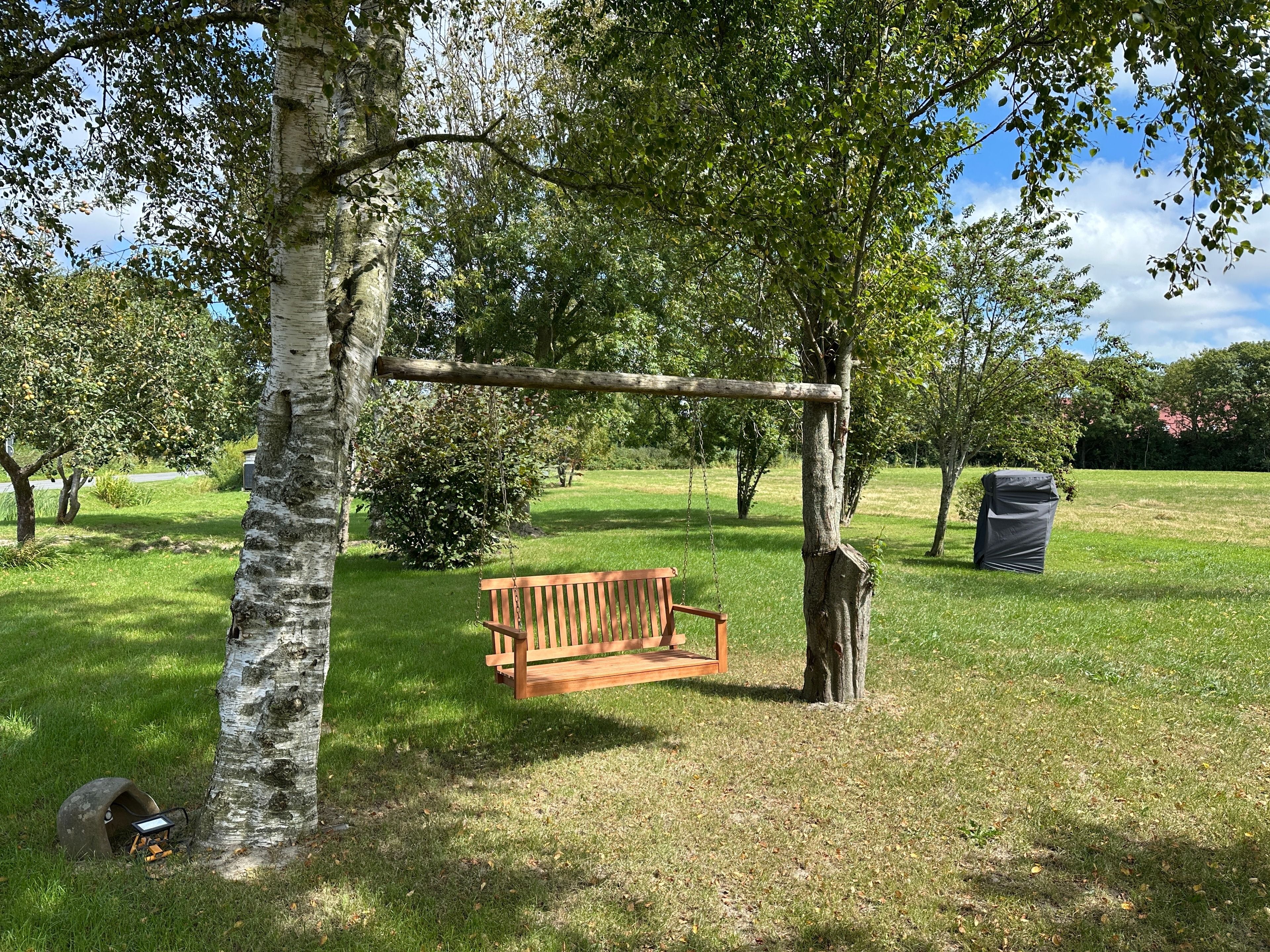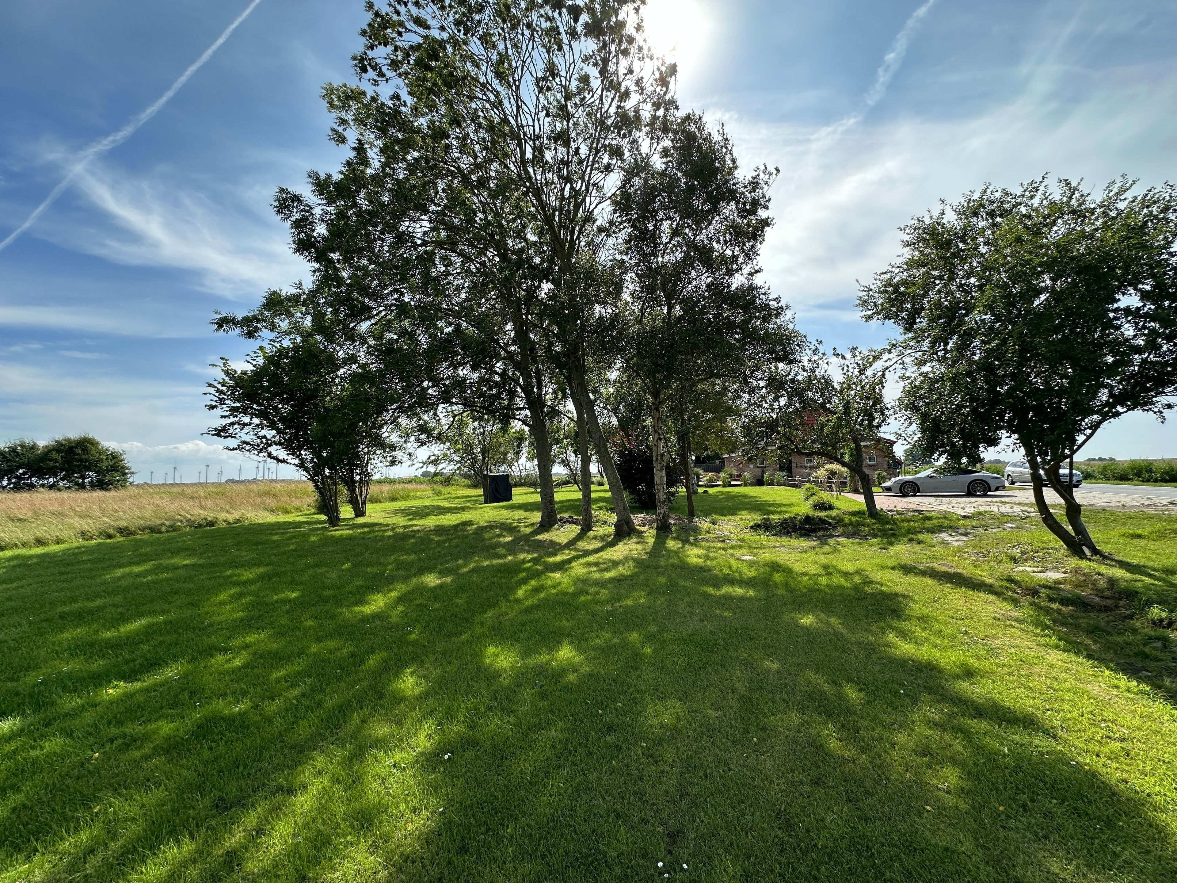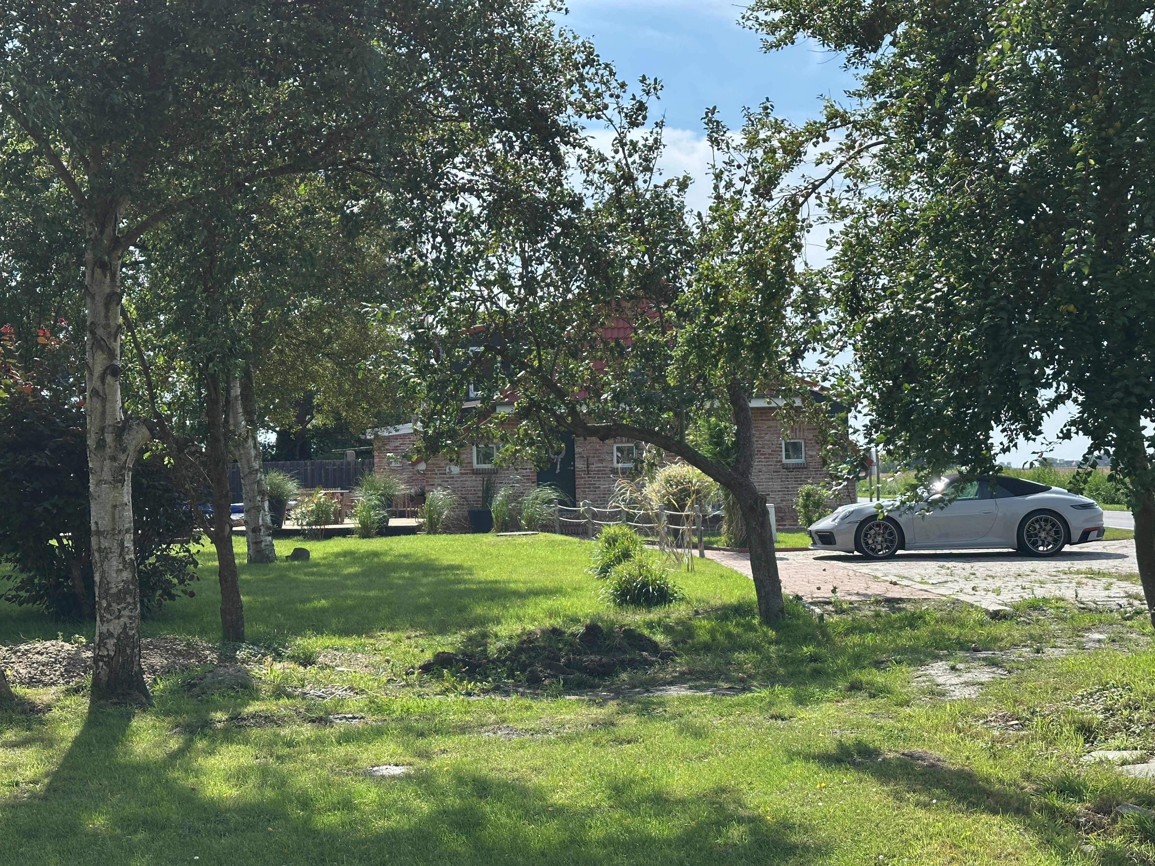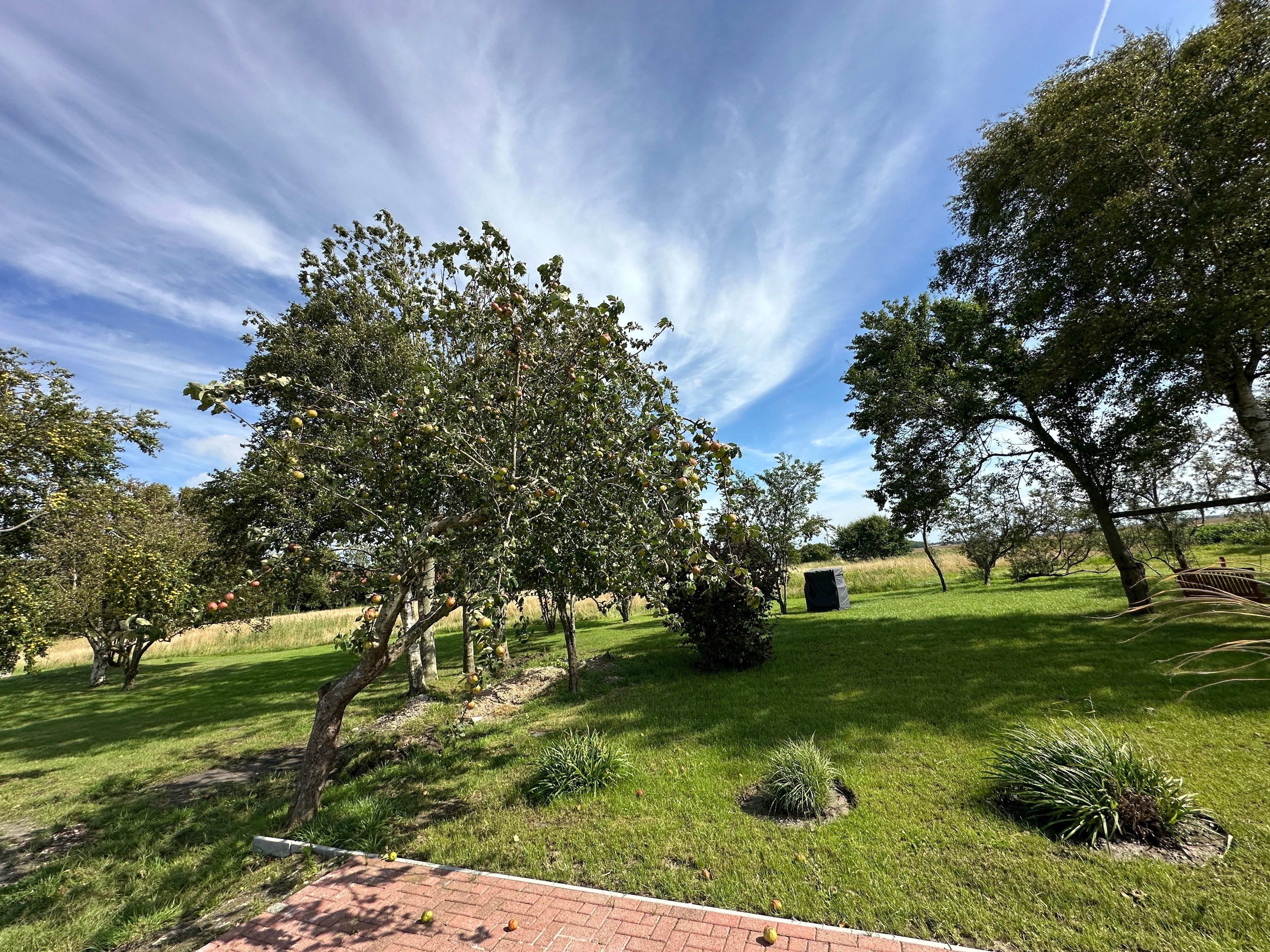 Der Garten ist ca. 2000 qm groß und man hat freien Blick über Felder und Wiesen.