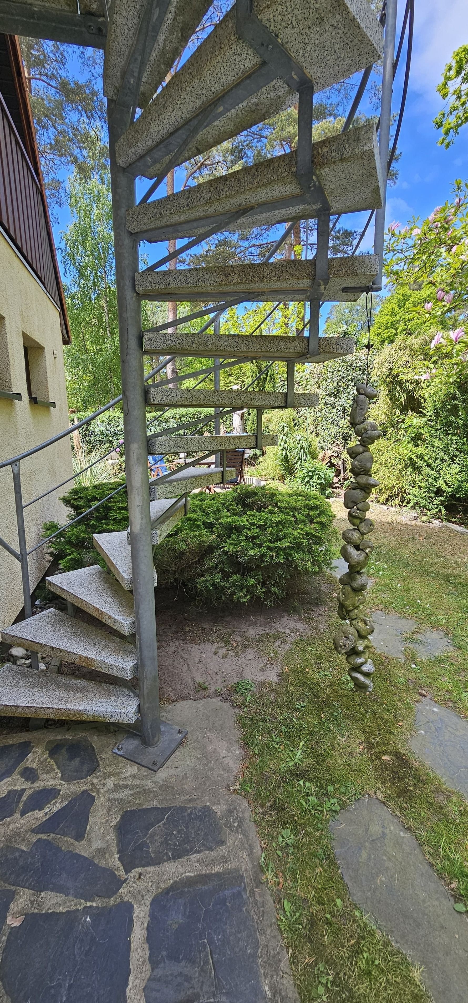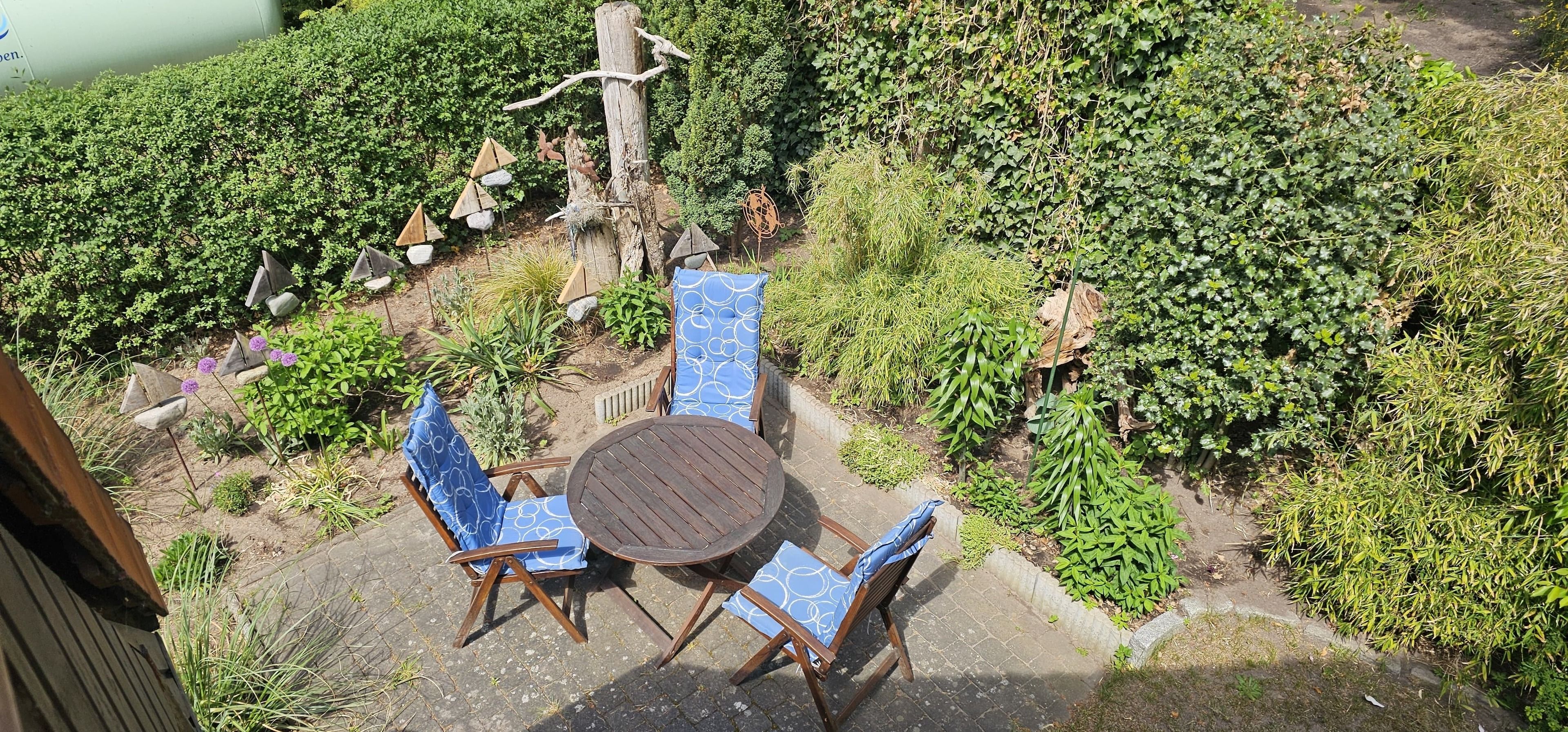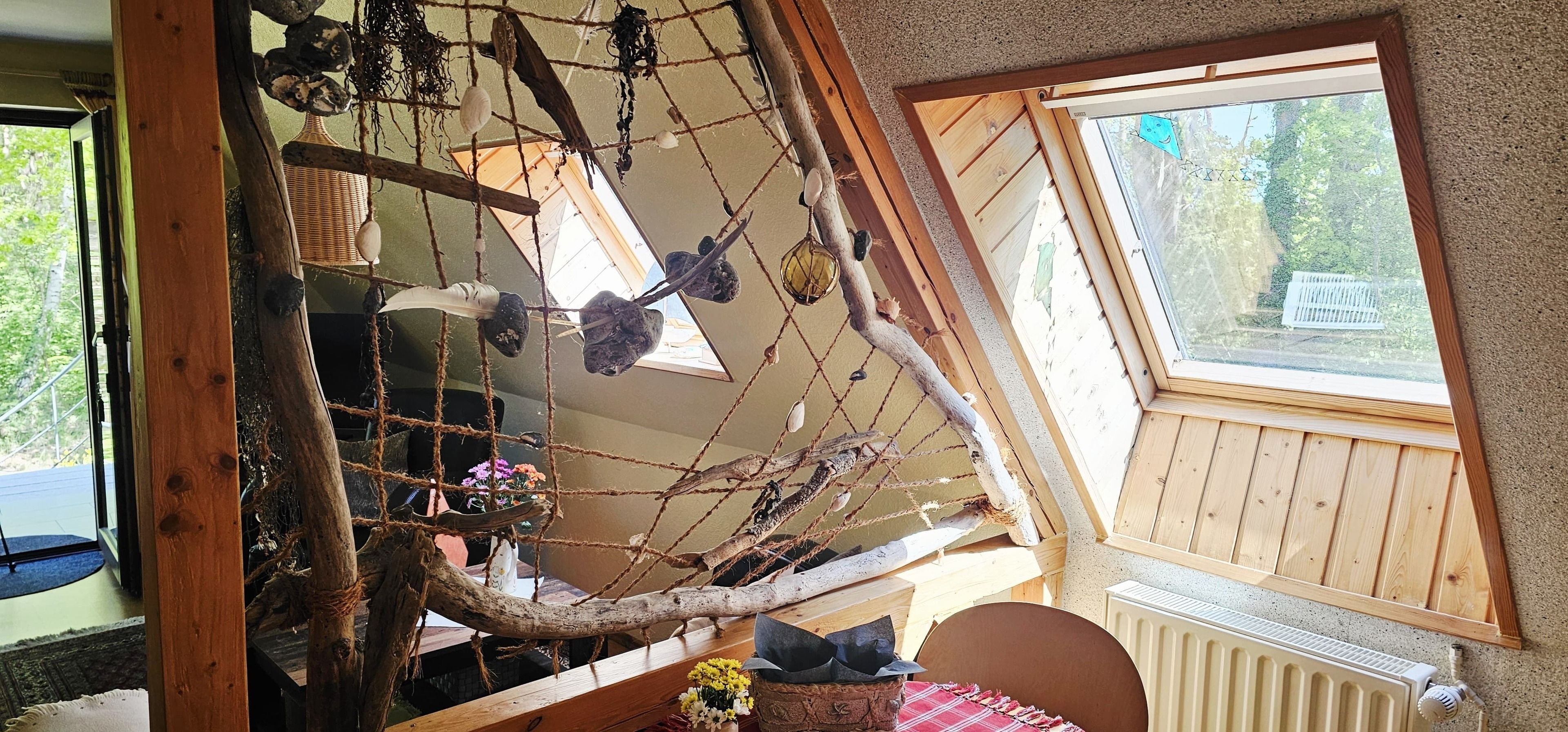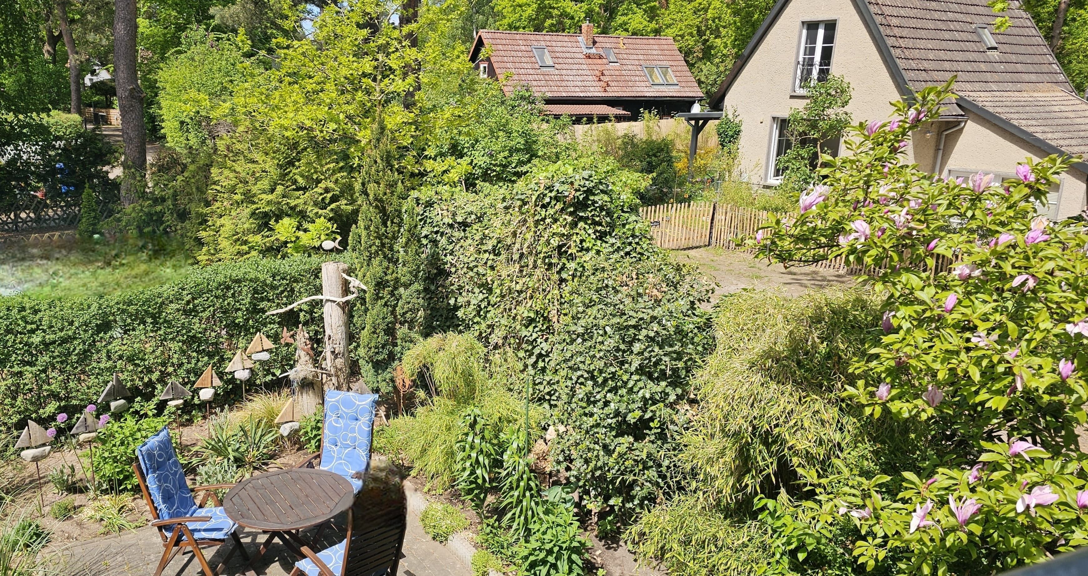 Ihr Feriendomizil befindet sich im Dachgeschoss eines Einfamilienhauses. Über eine charmante Wendeltreppe mit separatem Eingang gelangen Sie in Ihre eigenen vier Wände. Im liebevoll gestalteten Garten laden ruhige Ecken zum Entspannen, Lesen oder Sonnenbaden ein.