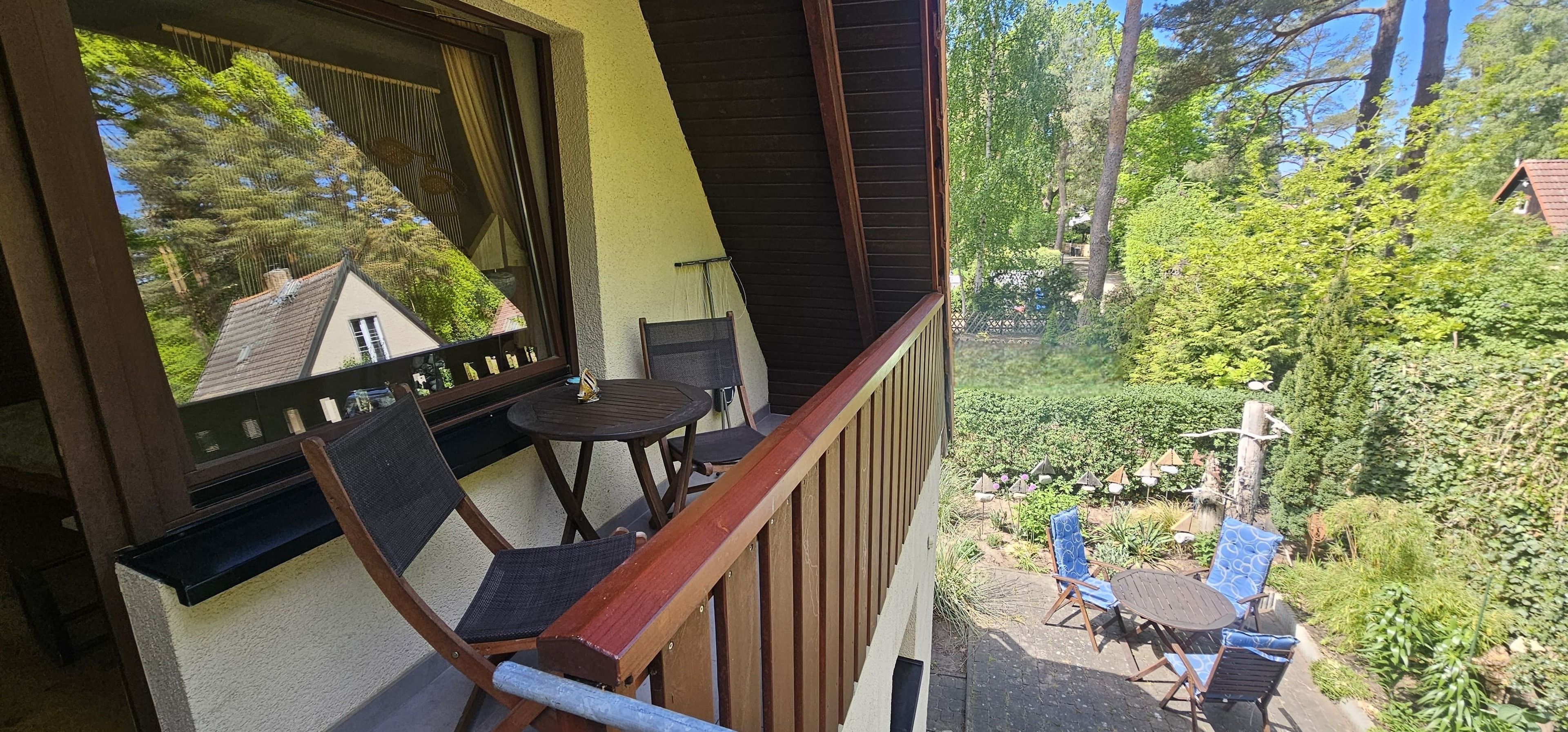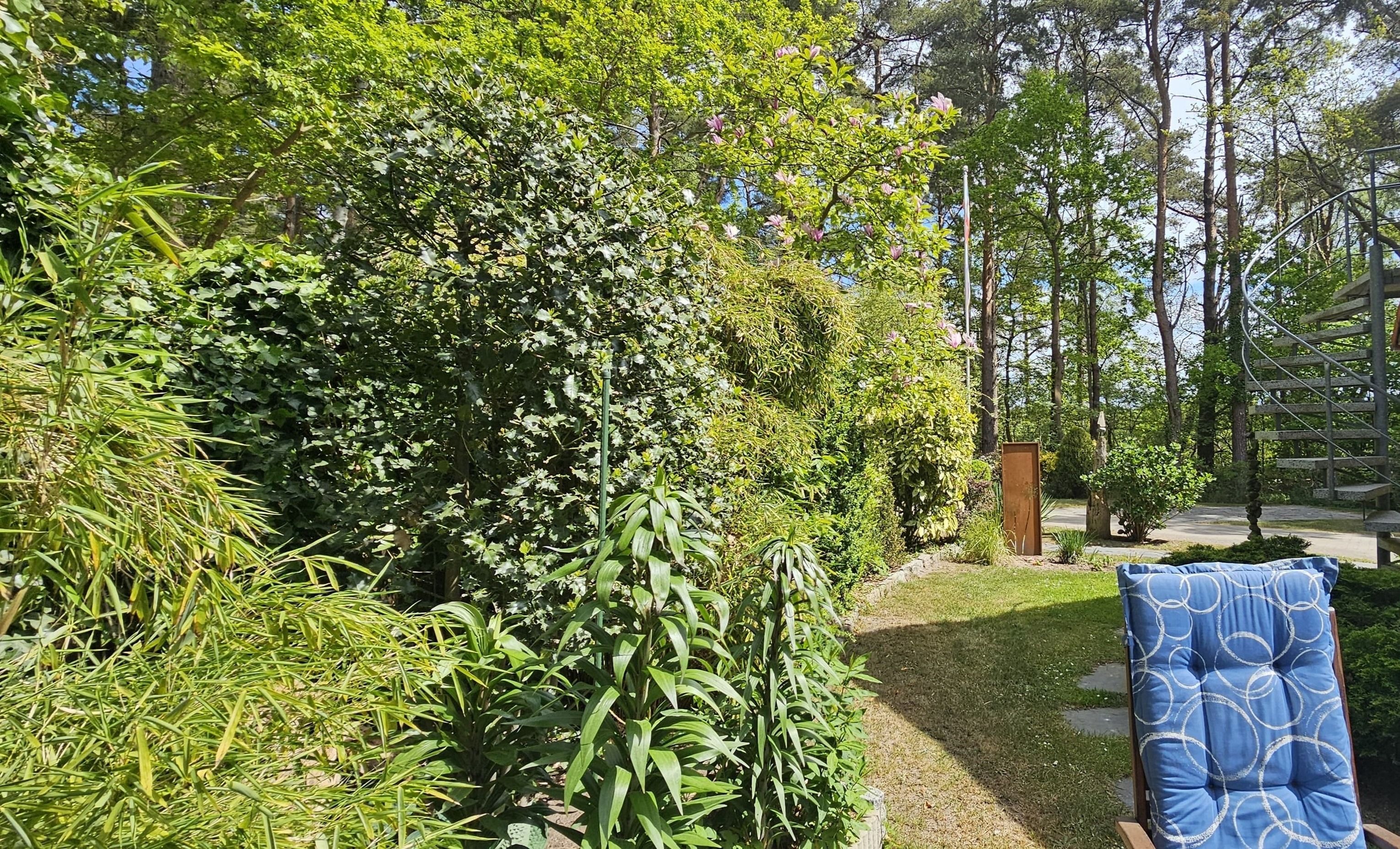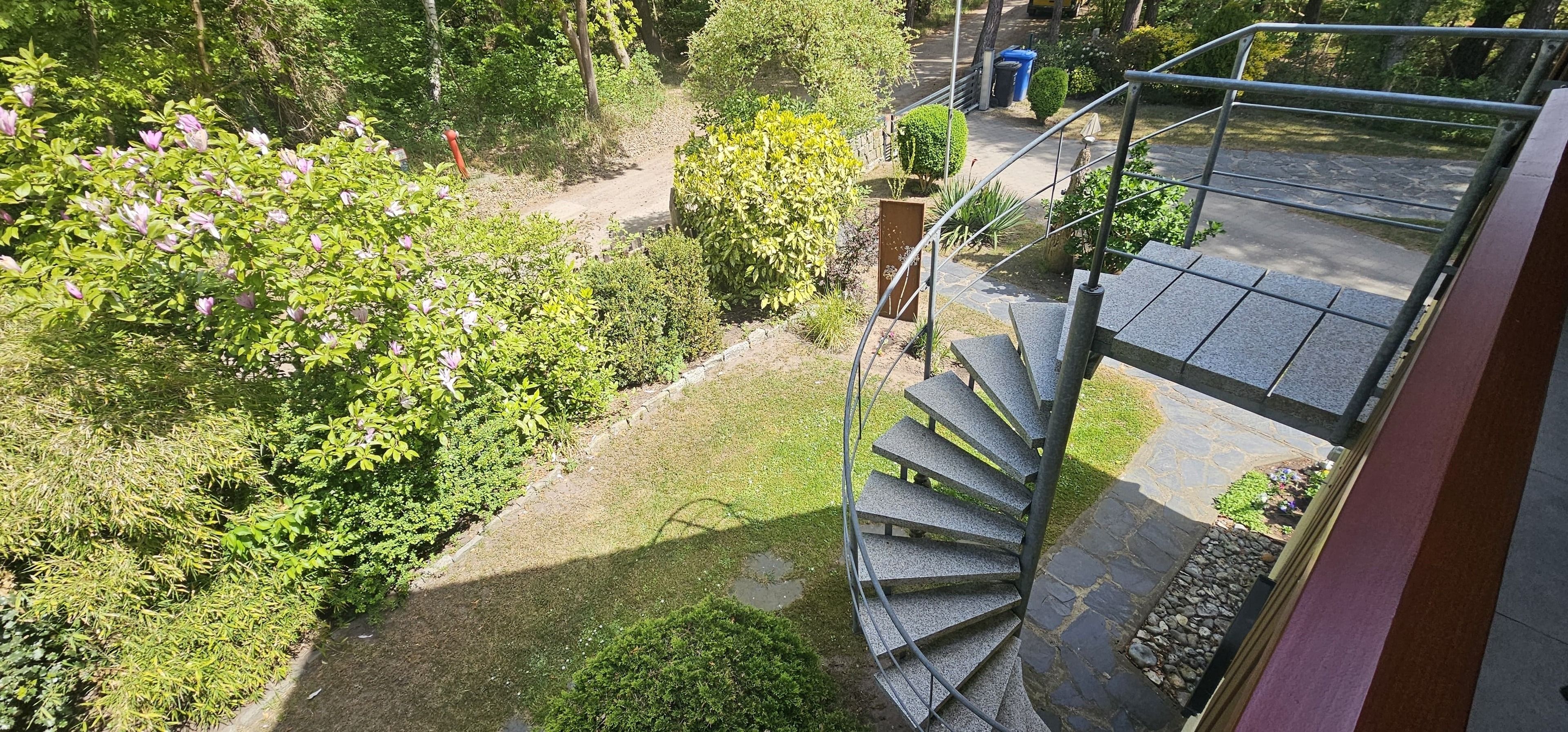 Ihr Feriendomizil befindet sich im Dachgeschoss eines Einfamilienhauses. Über eine charmante Wendeltreppe mit separatem Eingang gelangen Sie in Ihre eigenen vier Wände. Im liebevoll gestalteten Garten laden ruhige Ecken zum Entspannen, Lesen oder Sonnenbaden ein.