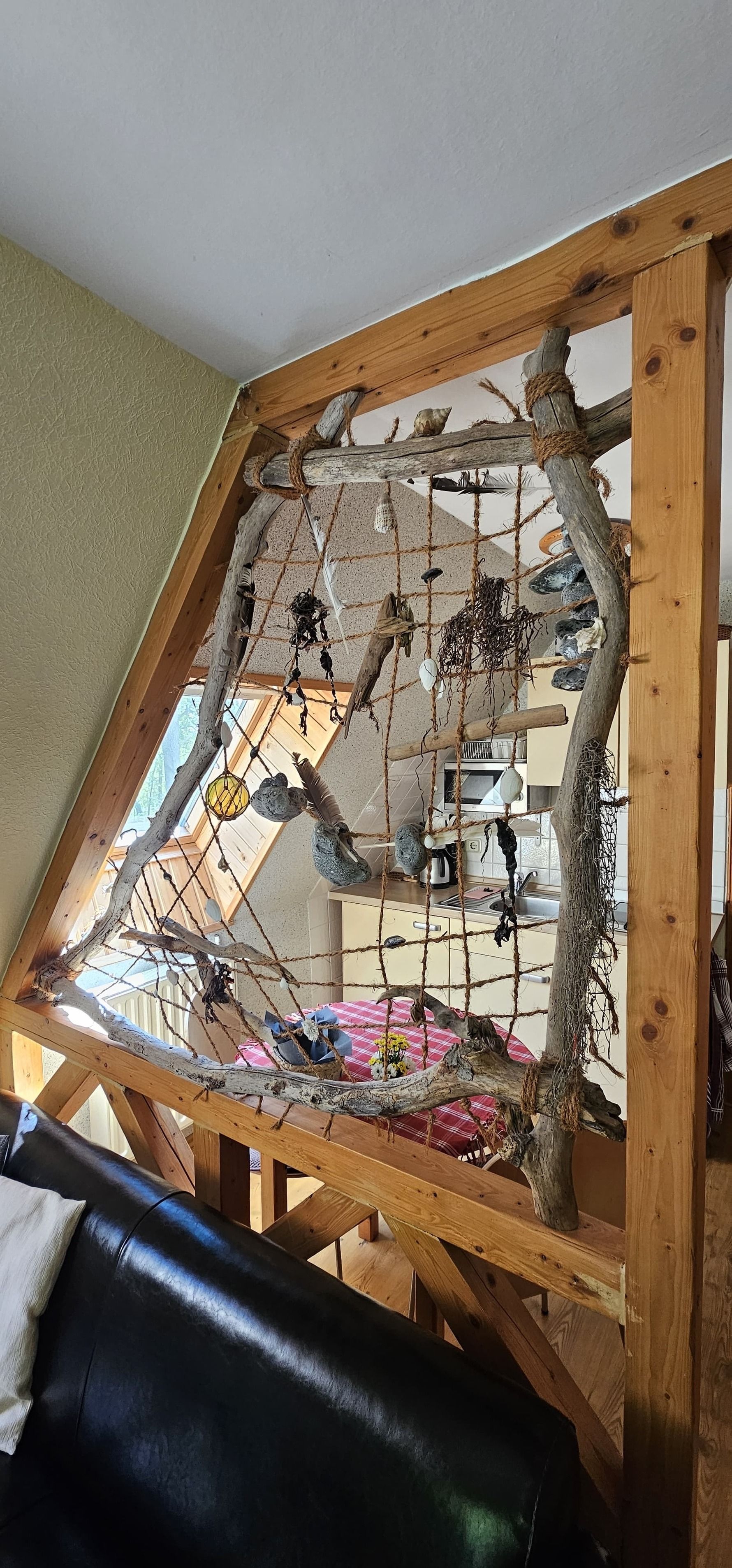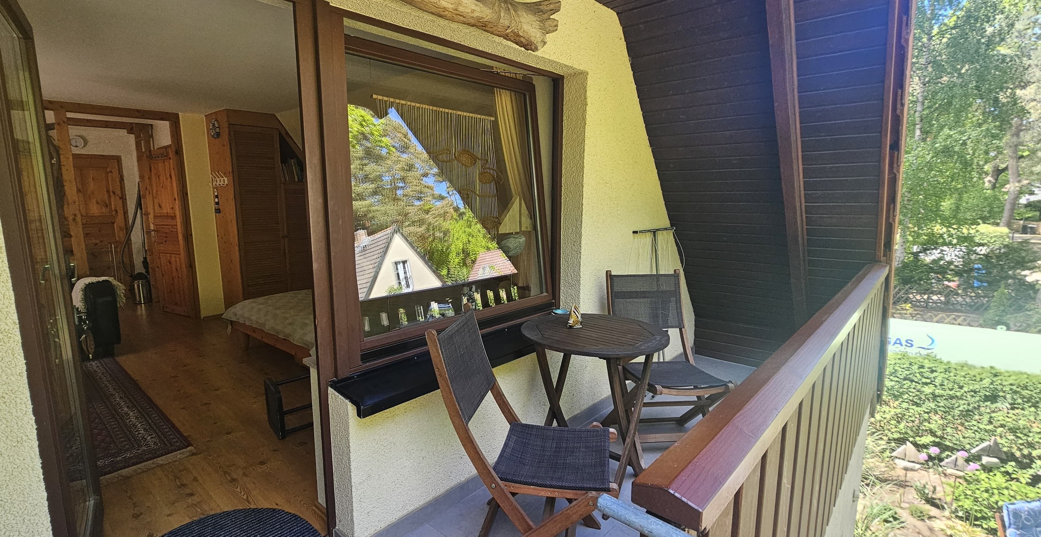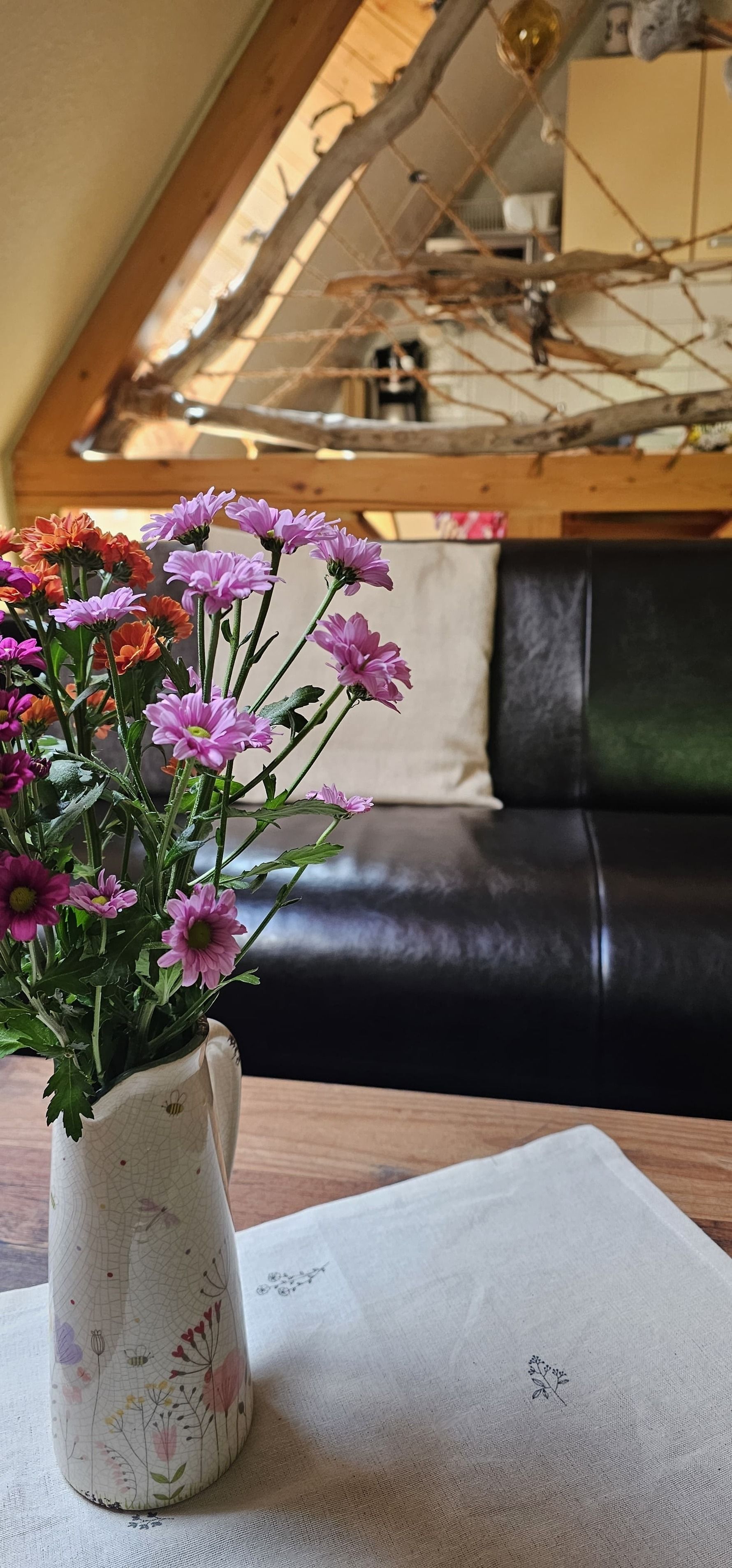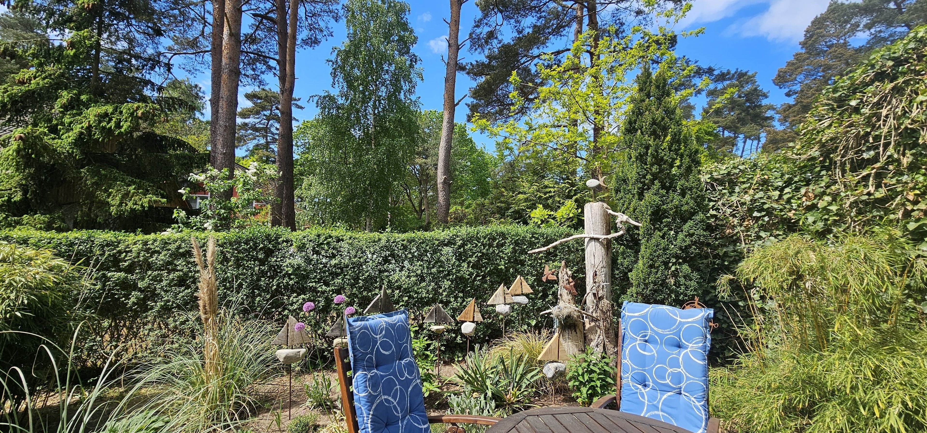 Ihr Feriendomizil befindet sich im Dachgeschoss eines Einfamilienhauses. Über eine charmante Wendeltreppe mit separatem Eingang gelangen Sie in Ihre eigenen vier Wände. Im liebevoll gestalteten Garten laden ruhige Ecken zum Entspannen, Lesen oder Sonnenbaden ein.