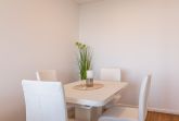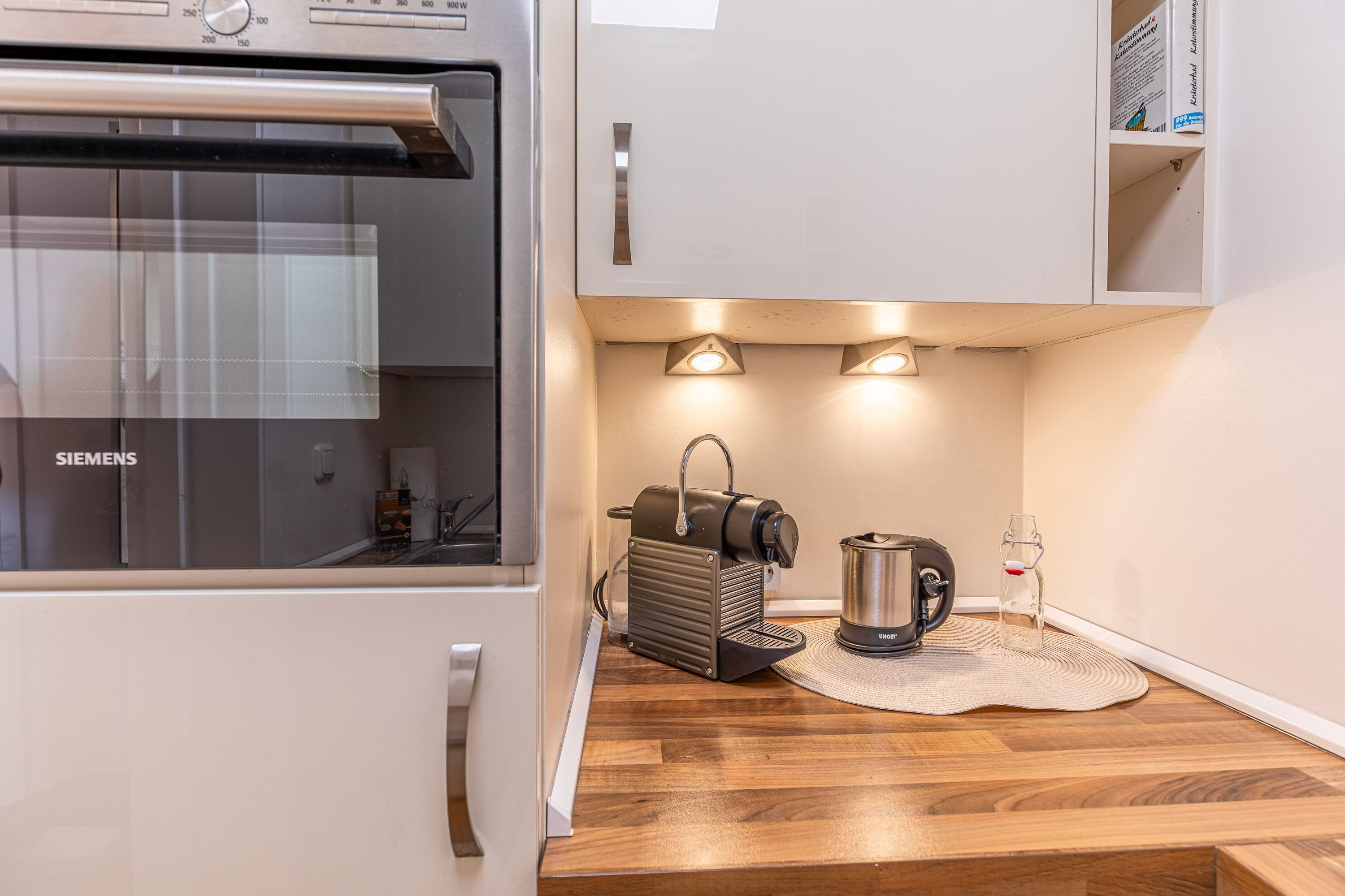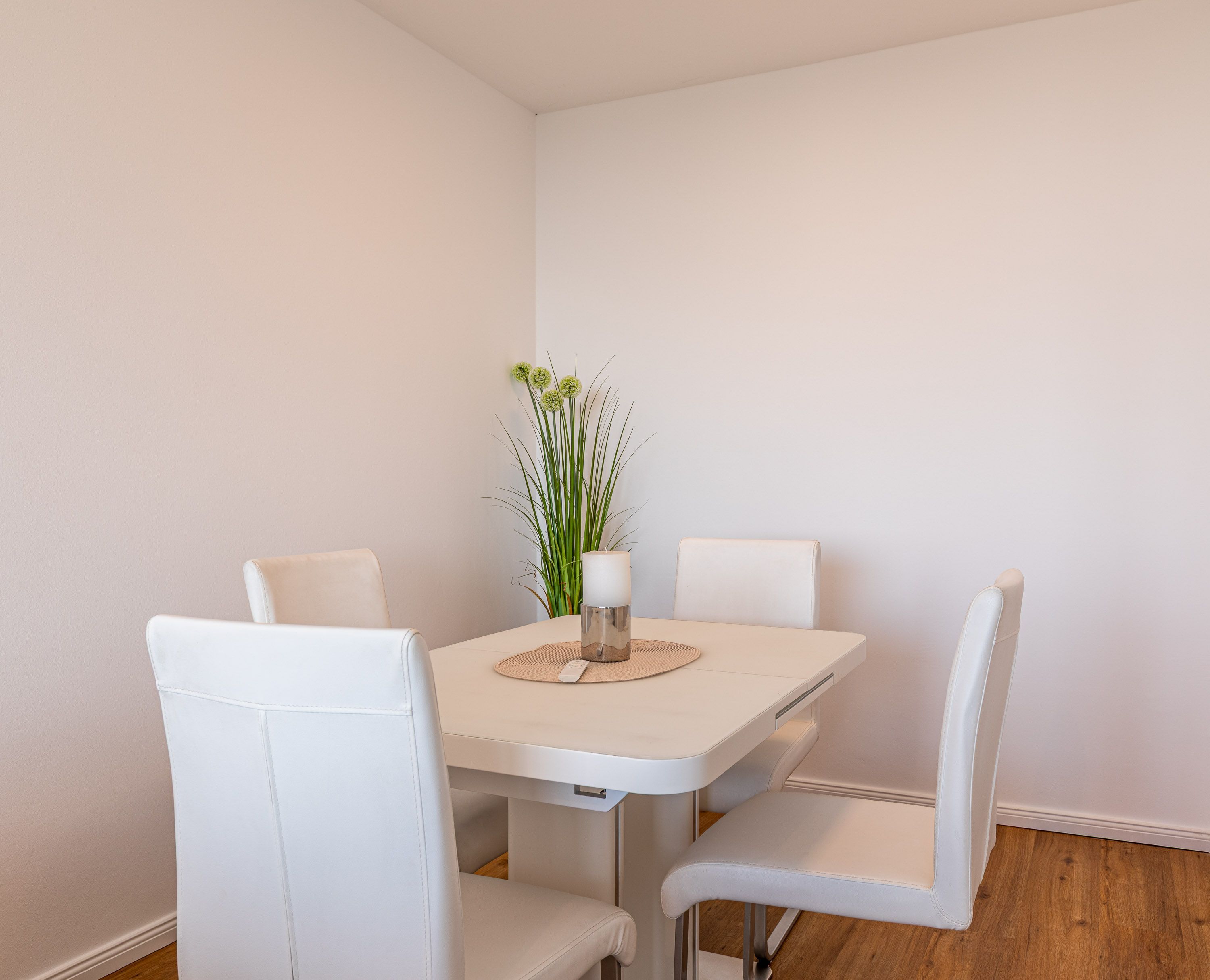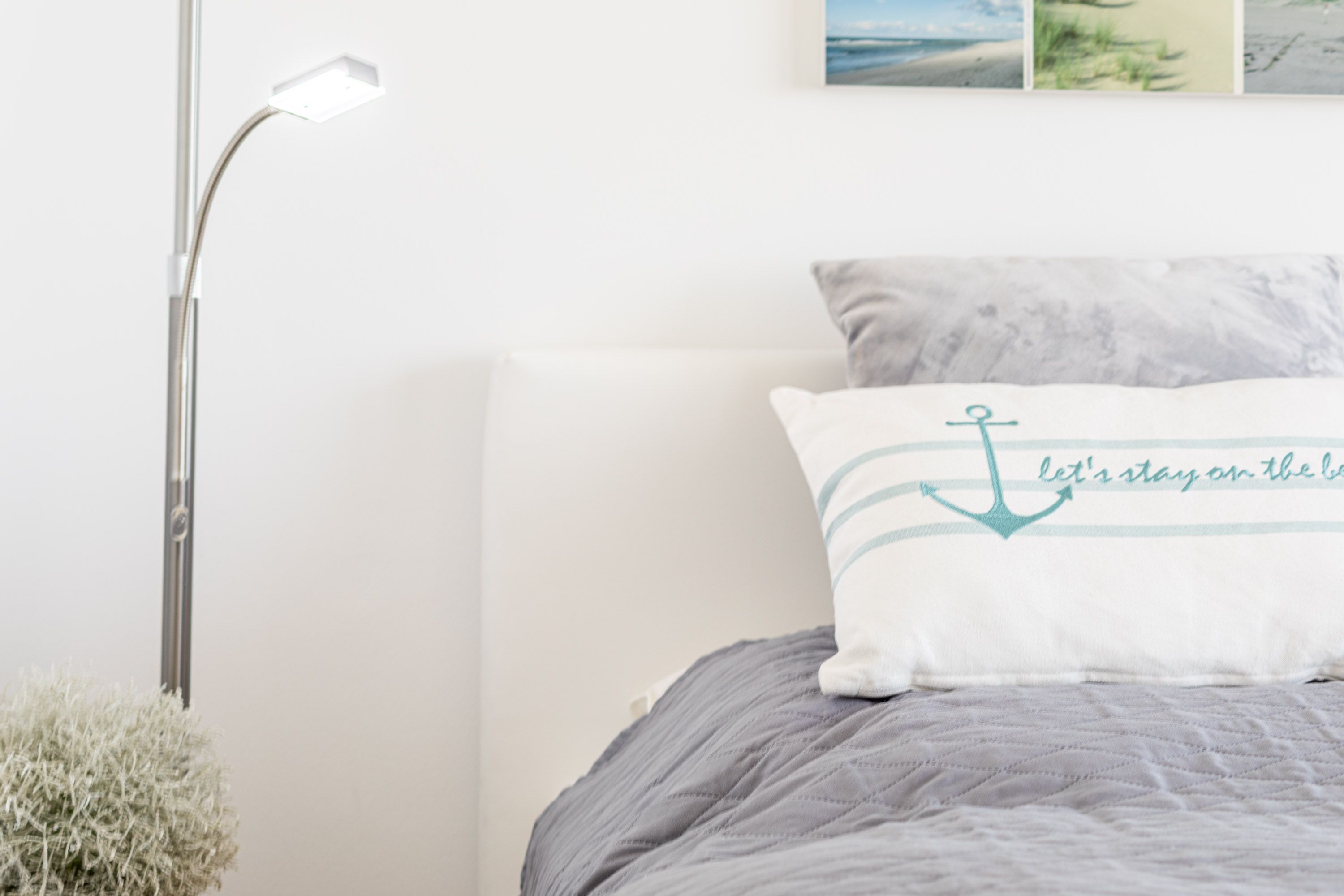 Die moderne Küche mit Geschirrspüler, Mikrowelle und Backofen lässt keine Wünsche offen. Im gemütlichen Wohnbereich mit Couchgarnitur und Essecke können Sie entspannen, das Schlafzimmer mit komfortablem Doppelbett (180 × 200 cm) verspricht erholsame Nächte. Vom Wohn- und Schlafzimmer gelangen Sie direkt auf den Balkon, um den Blick auf Meer und Strand zu genießen.