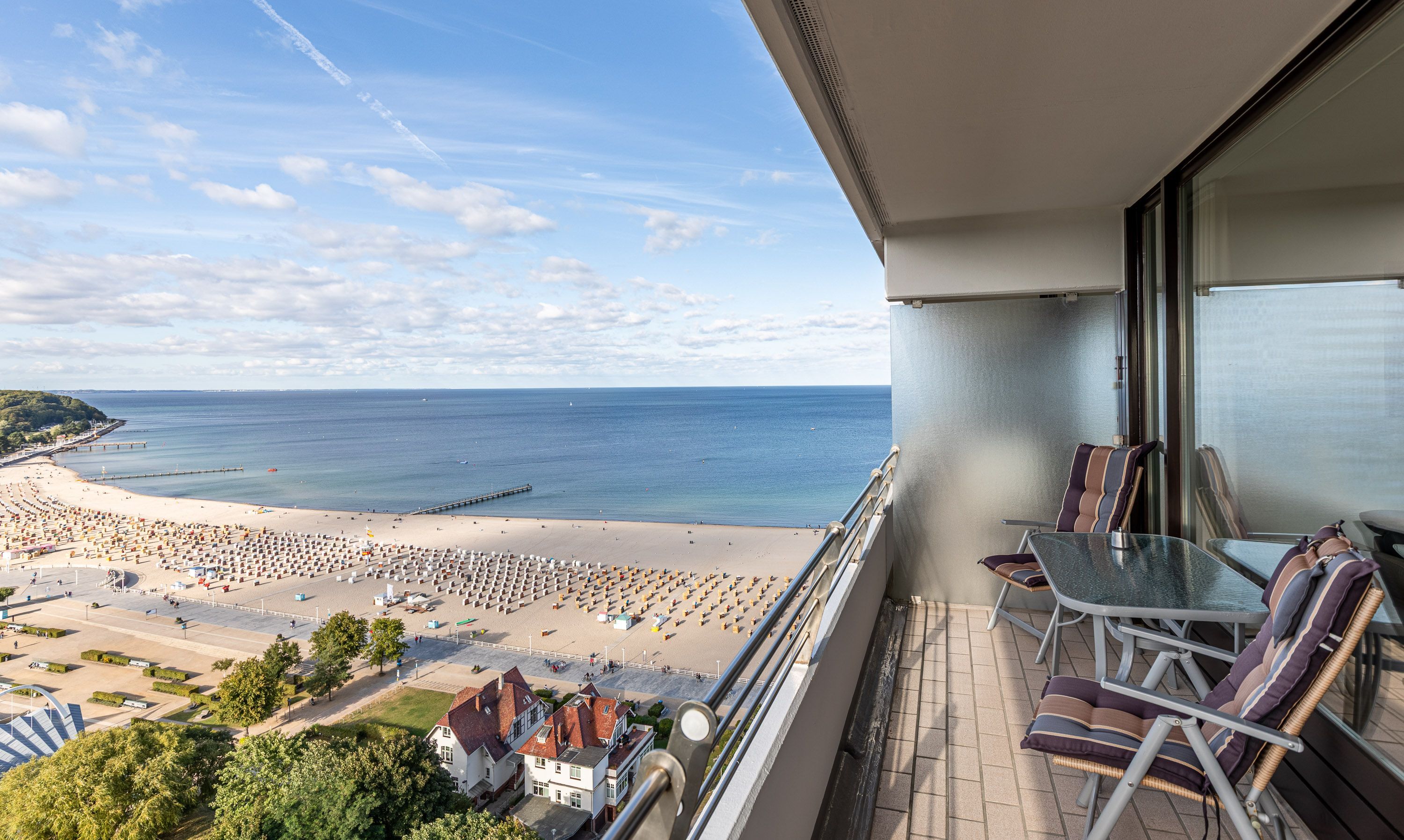 Genießen Sie Ihren Urlaub in bester Lage direkt am Strand und hoch oben im 15. Stock mit unvergleichbarem Blick auf die Ostsee.