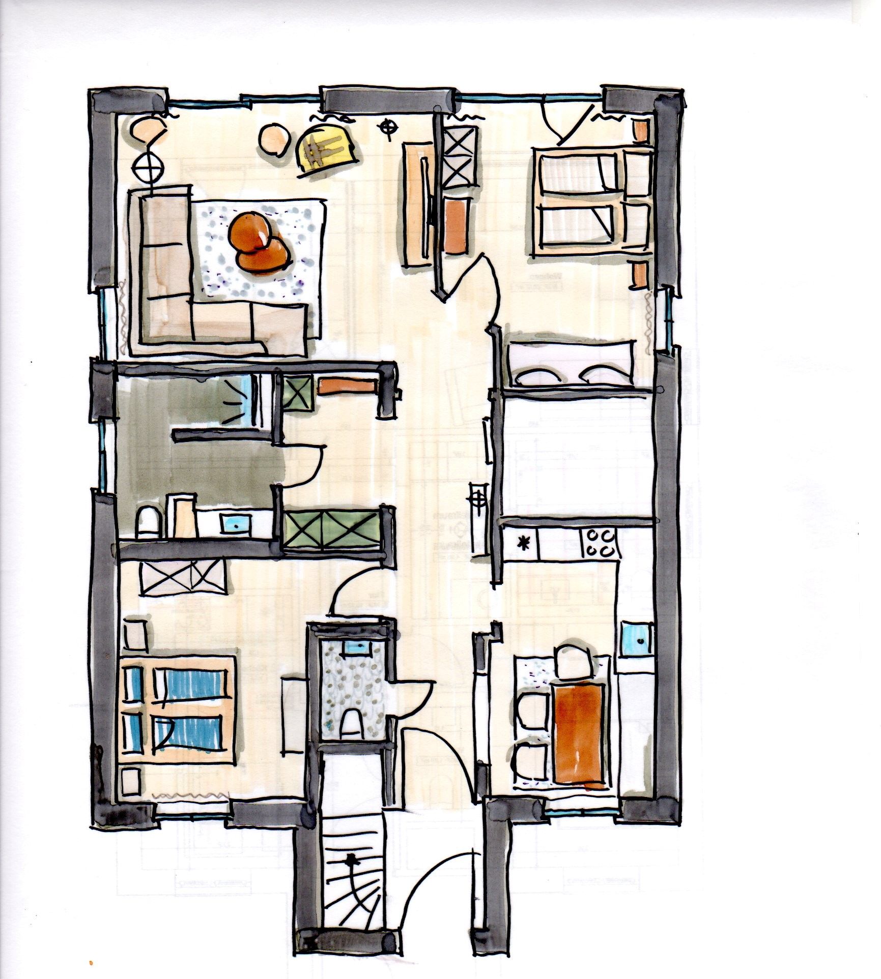 Die Wohnung umfasst das gesamte Erdgeschoss des Hauses und bietet auf rund 90qm viel Platz für bis zu 6 Personen.