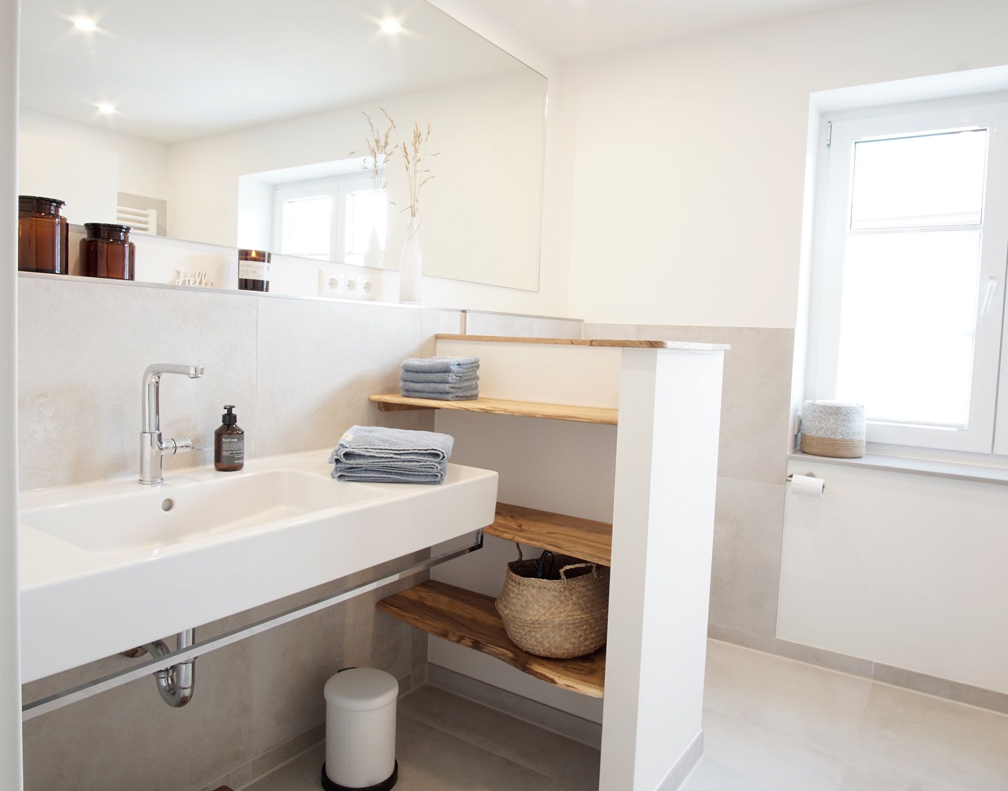 Neben dem modernen Bad mit begehbarer Dusche gibt es noch ein Gäste-WC.