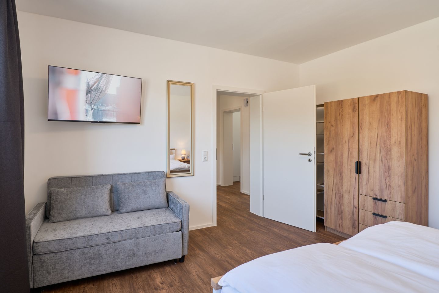Neu in der Vermietung: Die frisch renovierte 3-Zimmer-Wohnung „Auszeit Neustadt“ bietet auf über 75 m² modernen Wohnkomfort in gemütlicher Atmosphäre und ist ideal für einen erholsamen Familienurlaub an der Ostsee. Nur 500 Meter vom malerischen Hafen in Neustadt in Holstein entfernt, überzeugt die Wohnung mit einem sonnigen Balkon, auf dem sich die Urlaubstage entspannt ausklingen lassen. Das große Schlafzimmer ist mit hochwertigen Wohlfühlmatratzen für erholsamen Schlaf ausgestattet und verfügt zusätzlich über einen eigenen TV. Im Wohnbereich stehen zwei komfortable Schlafcouchen (je 160x200 cm) zur Verfügung, außerdem gibt es ein kleines Zimmer mit einer Kinderschlafcouch (140x140 cm) sowie eine weitere Schlafcouch für Kinder gleicher Größe. Damit bietet die Wohnung Platz für bis zu vier Erwachsene und zwei Kinder. Das helle Tageslichtbad verfügt über eine große Badewanne und eine Dusche und lädt zum Wohlfühlen ein. Die neue, großzügige Küche ist komplett ausgestattet, inklusive Backofen und Mikrowelle, und bietet beste Voraussetzungen für gemeinsames Kochen und Genießen. Mit ihrer modernen Einrichtung, der Nähe zum Hafen und den vielfältigen Schlafmöglichkeiten ist die Ferienwohnung „Auszeit Neustadt“ die perfekte Wahl für Familien, die Komfort, Gemütlichkeit und Ostsee-Urlaubsflair verbinden möchten.