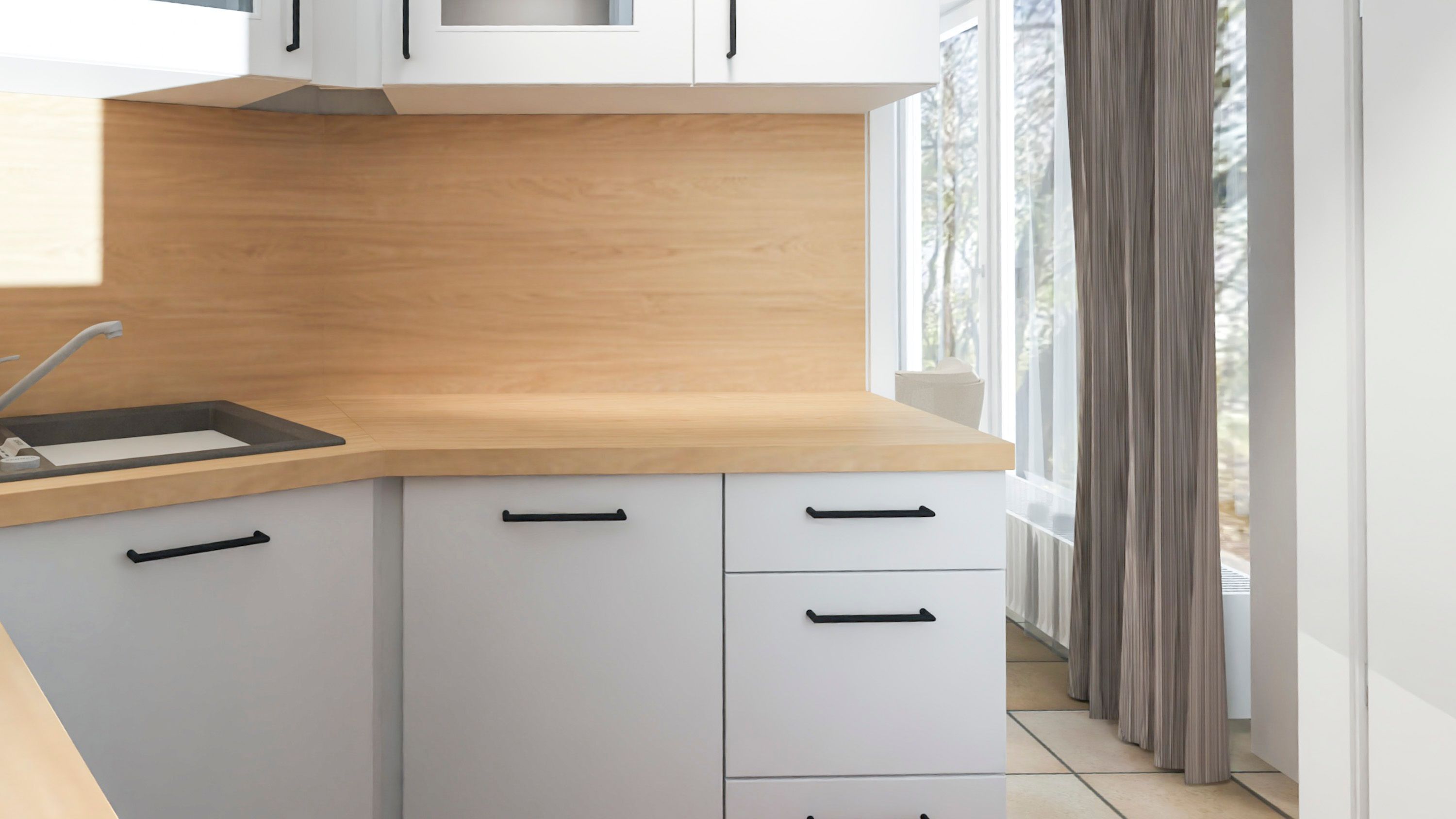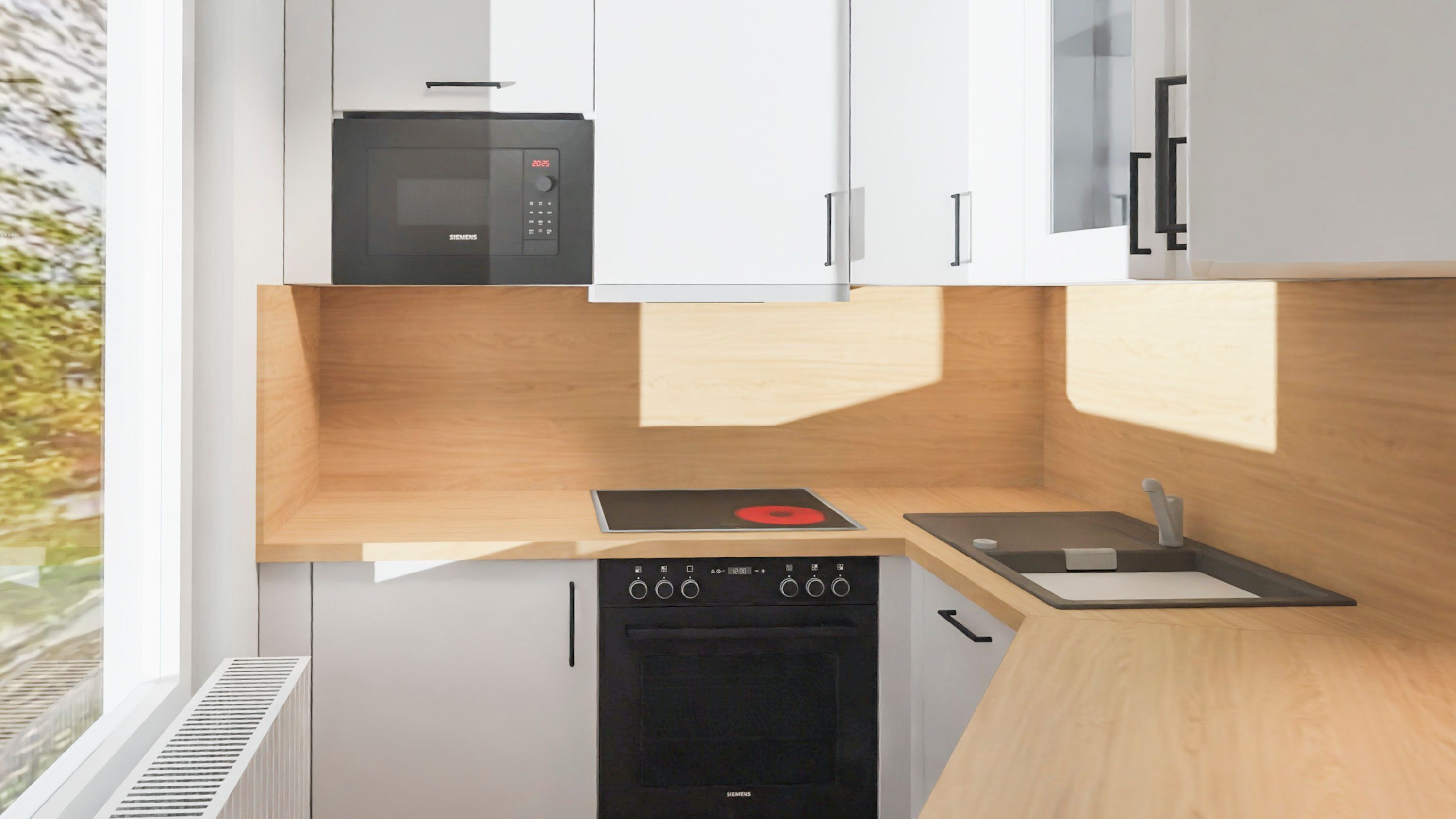 • Separate Küche mit Fenster, voll ausgestattet u.a. mit Backofen, Mikrowelle und Kaffeemaschine