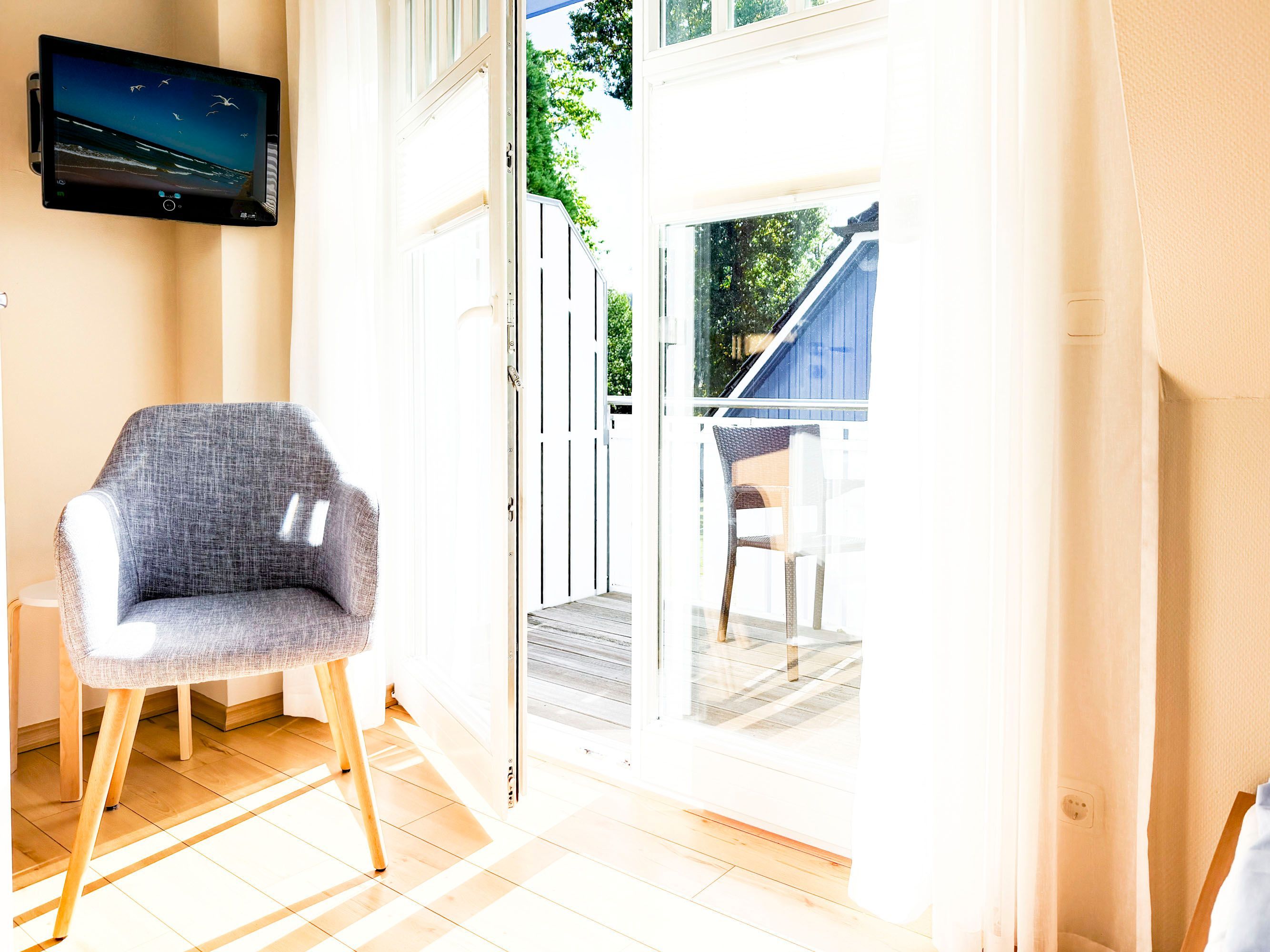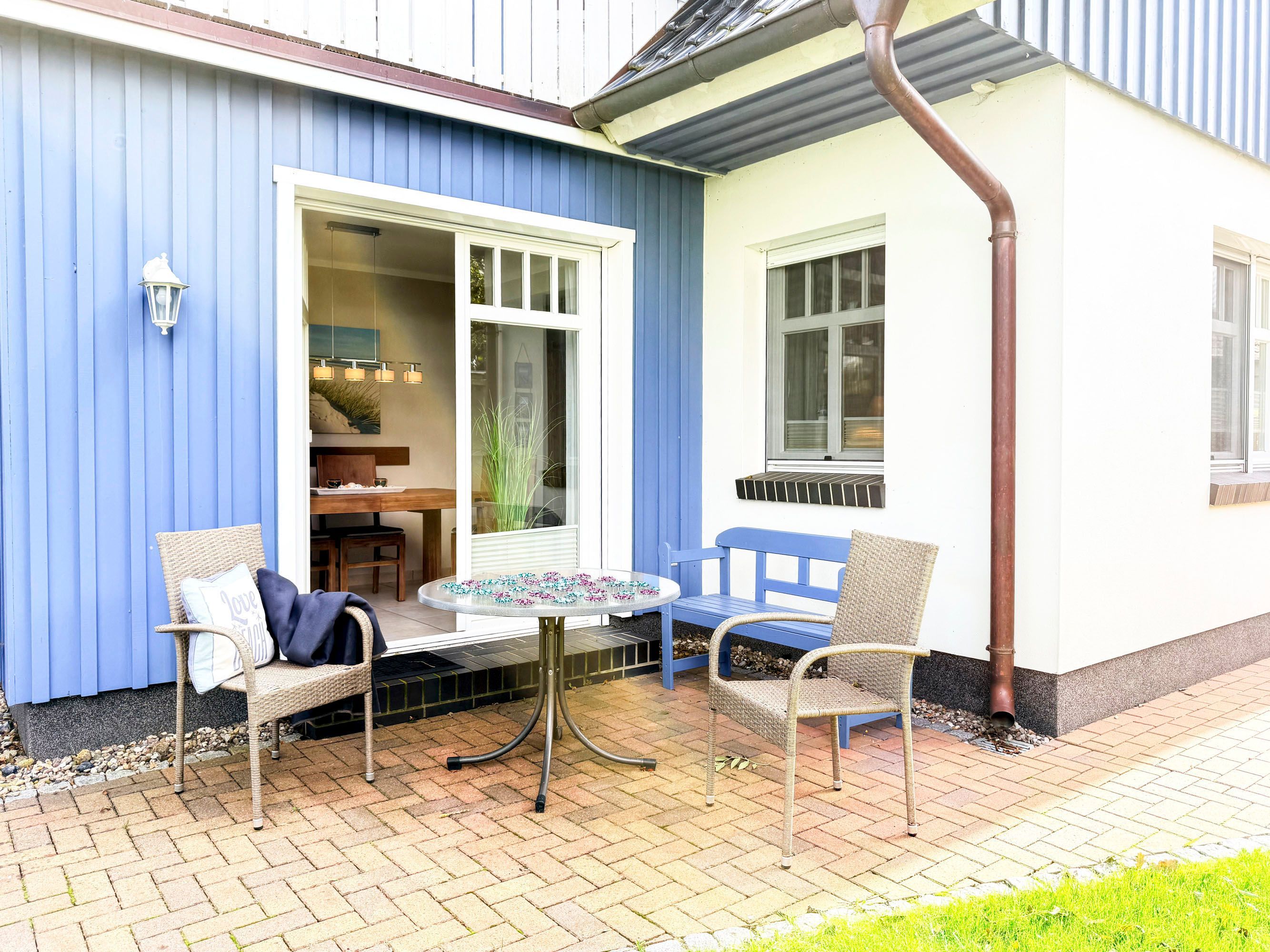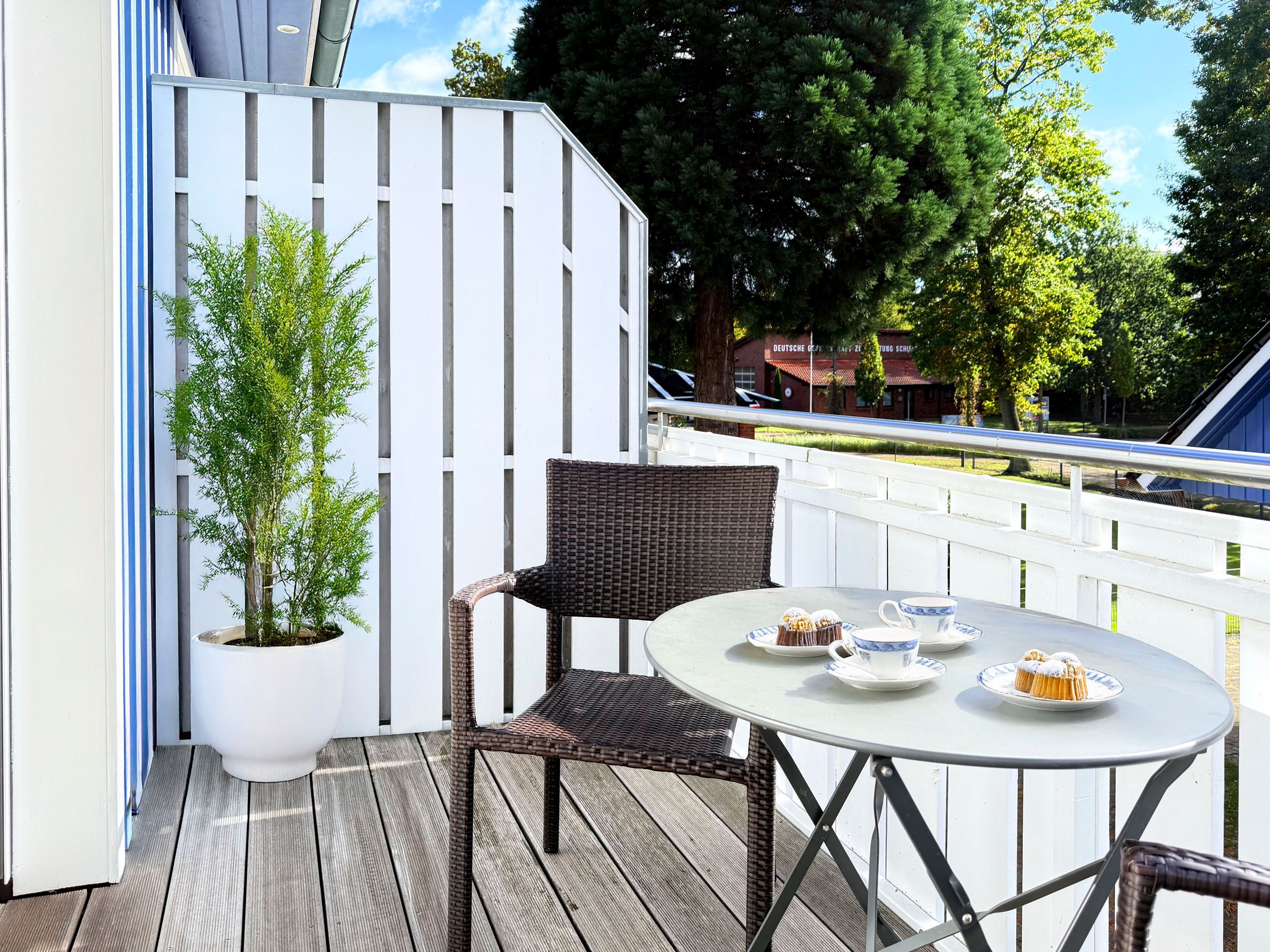 Die möblierte Terrasse lädt zum Frühstück im Freien oder zum Grillabend ein, während der Südbalkon Ruhe mit Ausblick bietet. Im gepflegten Garten entspannen Sie auf Sonnenliegen oder genießen einfach die frische Meeresbrise. Nach einem aktiven Tag an Strand oder Bodden sorgt die hauseigene Sauna für perfekte Entspannung besonders in Herbst und Winter ein echtes Highlight.