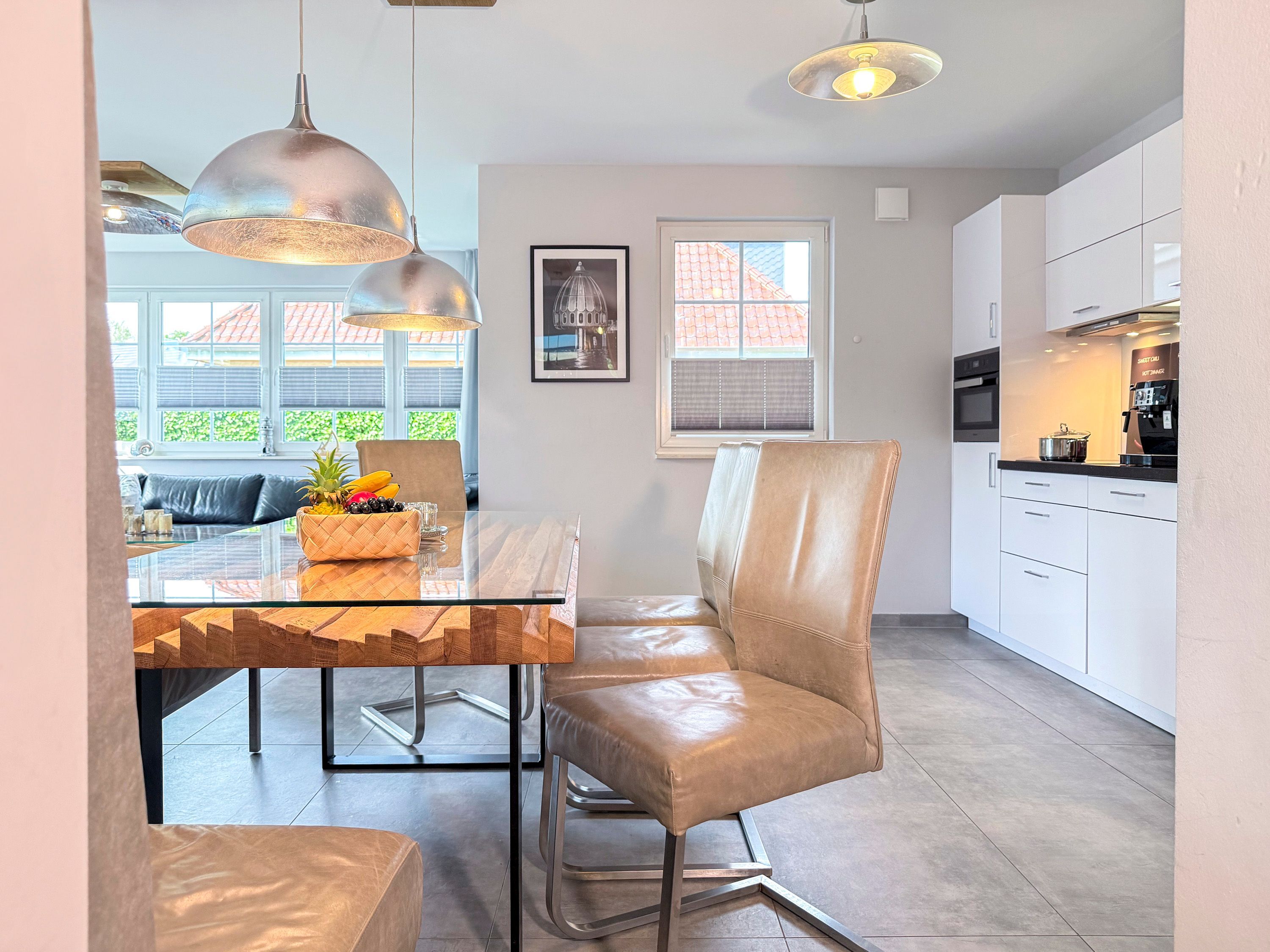 Alle Räume im Haus Charlotte sind modern, hochwertig und mit viel Liebe zum Detail eingerichtet. Warme Holzelemente, edle Materialien und ein stilvolles Interieur schaffen eine besondere Atmosphäre. Nach einem Tag am Ostseestrand oder in der Natur können Sie im behaglichen Wohnbereich am Kamin entspannen oder auf der Terrasse den Sonnenuntergang genießen.