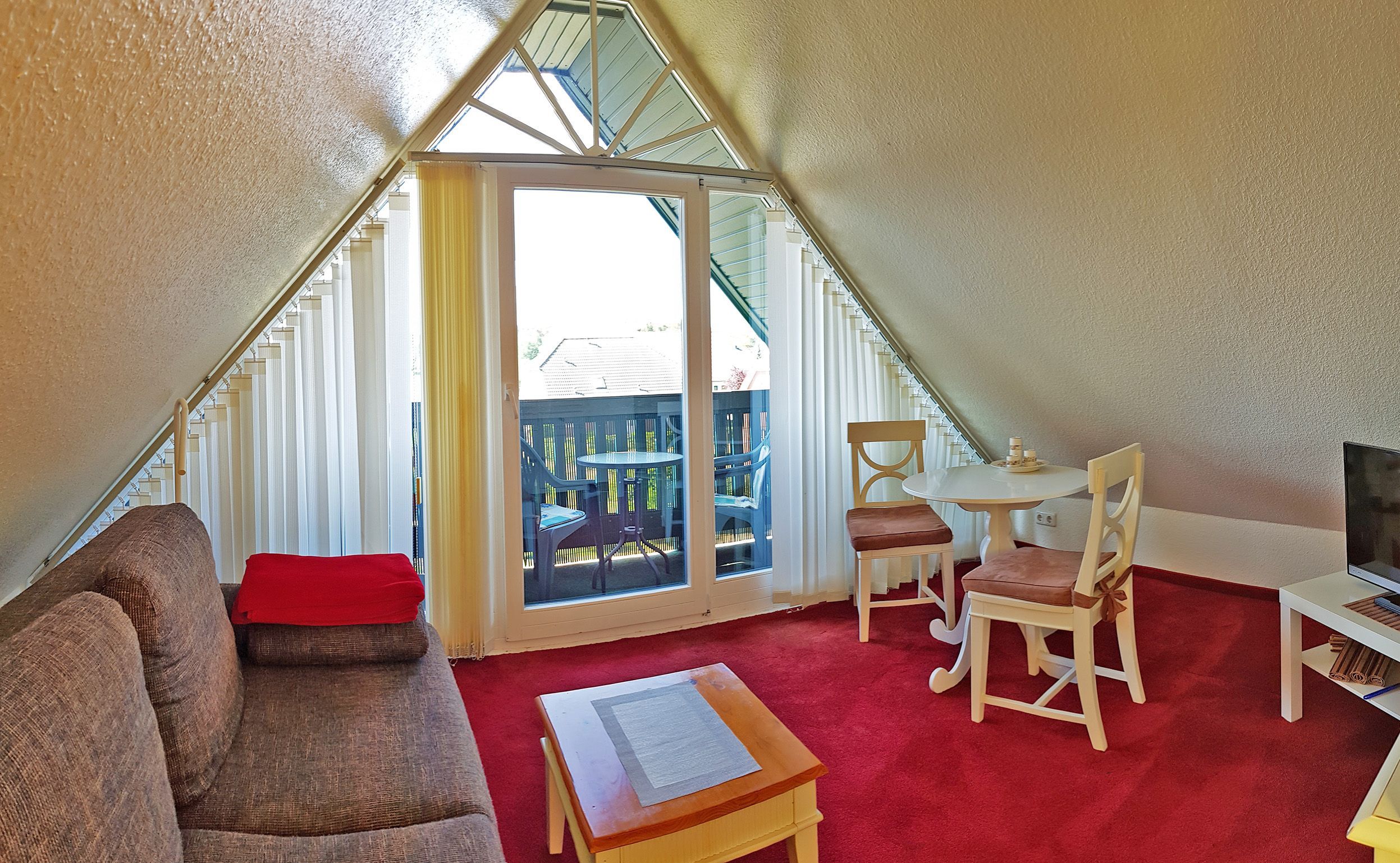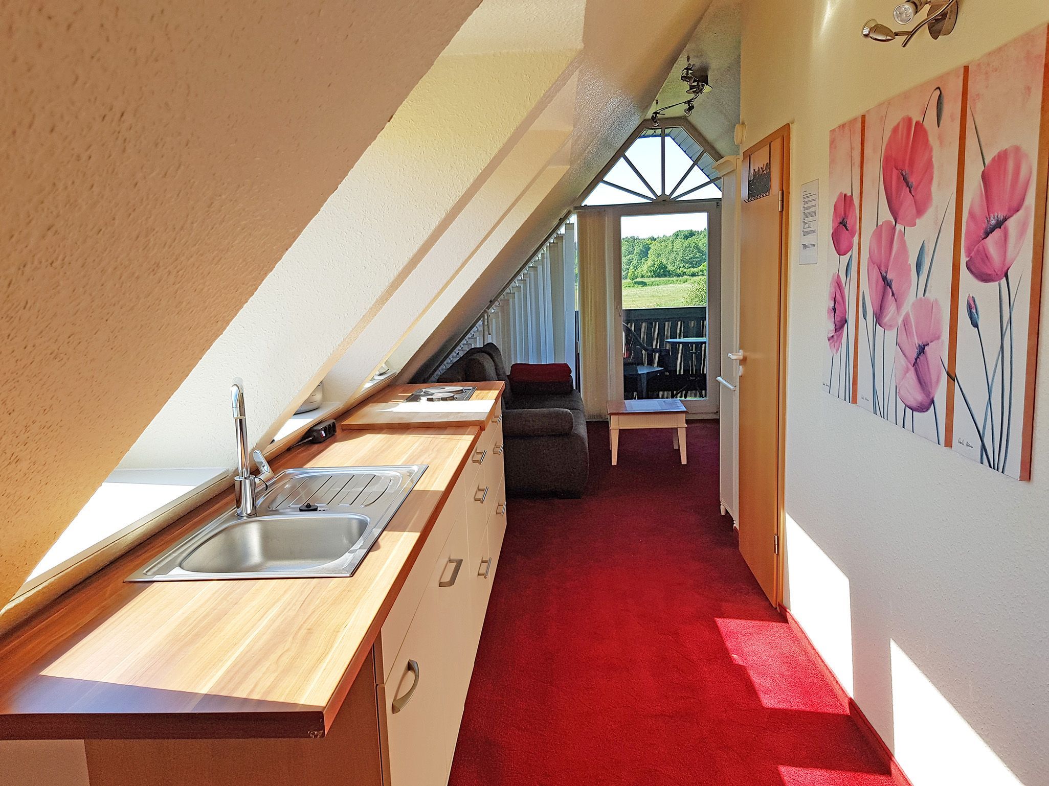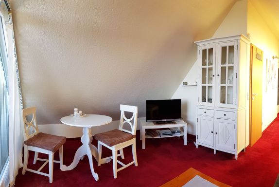 Besuchen Sie uns Ferienwohnungen Urlaubslust Trassenheide. Die lichtdurchflutete Ferienwohnung 5 im 2. Stock bietet auf 30 m² viel Raum zum Wohlfühlen. Das gemütliche Wohnzimmer mit integriertem Essbereich, die vollausgestattete Küchenzeile mit Blick in die Natur, das geräumiges Schlafzimmer mit Kommode und Kleiderablage sowie das freundliches Tageslichtbad mit Dusche und WC verleihen dieser Dachgeschosswohnung einen ganz eignen Charm. Die Nichtraucherwohnung verfügt über einen Flachbildfernseher. Die Unterkunft ist für max. 2 Personen geeignet. Der Giebelbalkon mit Gartenmöbel lädt zum Genießen ein. Zu der Ferienwohnung gehören ein Parkplatz sowie ein abschließbarer Fahrradraum. Als Alternative zum Fahrradraum bieten wir Ihnen unsere Fahrradunterstellmöglichkeiten auf der Außenanlage an.