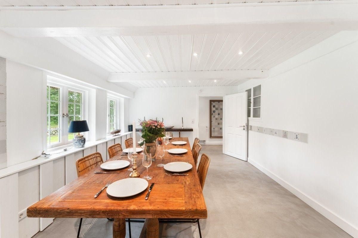 In der voll ausgestatteten Küche finden Sie alles, was das Herz begehrt: Backofen, Geschirrspüler, 4-Zonen-Ceranfeld und reichlich Zubehör für genussvolle Urlaubsküche. Der große Esstisch bietet viel Platz für gemeinsame Mahlzeiten oder gemütliche Spieleabende.