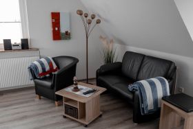 Das modern eingerichtete Apartment verfügt über zwei Zimmer, davon ein separates Schlafzimmer, das mit bequemen Schlafmöglichkeiten ausgestattet ist. Der helle und gemütliche Wohnbereich lädt mit einem Sofa und einem Sessel zum Entspannen ein. Zwei Fernseher sorgen für Unterhaltung und durch das vorhandene WLAN bleiben Sie stets mit dem Internet verbunden. Für angenehme Temperaturen in jeder Jahreszeit steht eine Heizung zur Verfügung.
