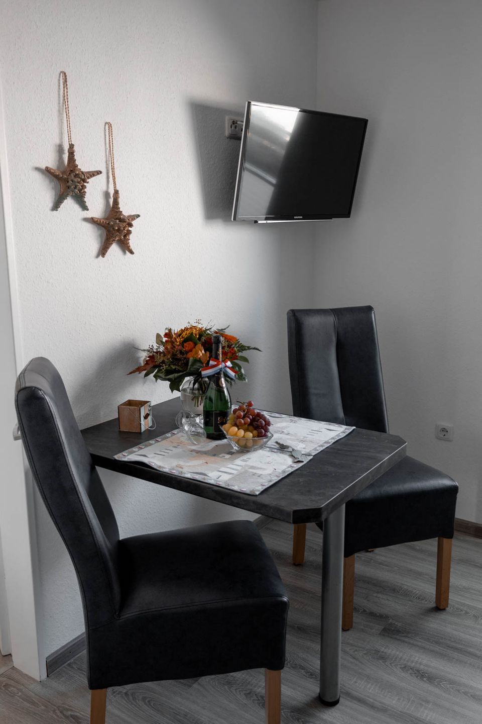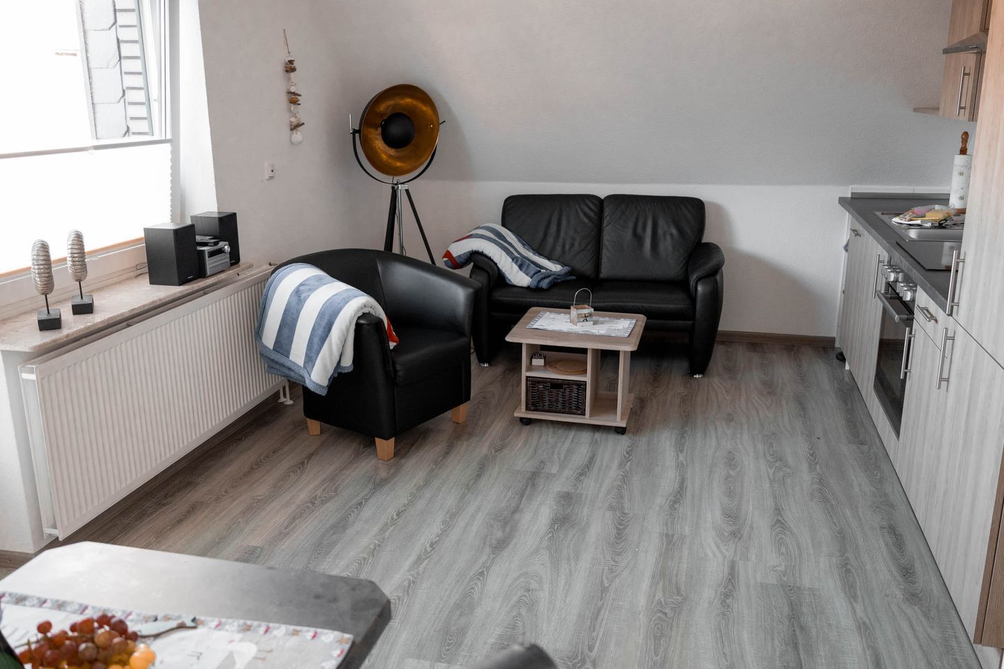 Das modern eingerichtete Apartment verfügt über zwei Zimmer, davon ein separates Schlafzimmer, das mit bequemen Schlafmöglichkeiten ausgestattet ist. Der helle und gemütliche Wohnbereich lädt mit einem Sofa und einem Sessel zum Entspannen ein. Zwei Fernseher sorgen für Unterhaltung und durch das vorhandene WLAN bleiben Sie stets mit dem Internet verbunden. Für angenehme Temperaturen in jeder Jahreszeit steht eine Heizung zur Verfügung.