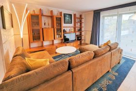 Im ersten Obergeschoß befindet sich ein Schlafzimmer mit einem Doppelbett und einem eigenen kleinen Bad mit Dusche und WC. Weiterhin finden Sie auf dieser Etage das große Badezimmer mit einer Eckbadewanne sowie ein zweites Schlafzimmer mit Doppelbett und kleiner Sitzecke.