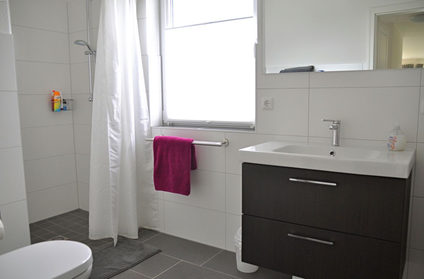 Ein modernes Duschbad, ein separates Gäste-WC sowie ein Hauswirtschaftsraum mit Waschmaschine sorgen für zusätzlichen Komfort – auch bei längeren Aufenthalten.